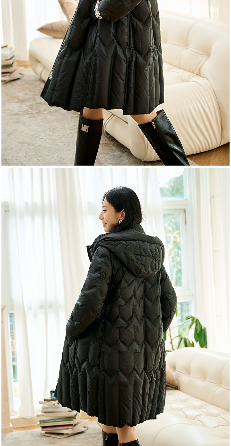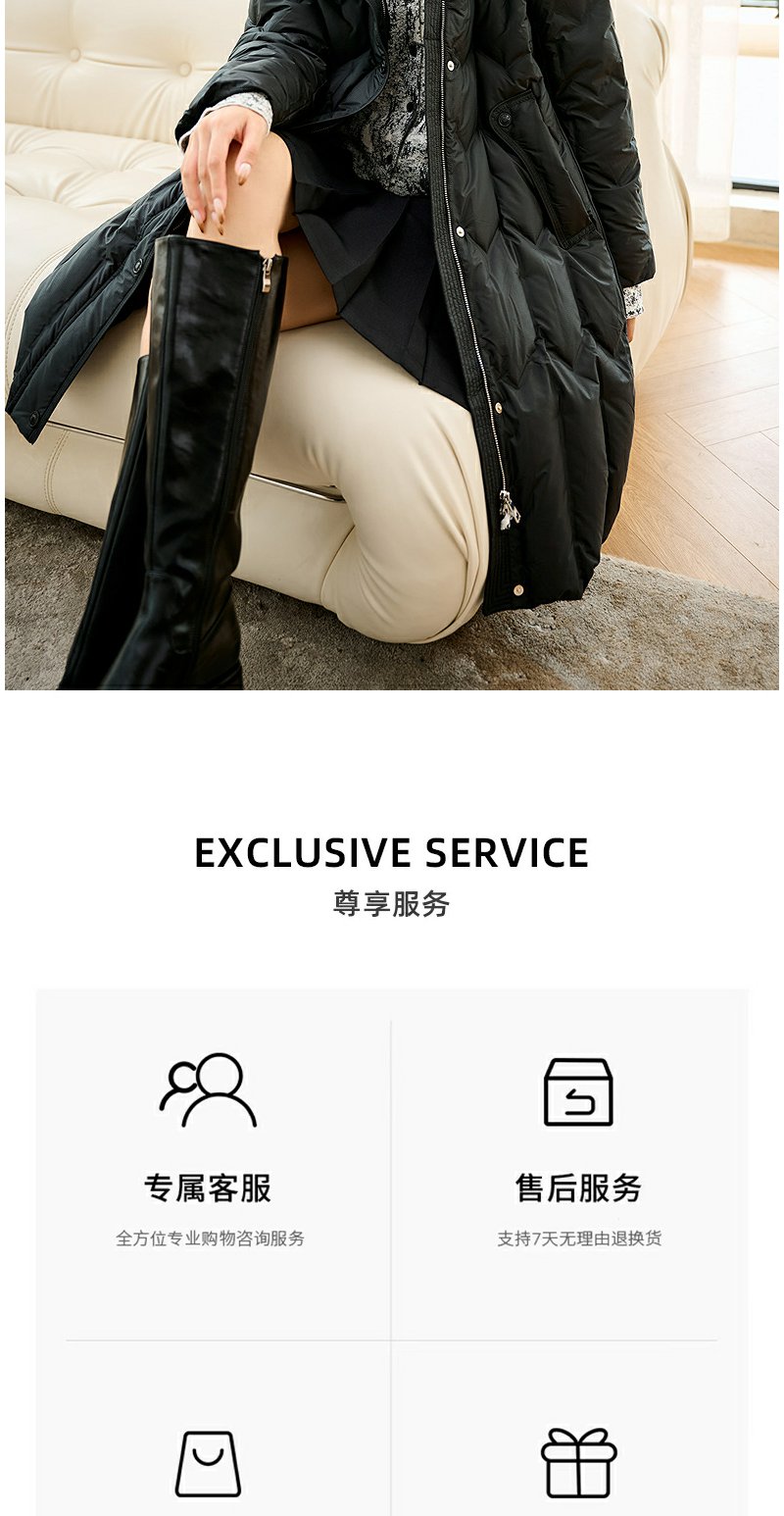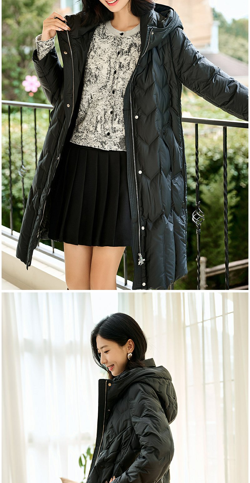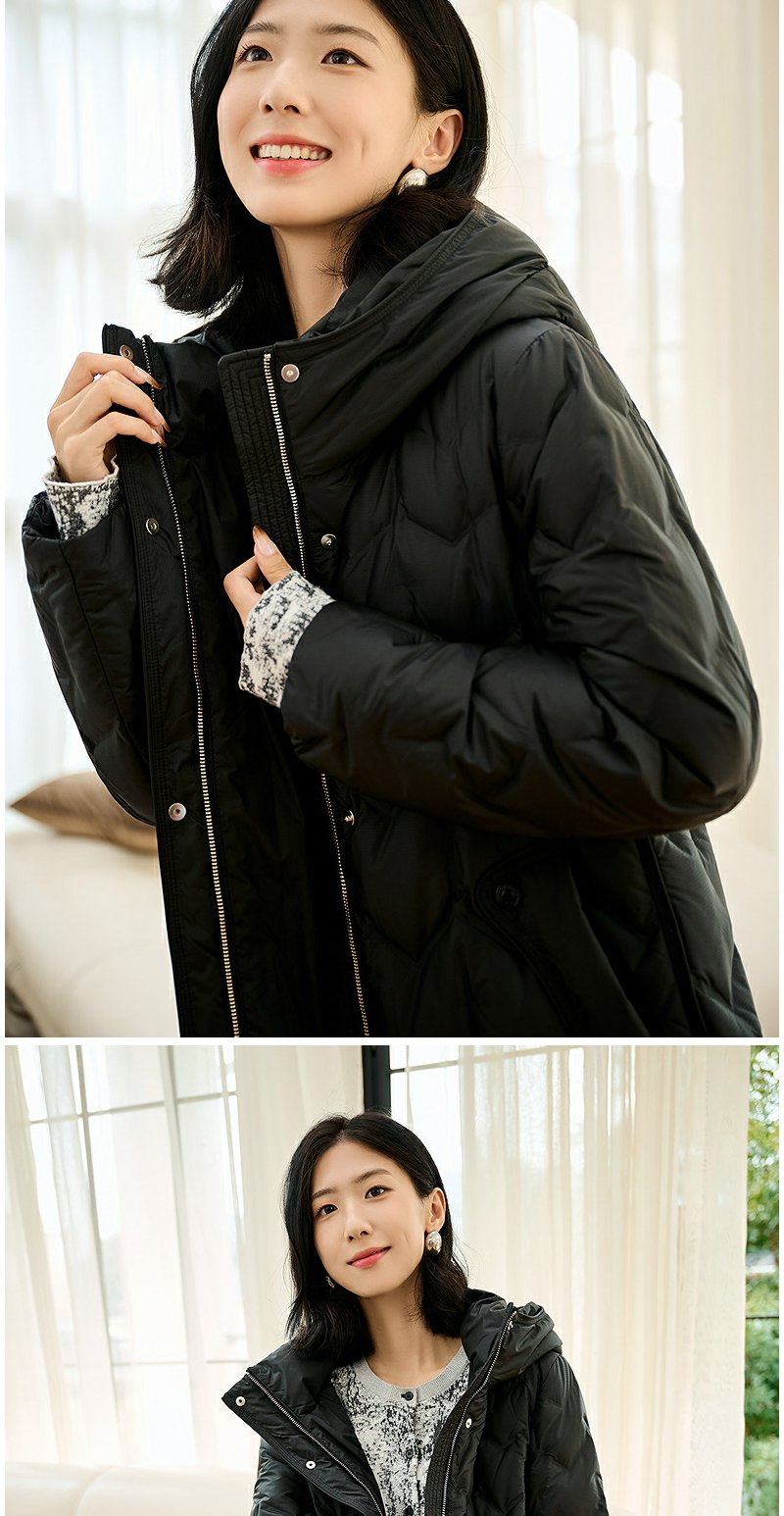 NEELLY纳俪商场同款冬季新款90白鸭绒长款羽绒服女连帽保暖外套N24104L07766