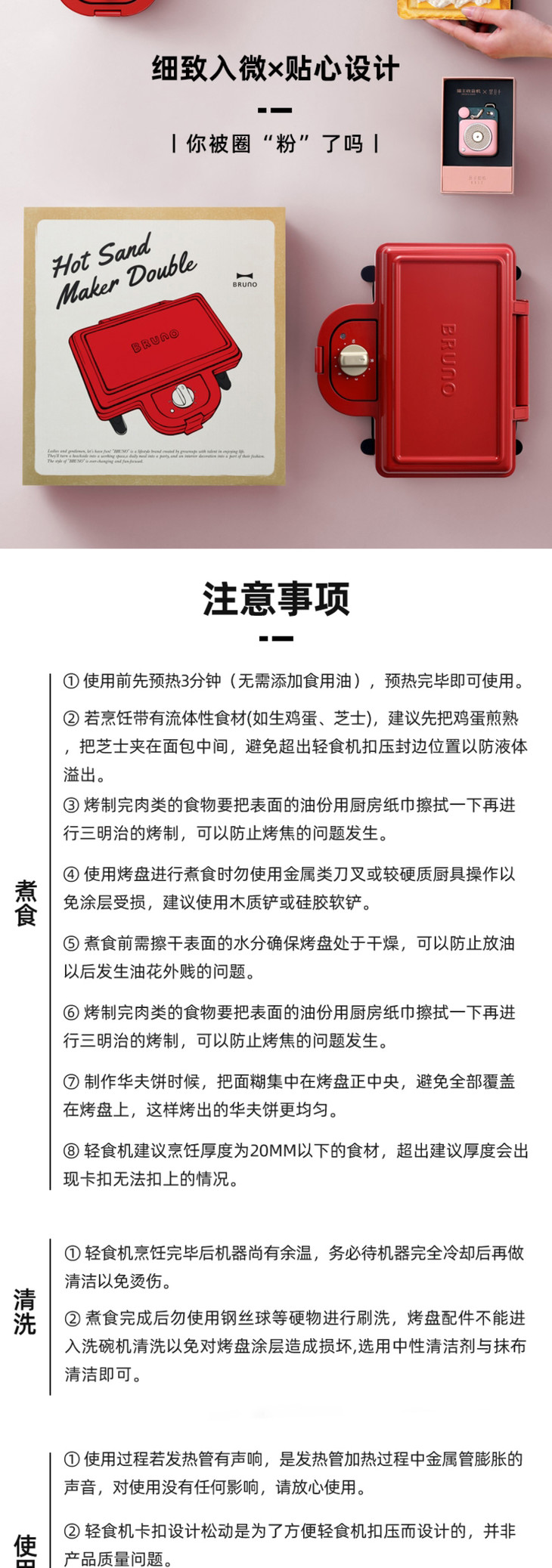 史努比日本Bruno轻食机早餐机家用多功能三明治机华夫饼烤