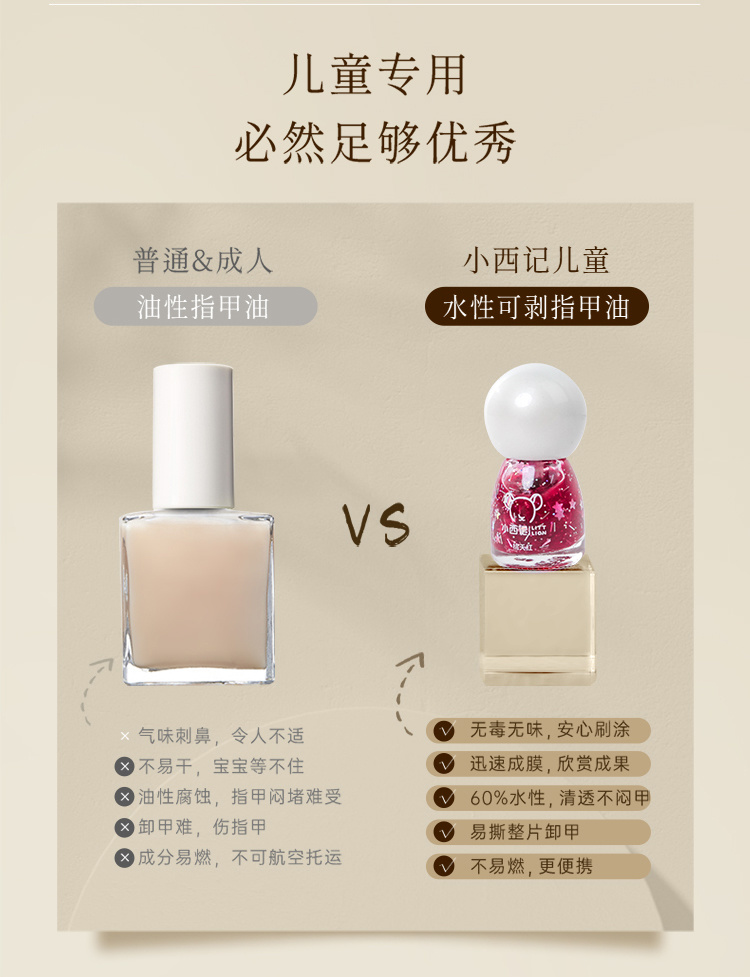 🎁满足宝宝美学启蒙💅【小西记儿童水性可剥指甲油套装】中国儿童化妆品认证🏆 ✅60%含水量,清透不闷甲 ✅新升级10free配方,天然不伤指甲 ✅不染色不残留,一撕即卸 ✅国际安全认证,安全无毒无味