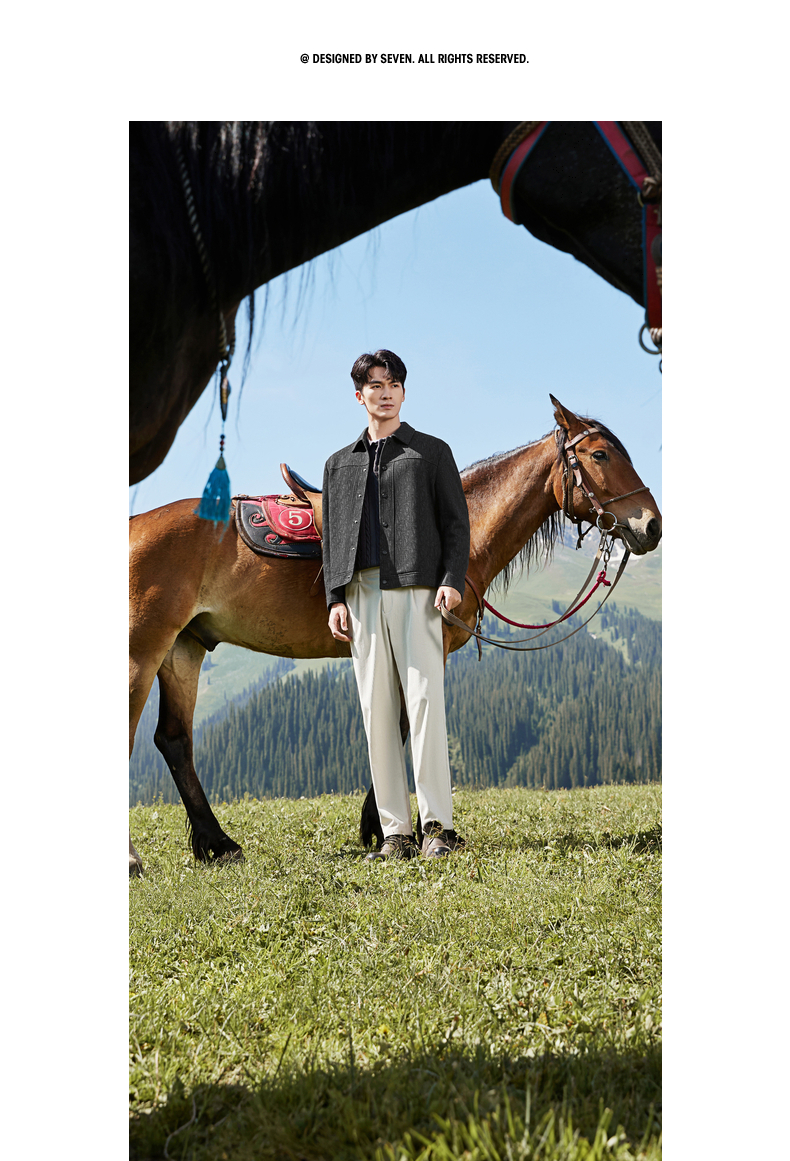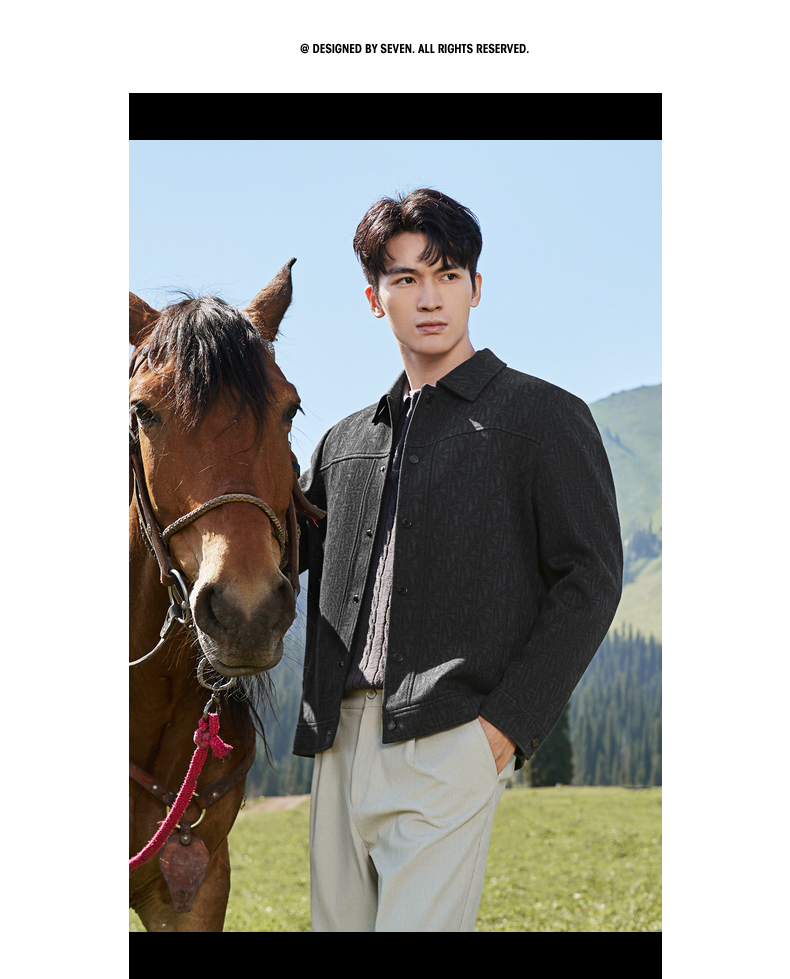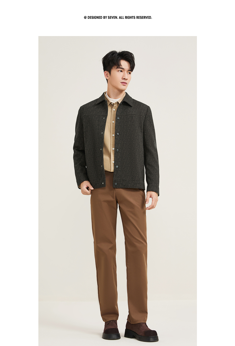 【满身提花工装茄克】柒牌男装2025秋冬新款潮流休闲夹克修身外套129K70770