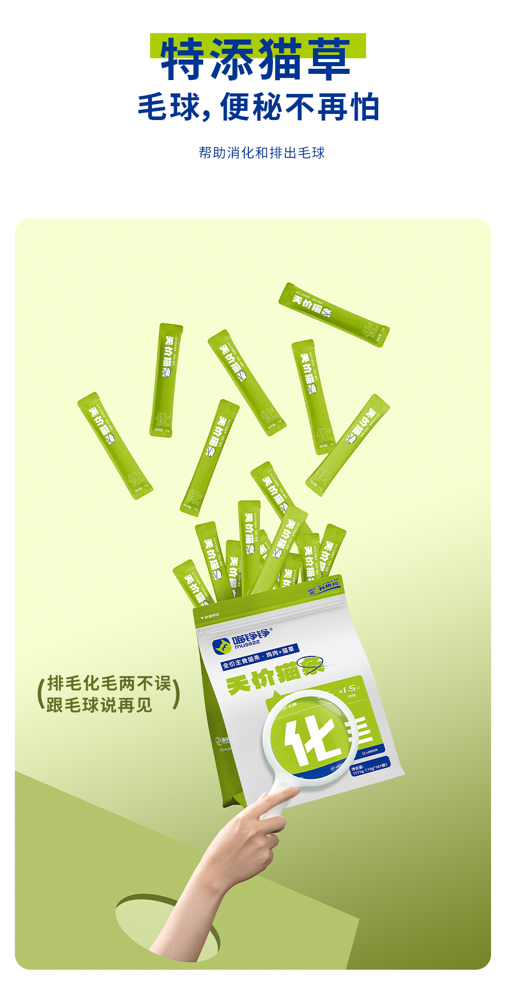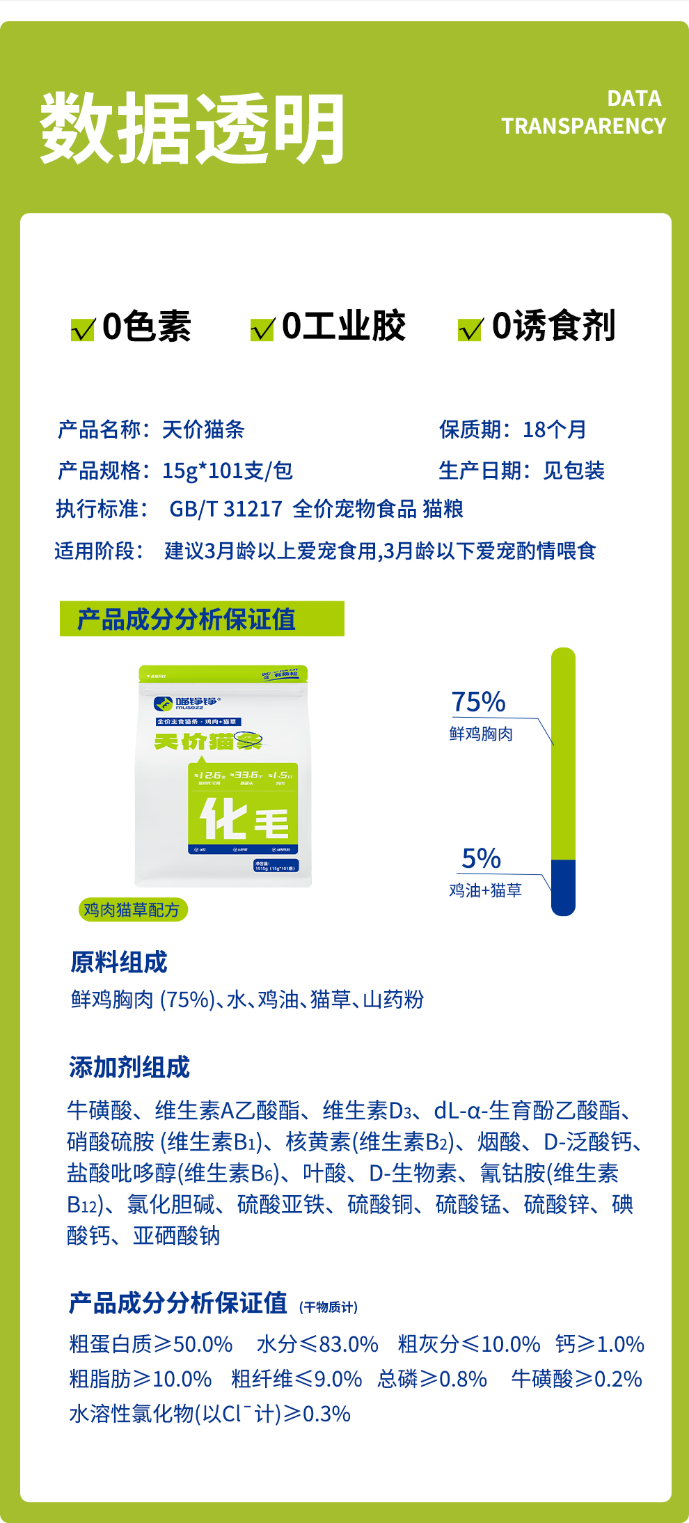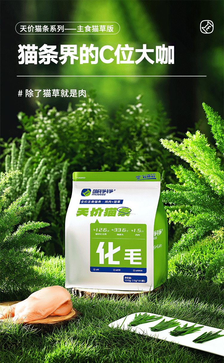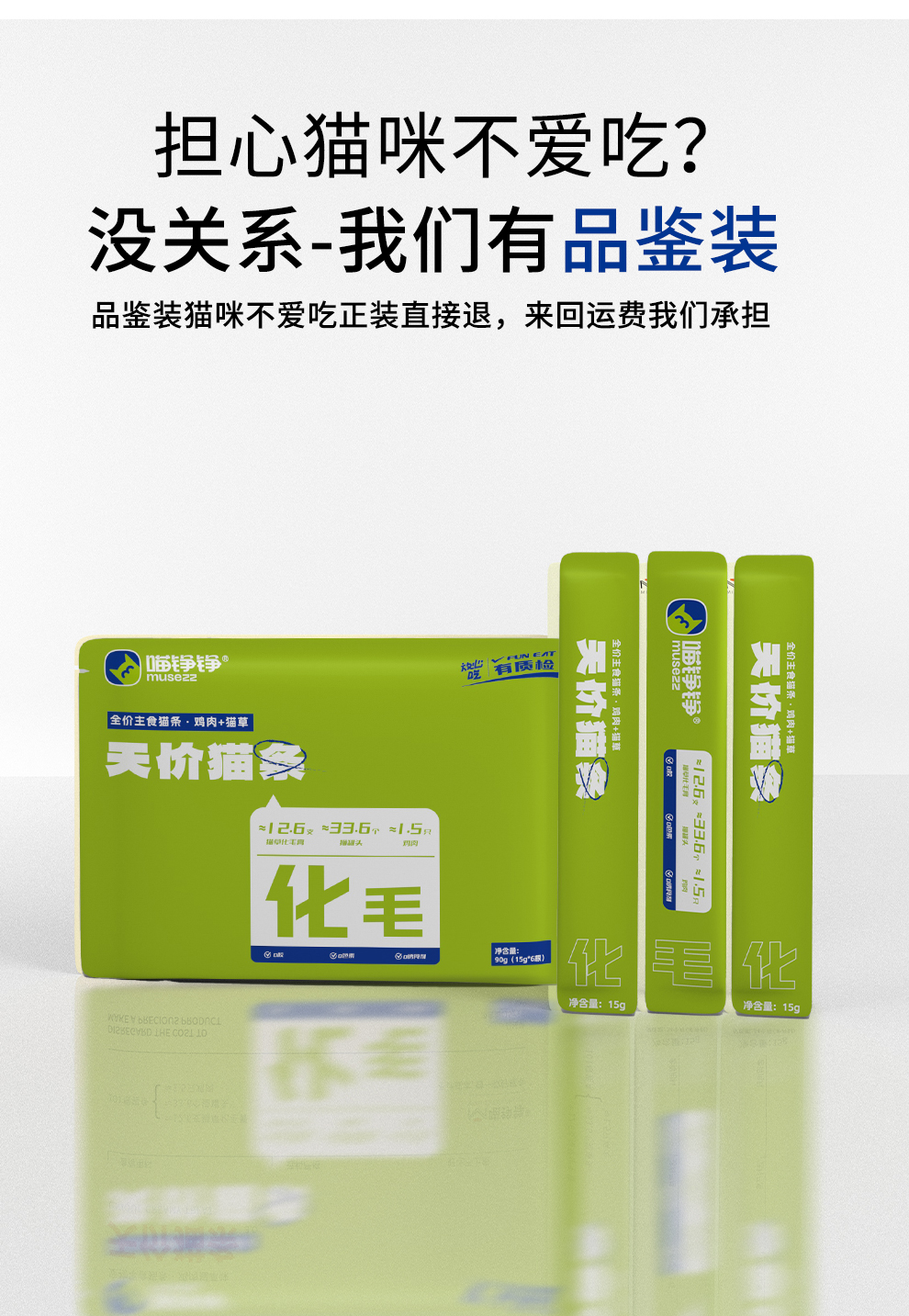 心选丨喵铮铮天价鸡肉猫草主食猫条 15g*101根 排毛化毛营养湿粮零食