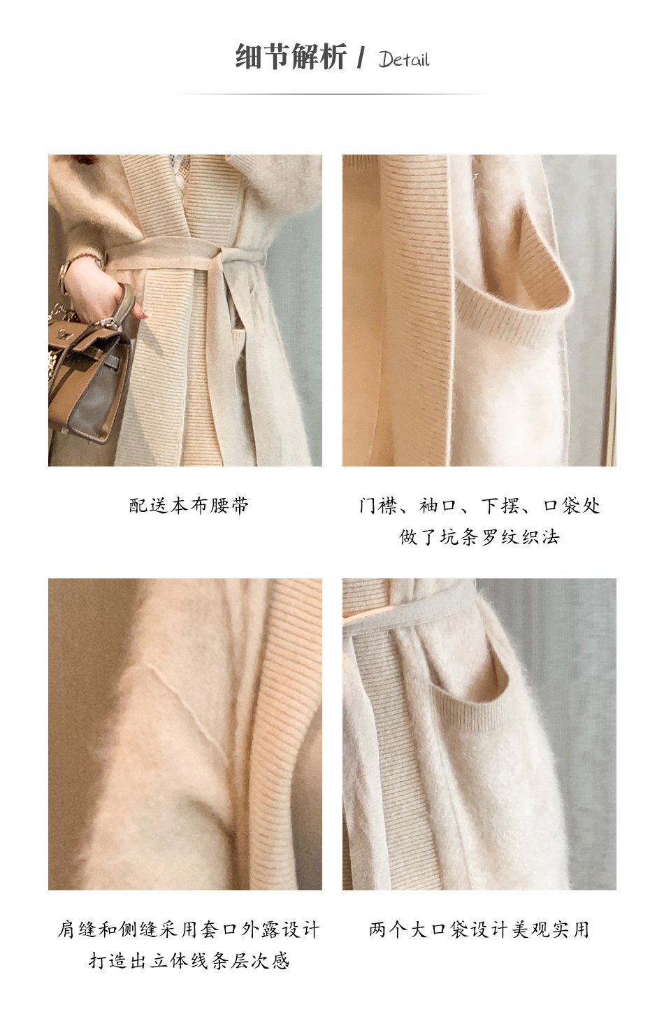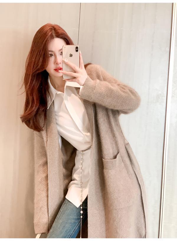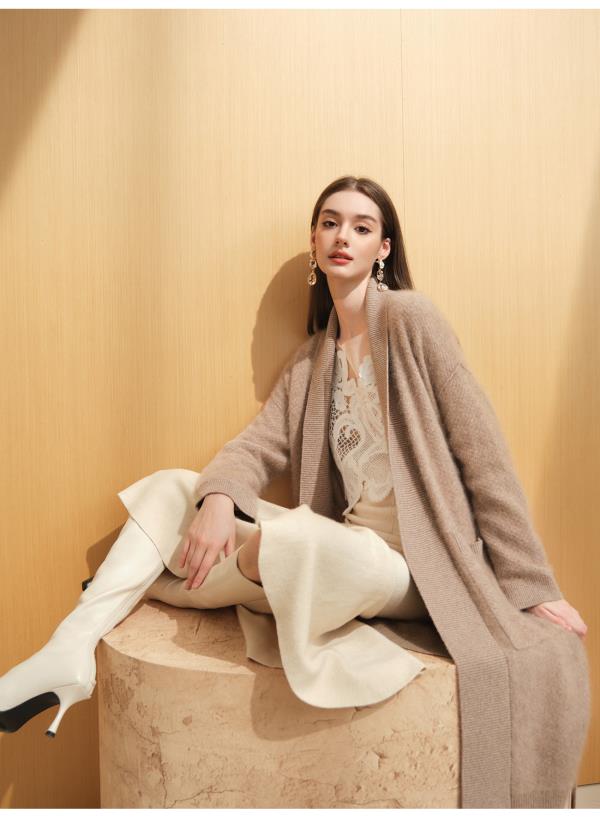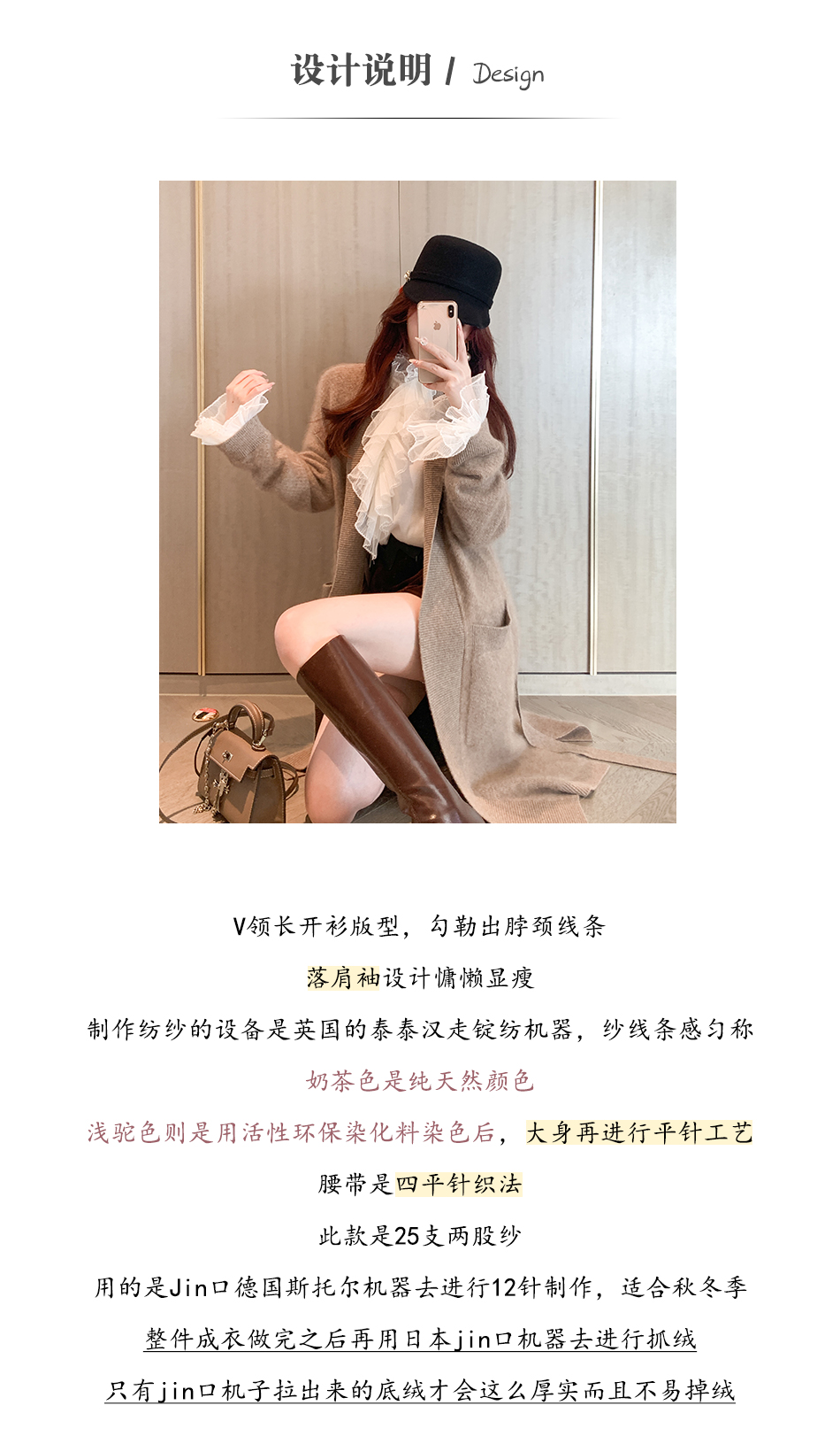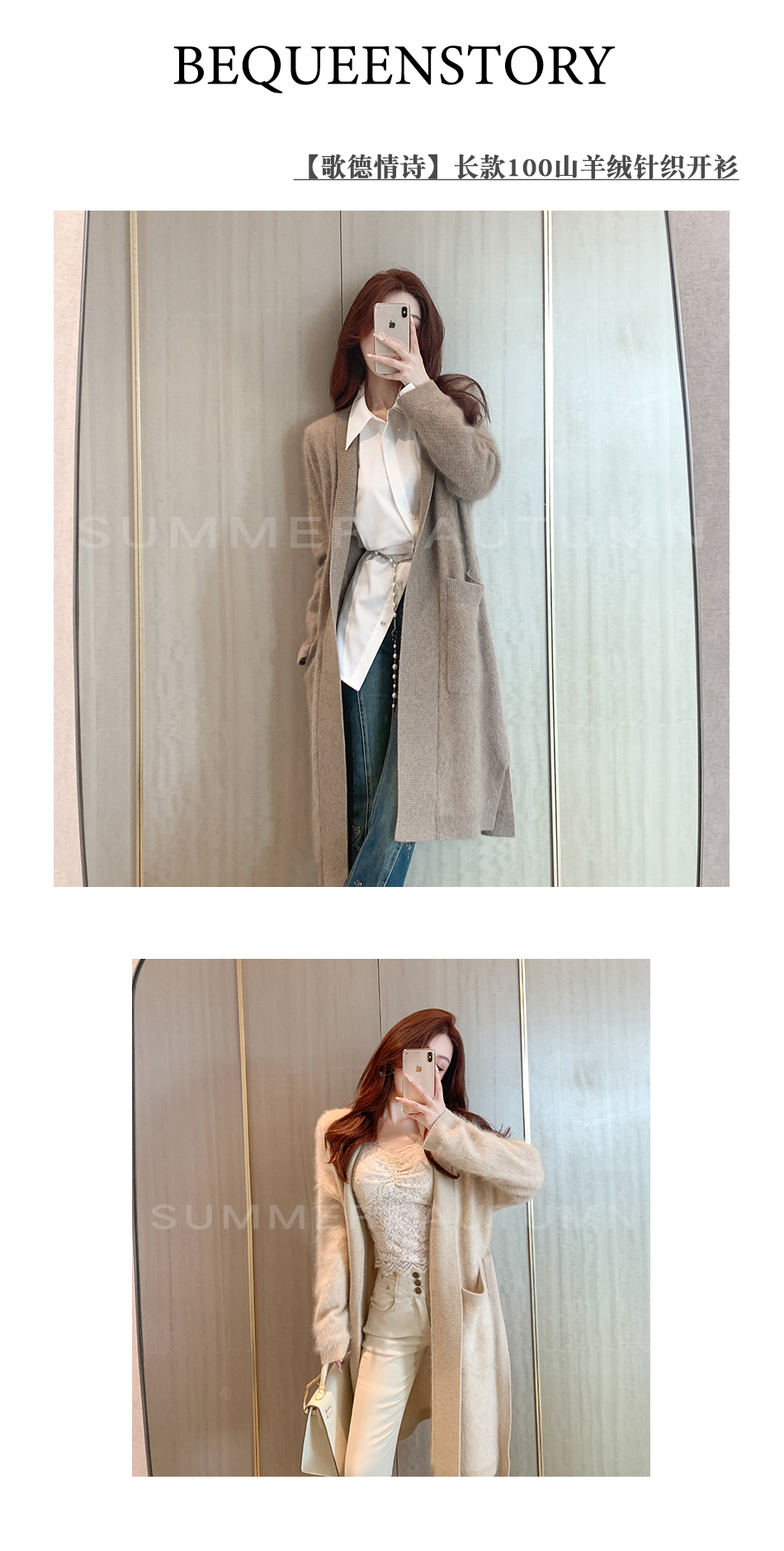 BeQueenStory【歌德情诗】韩版休闲百搭气质长款625g山羊绒针织外套