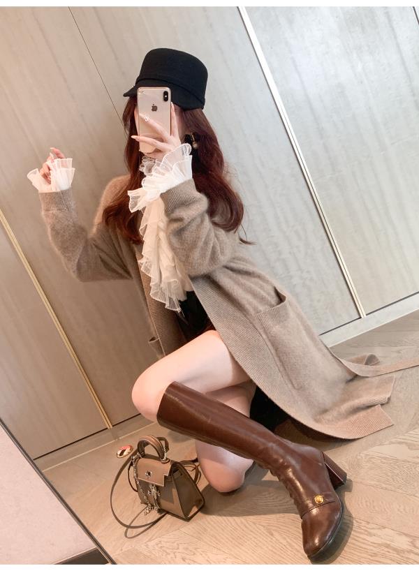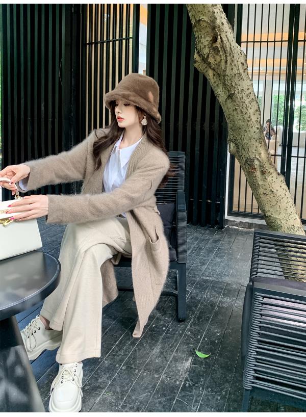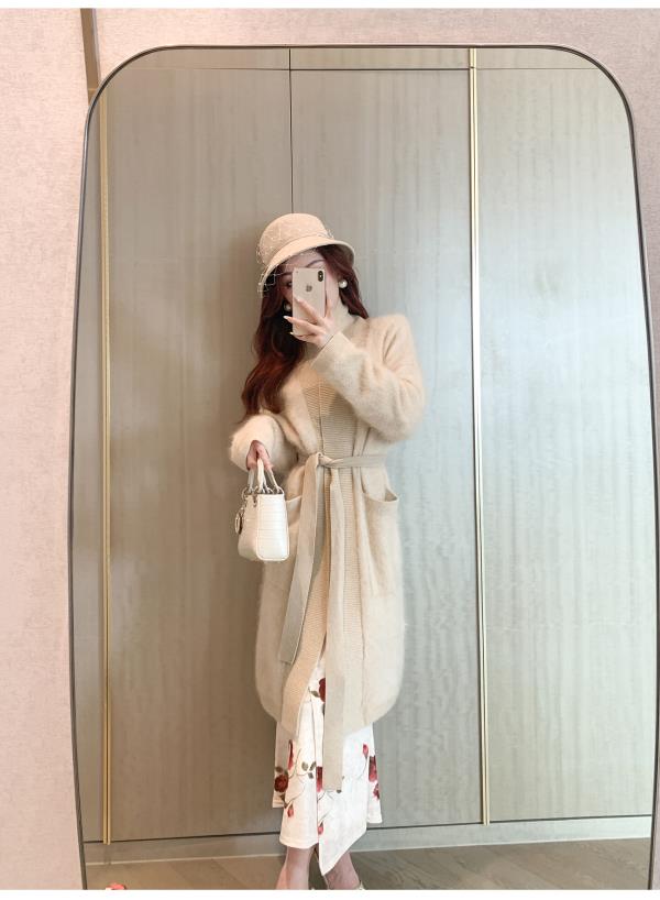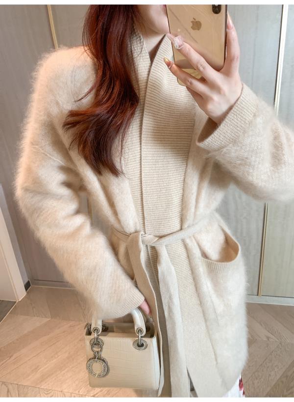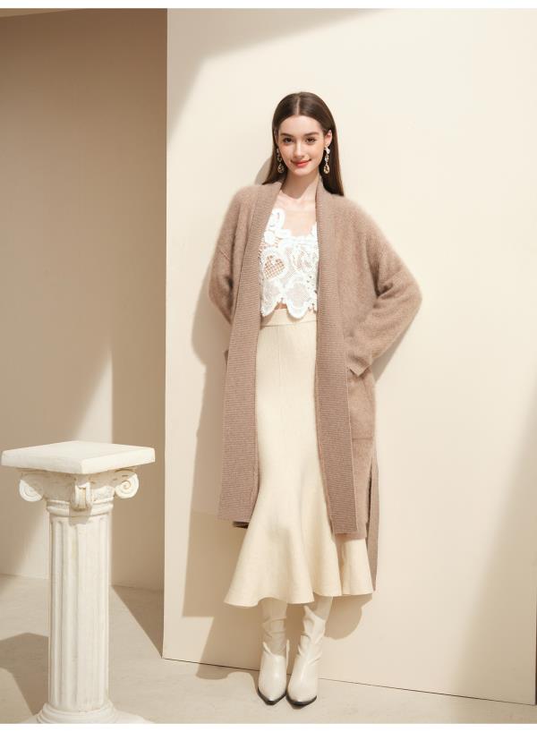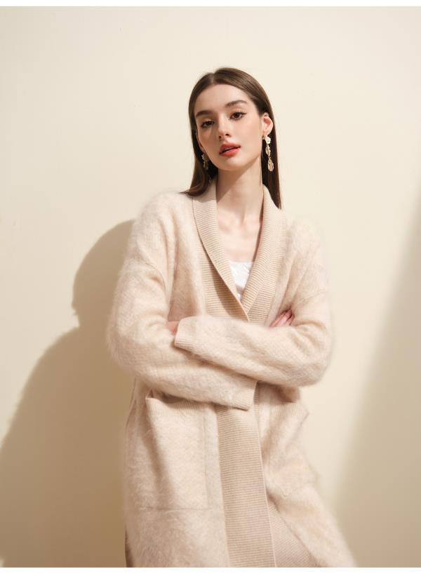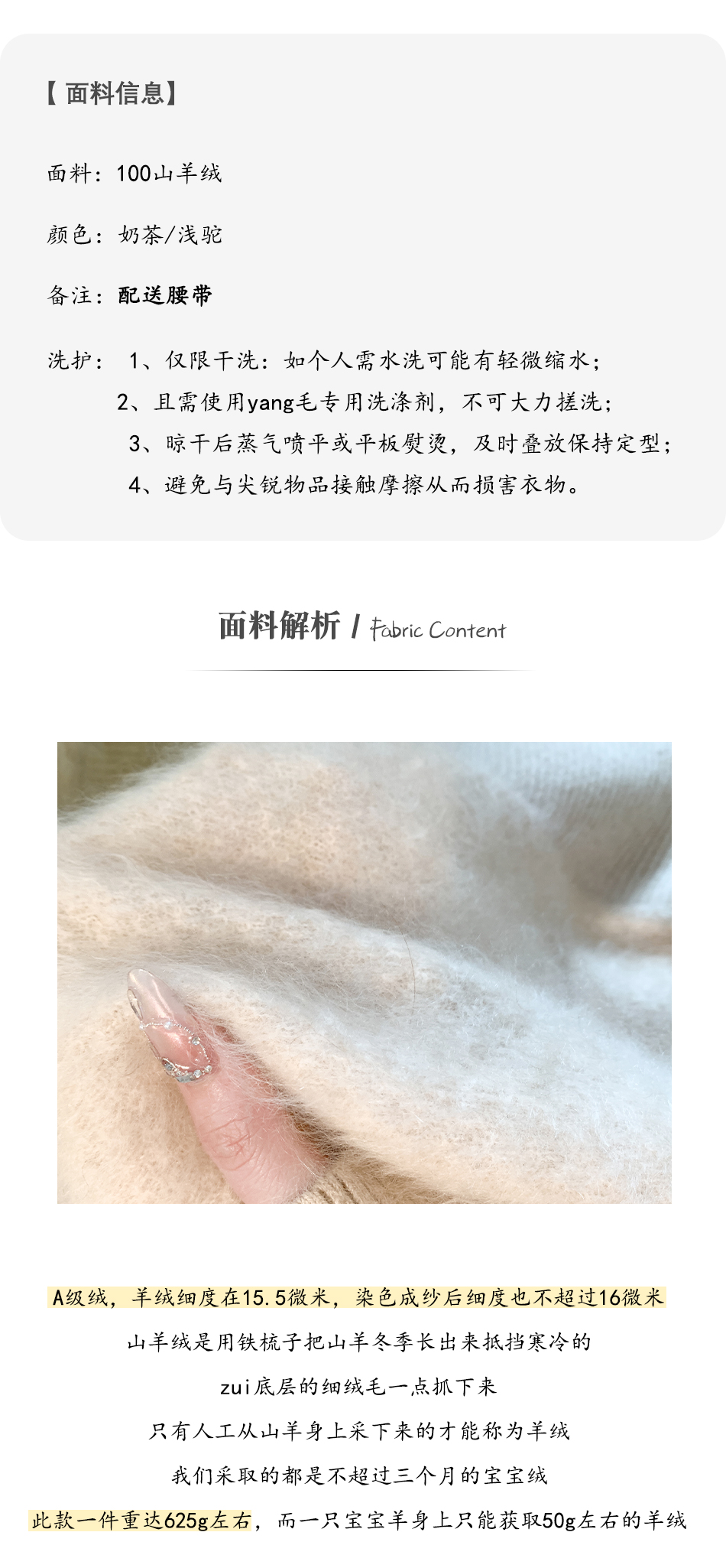 BeQueenStory【歌德情诗】韩版休闲百搭气质长款625g山羊绒针织外套
