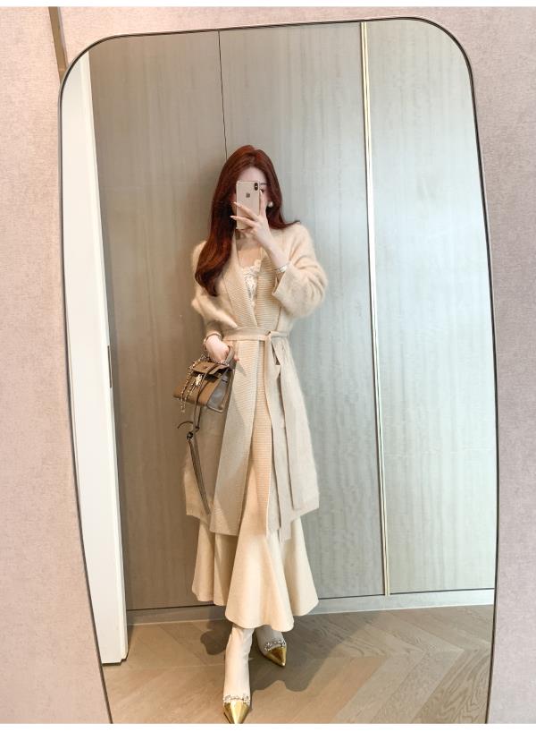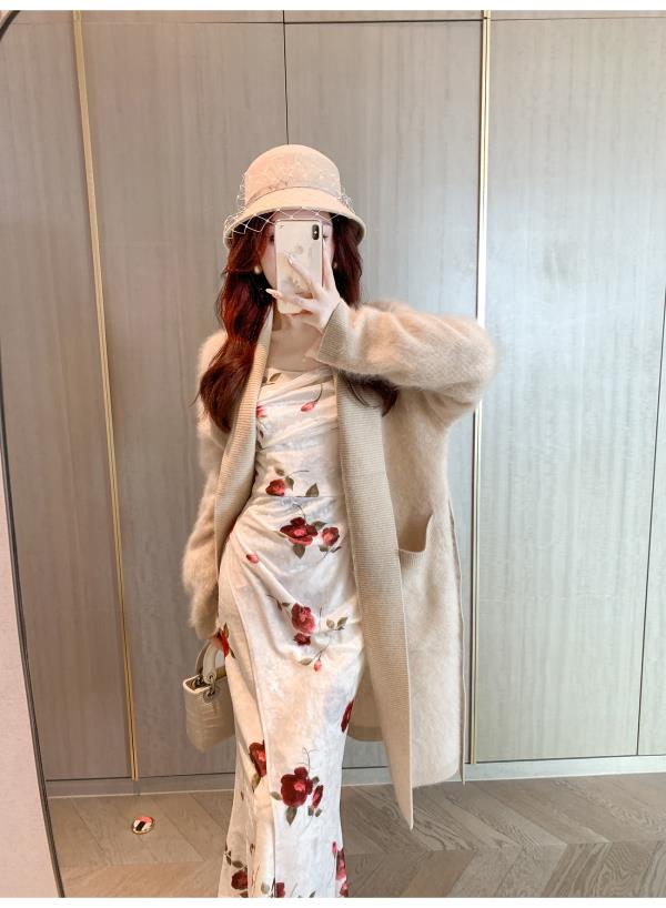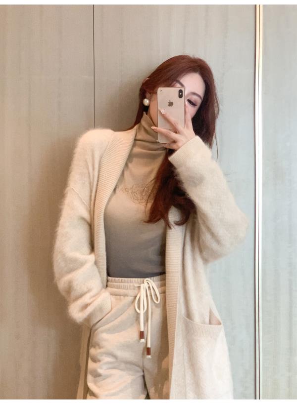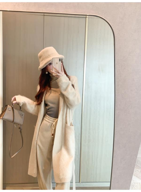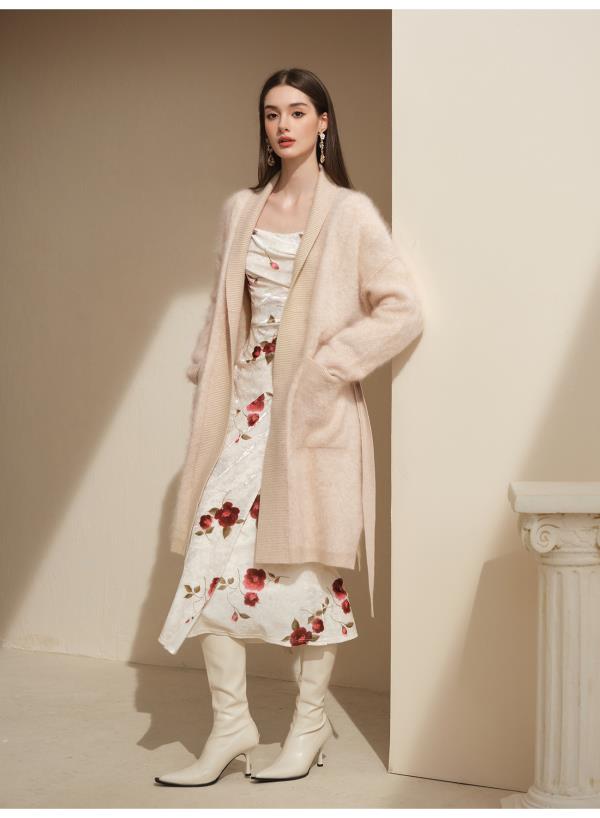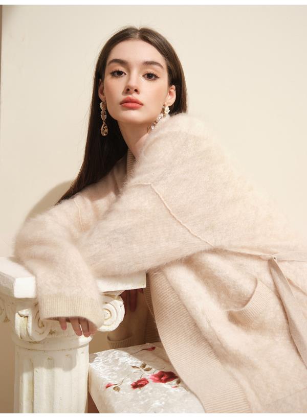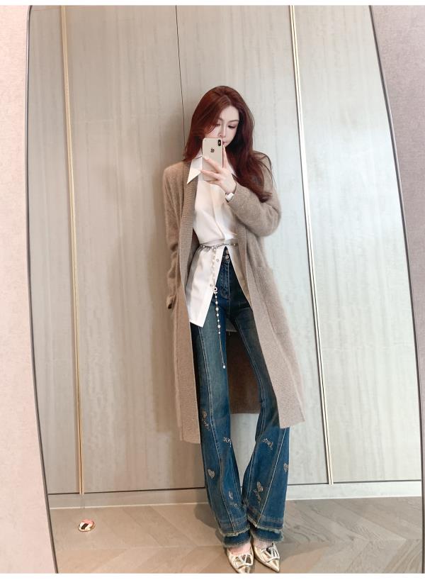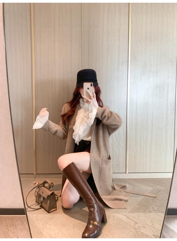 BeQueenStory【歌德情诗】韩版休闲百搭气质长款625g山羊绒针织外套