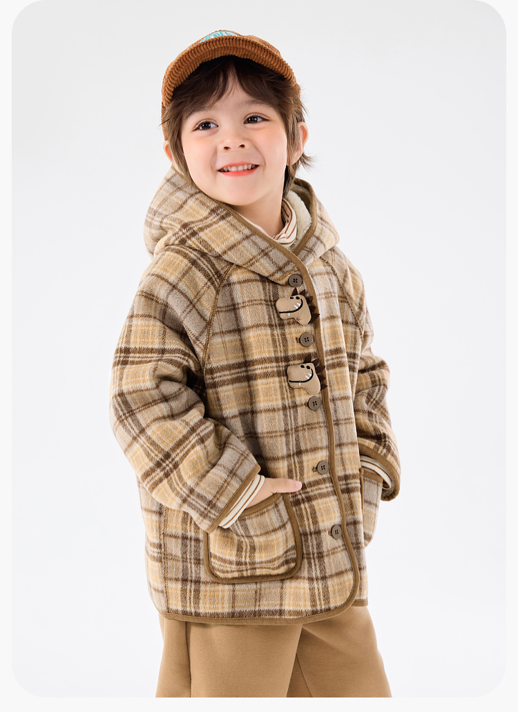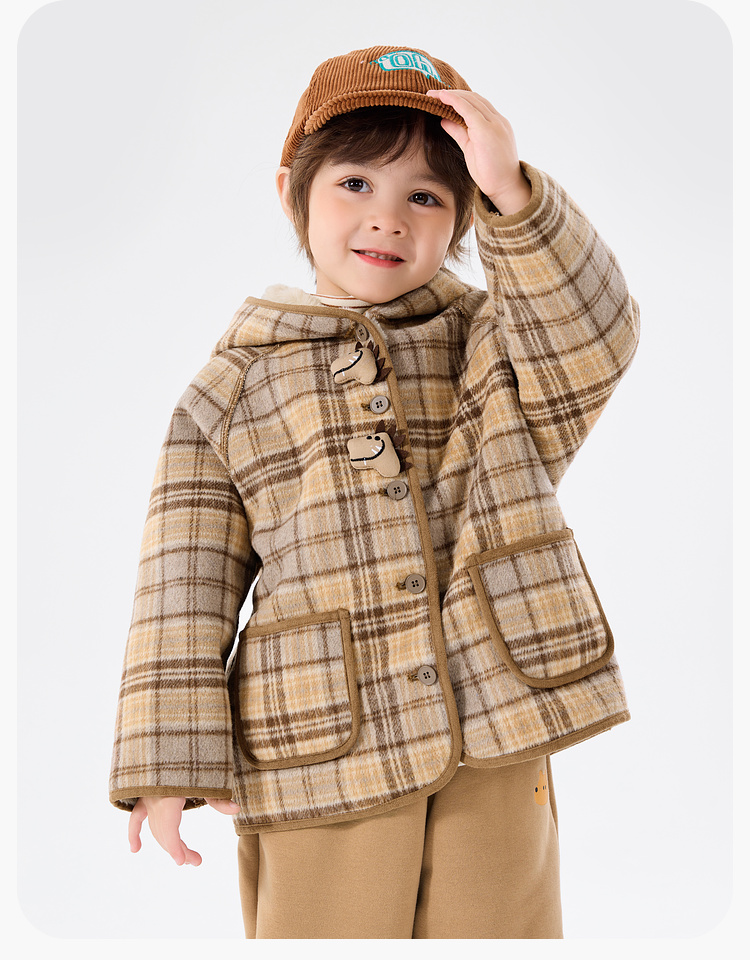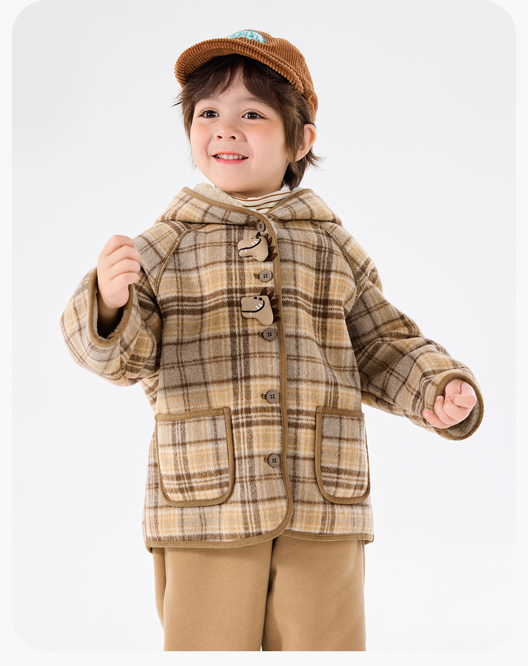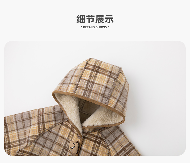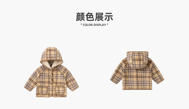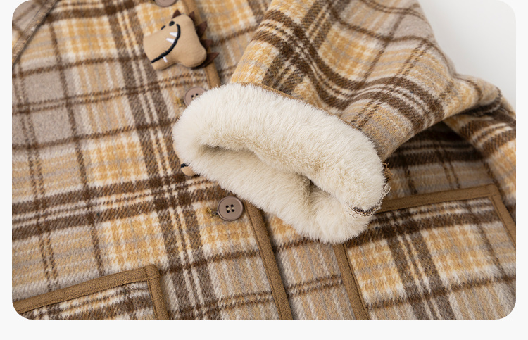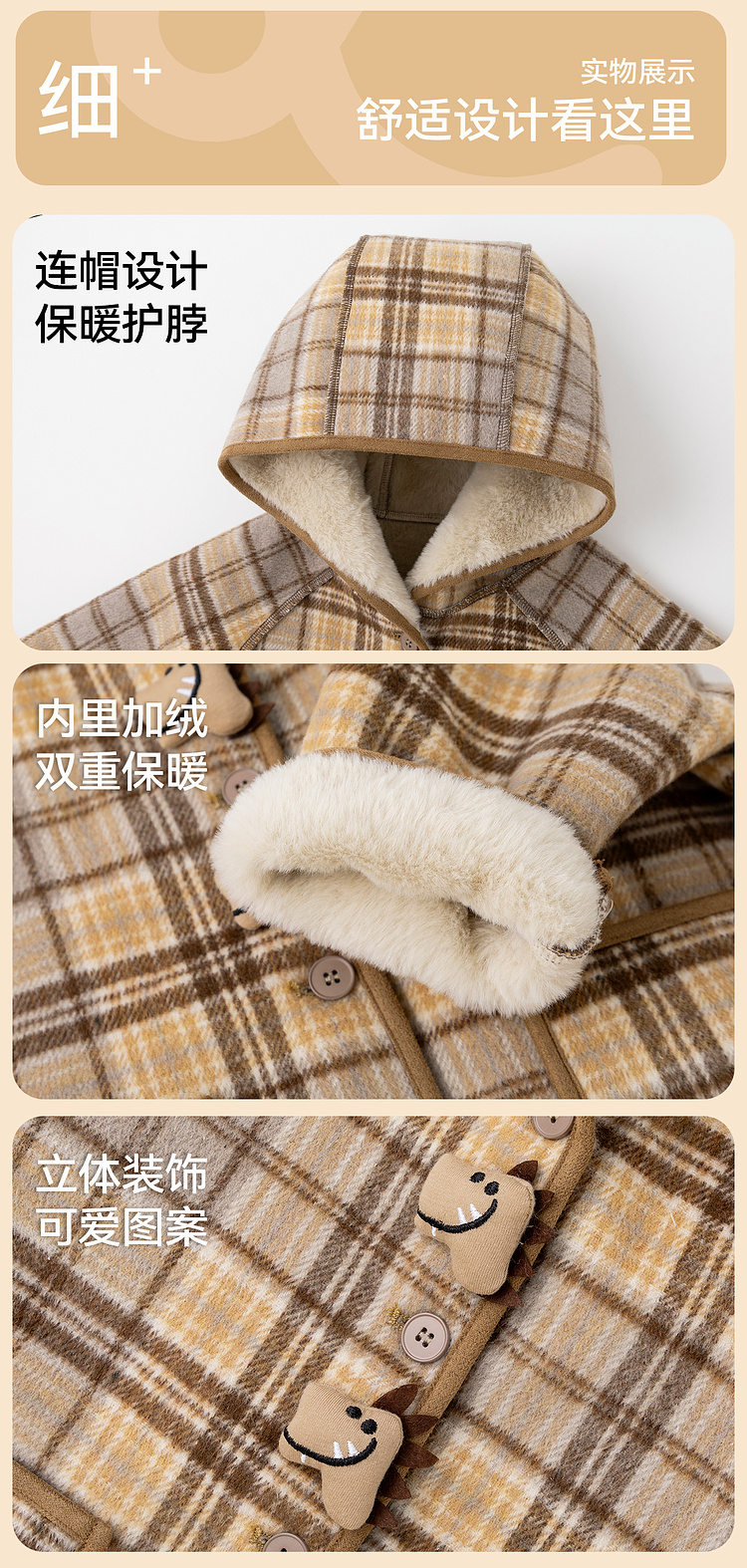 嘟嘟家儿童外套冬季加绒女童格子大衣冬装男童加厚上衣童装宝宝潮