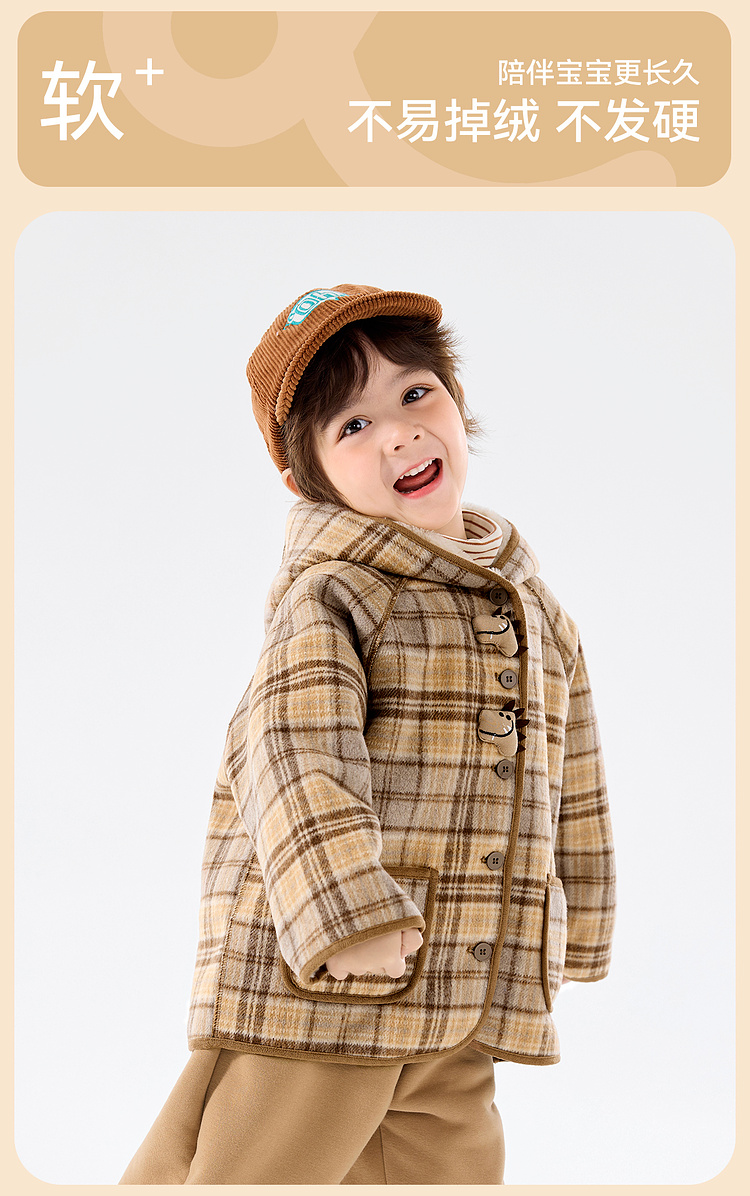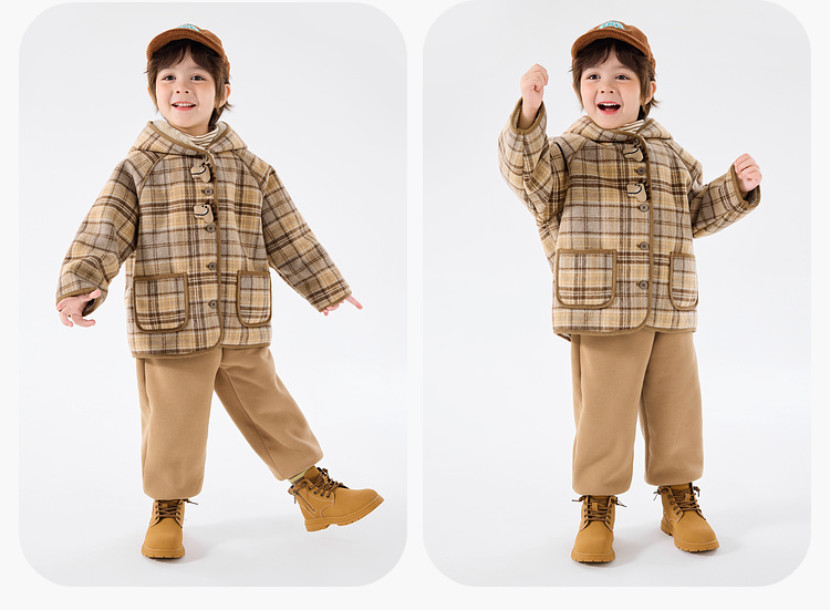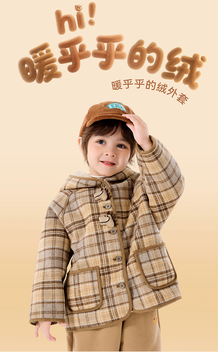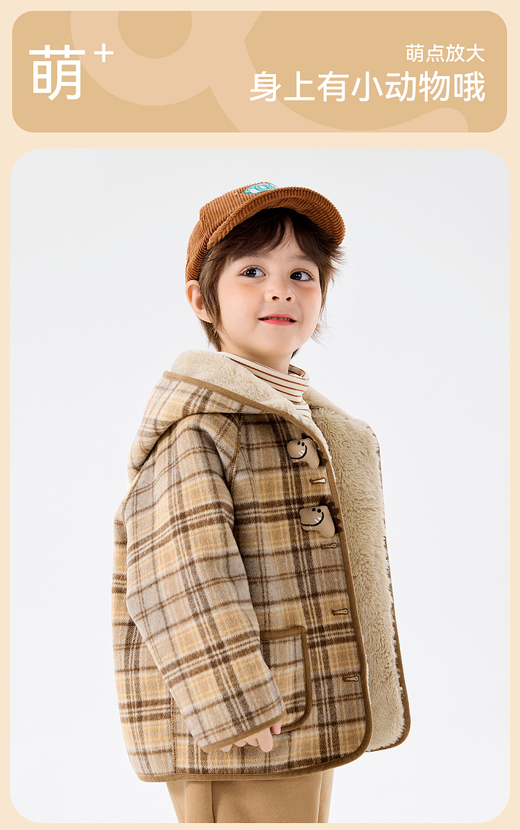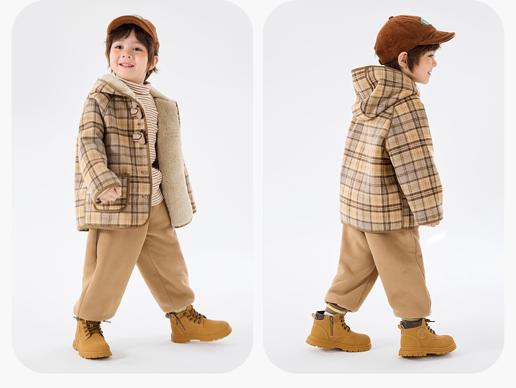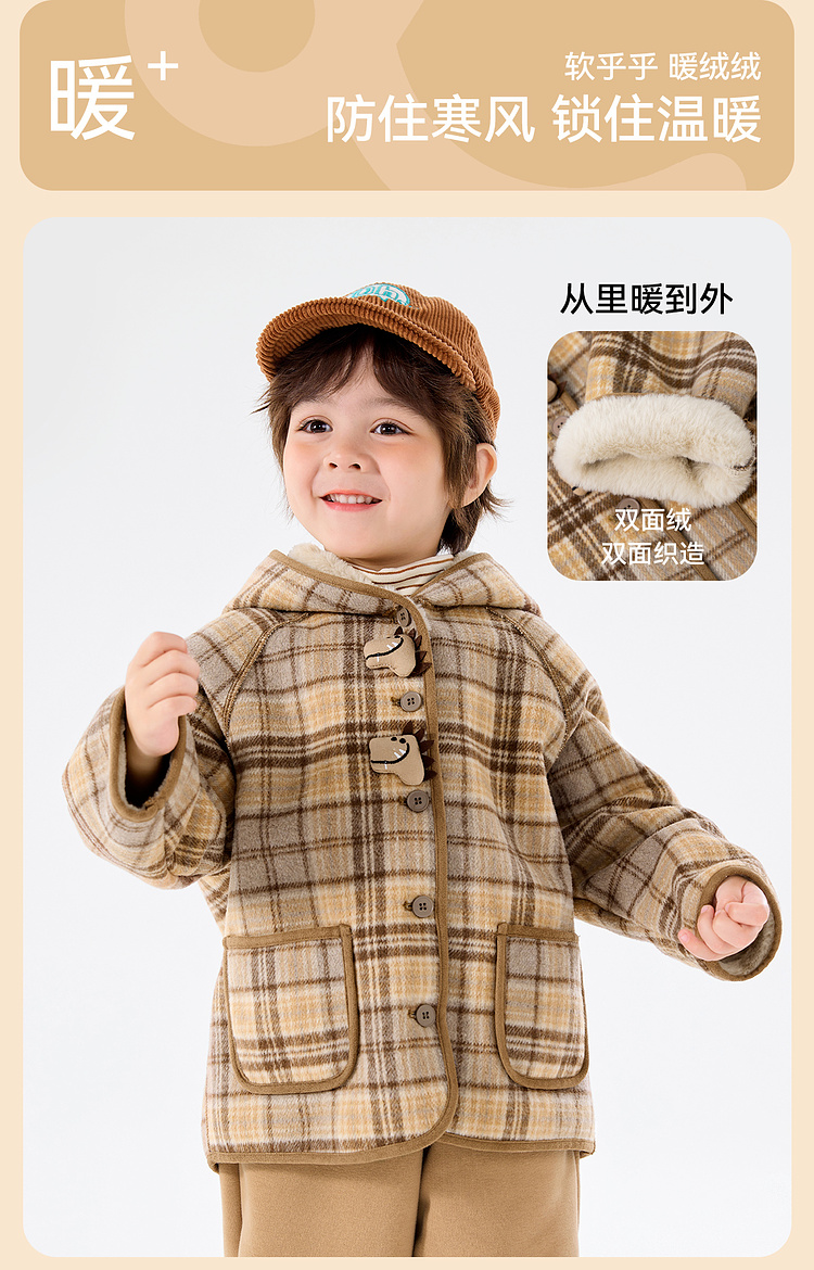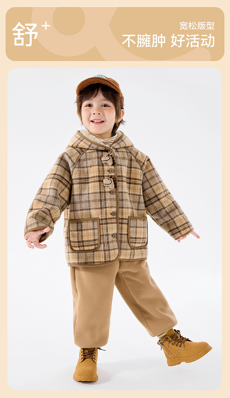 嘟嘟家儿童外套冬季加绒女童格子大衣冬装男童加厚上衣童装宝宝潮