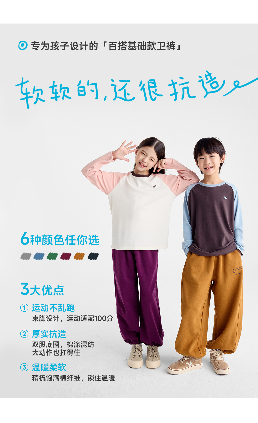 咕噜日记童装女童休闲运动裤2025秋季儿童软软裤男童耐磨廓型卫裤PDK2518