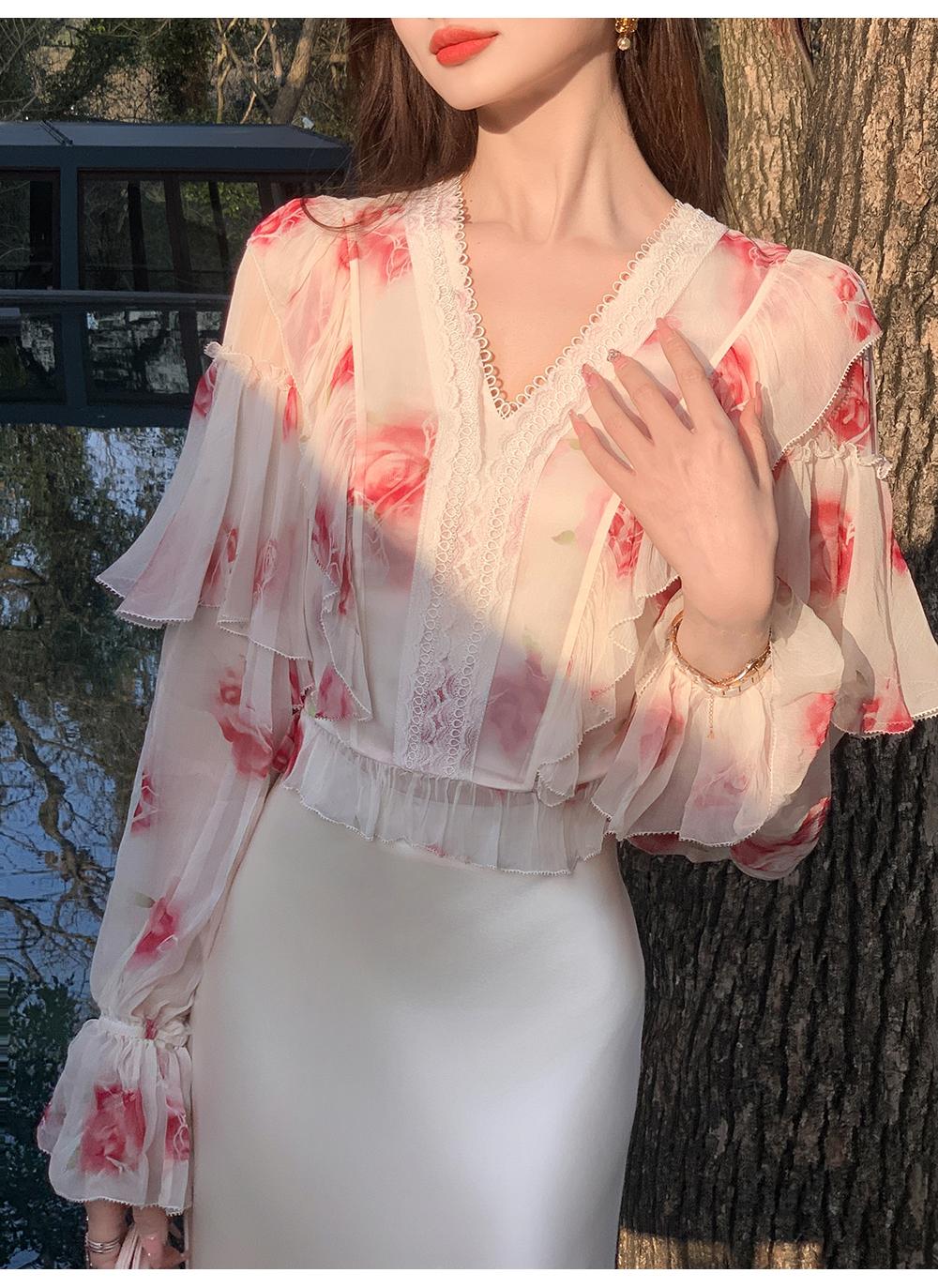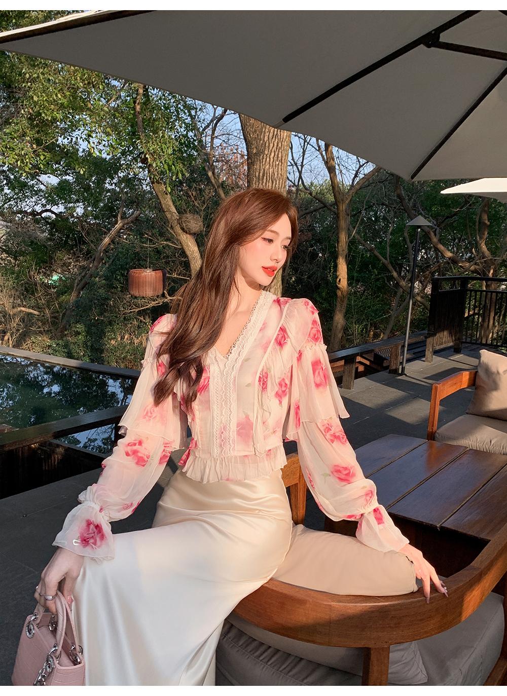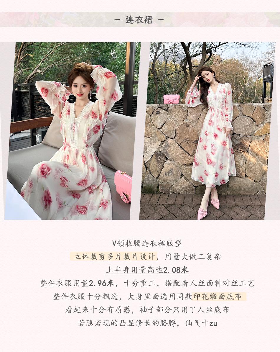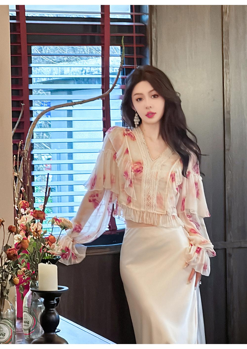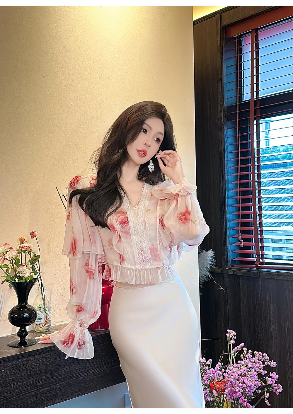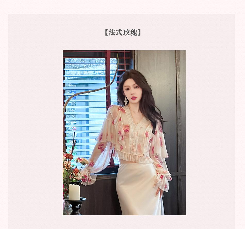 【孤品样衣,不退不换】【法奢玫瑰】法式轻奢气质碎花V领修身短款衬衫&连衣裙