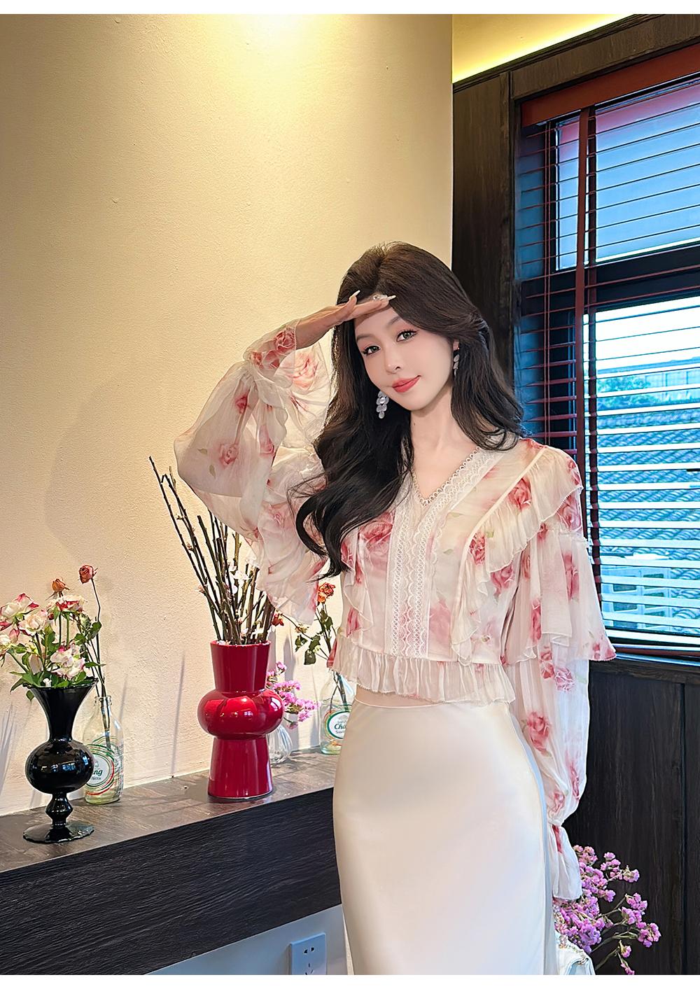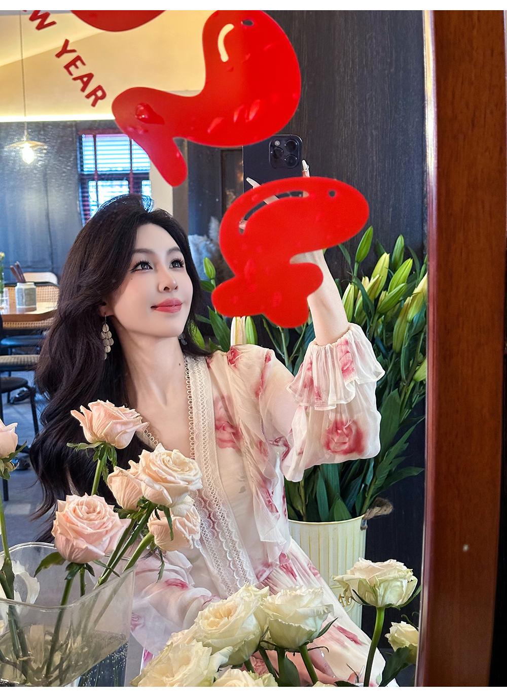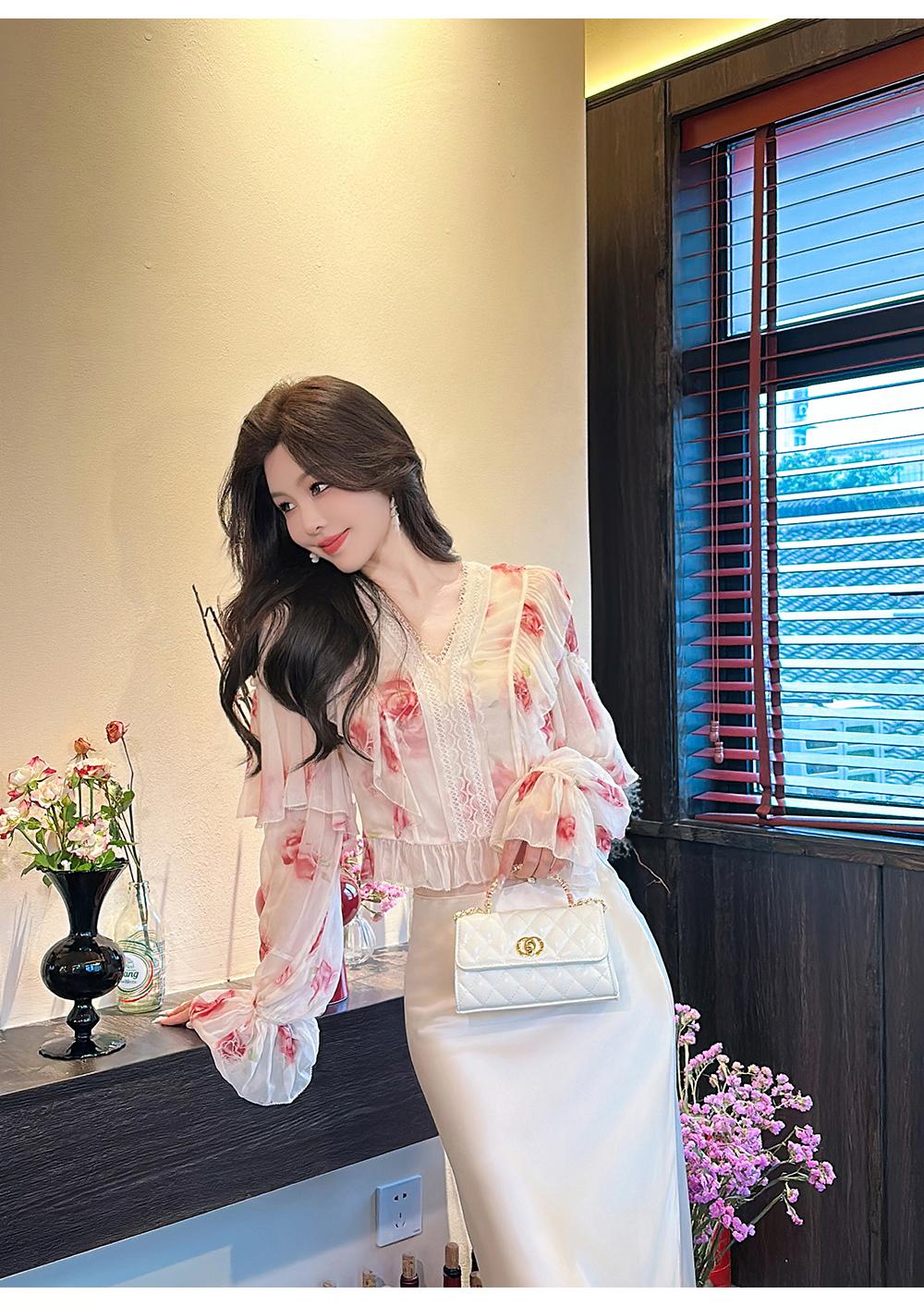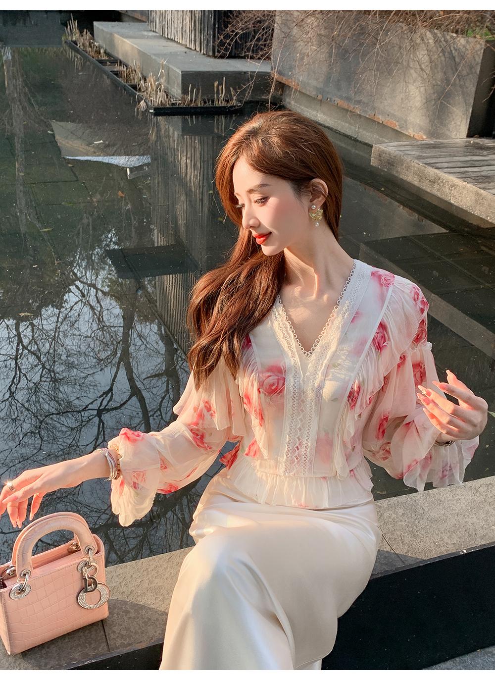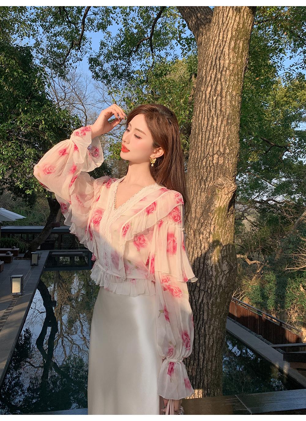 【孤品样衣,不退不换】【法奢玫瑰】法式轻奢气质碎花V领修身短款衬衫&连衣裙