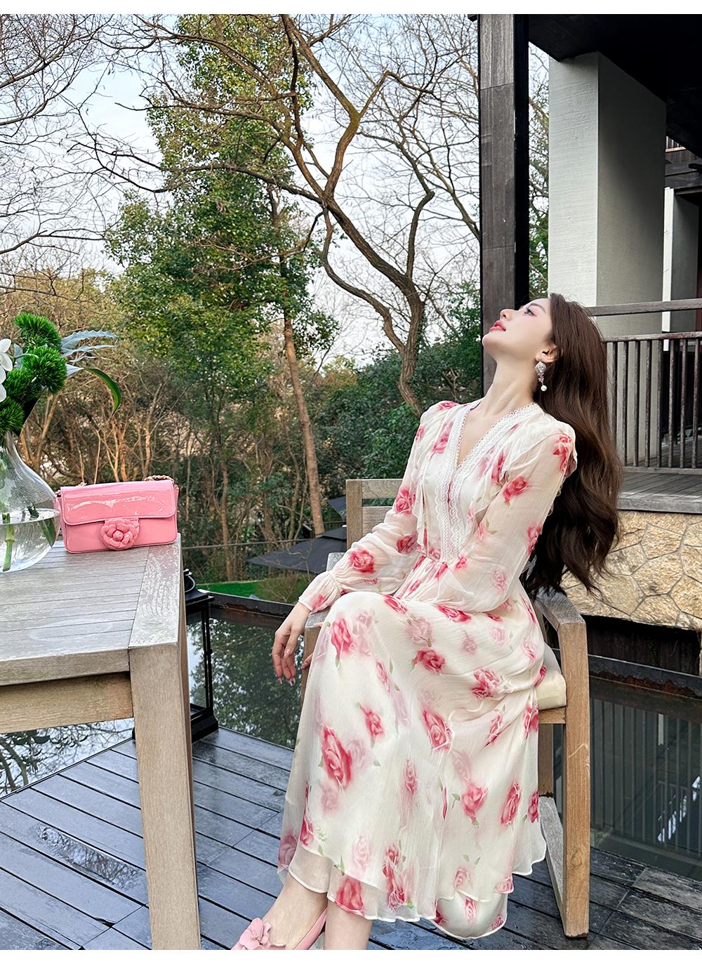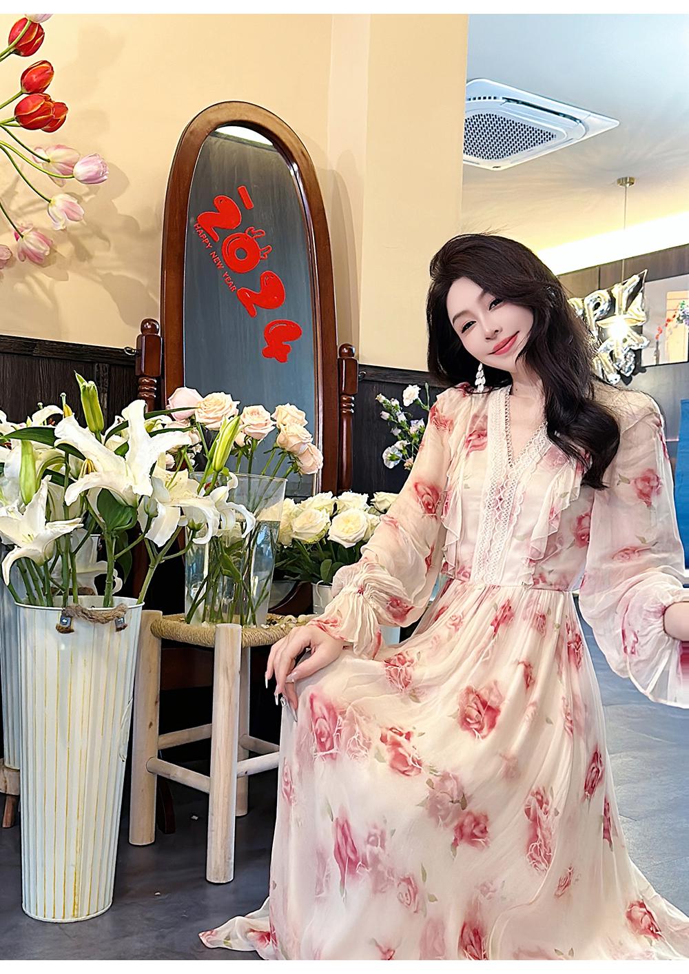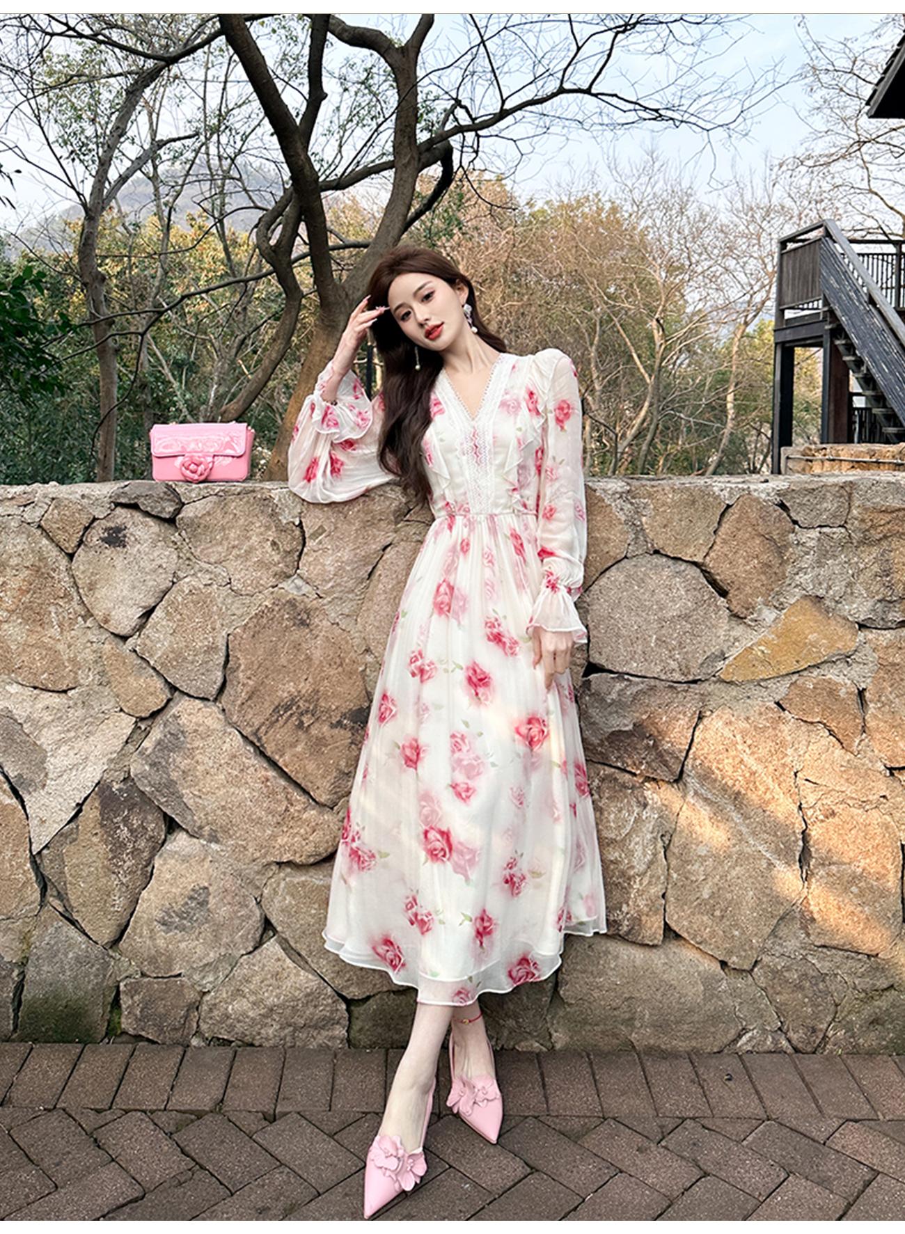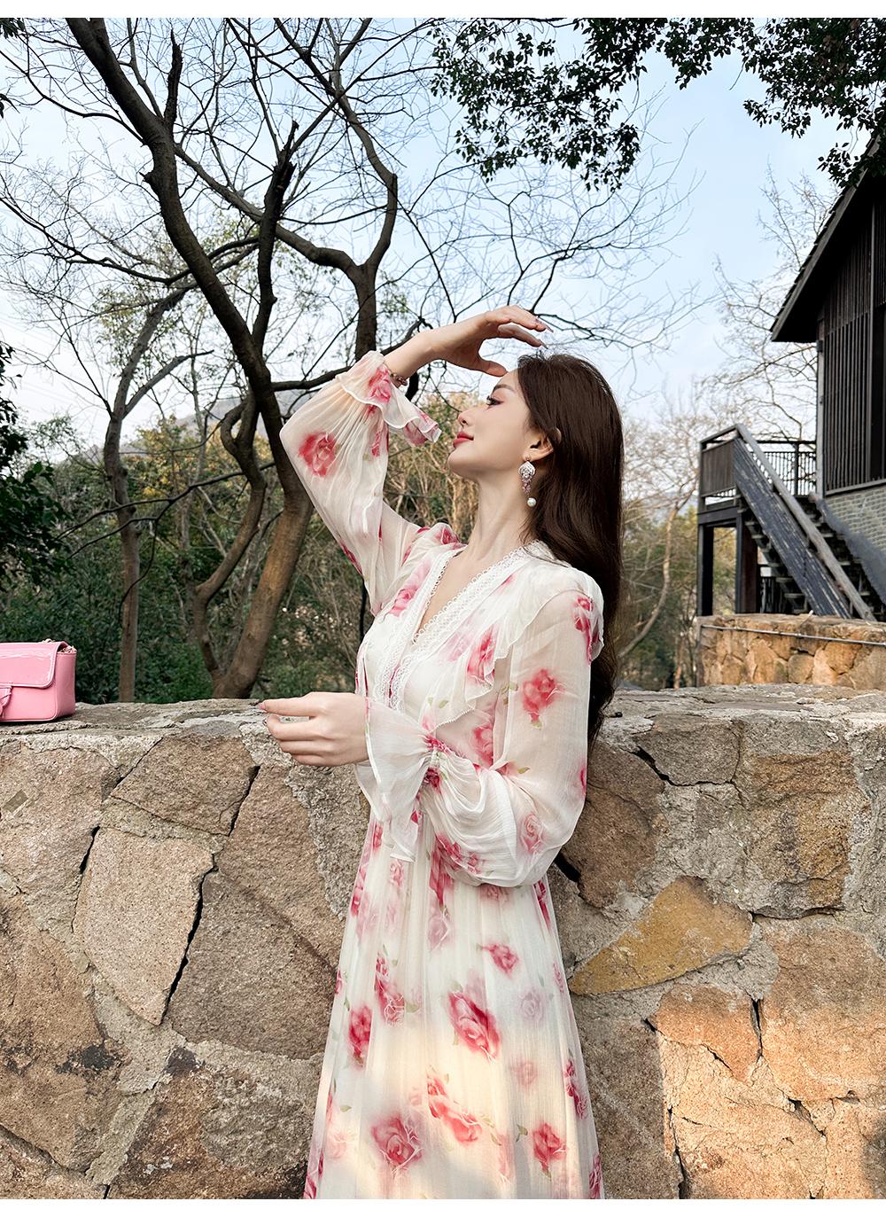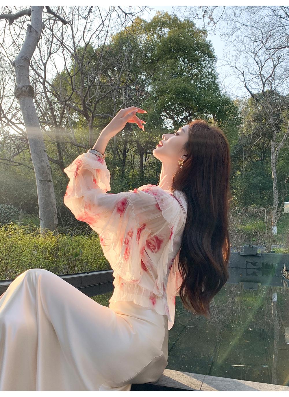 【孤品样衣,不退不换】【法奢玫瑰】法式轻奢气质碎花V领修身短款衬衫&连衣裙