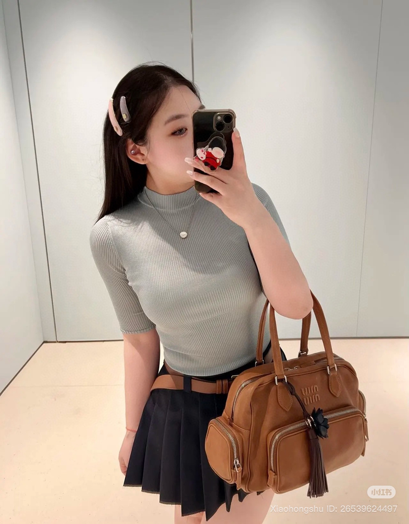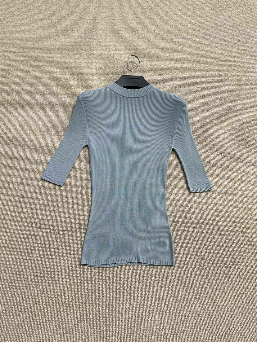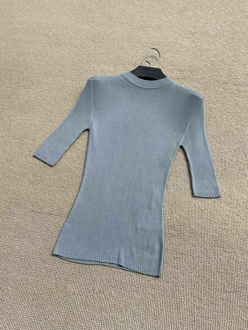 Miu 25FW 中袖圆领纯真丝打底衫,
