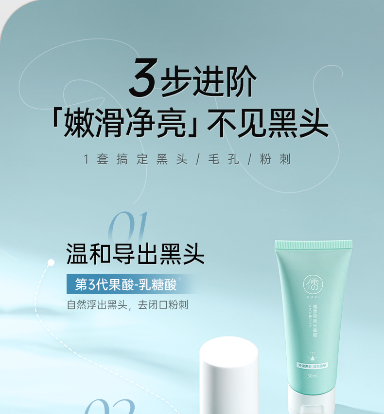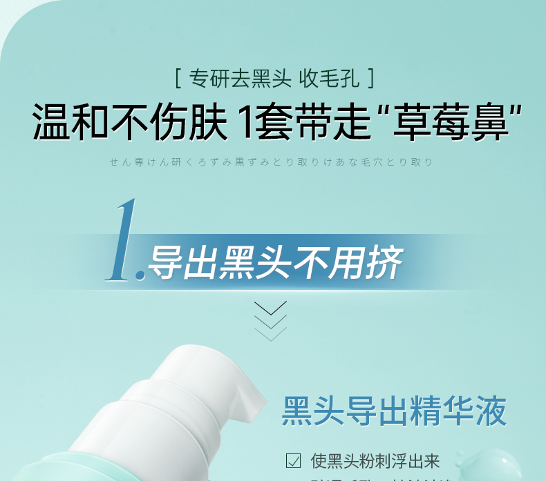 儒意去黑头套装 去黑头收缩毛孔套装祛粉刺深层清洁神器鼻贴导出液男女专用鼻膜