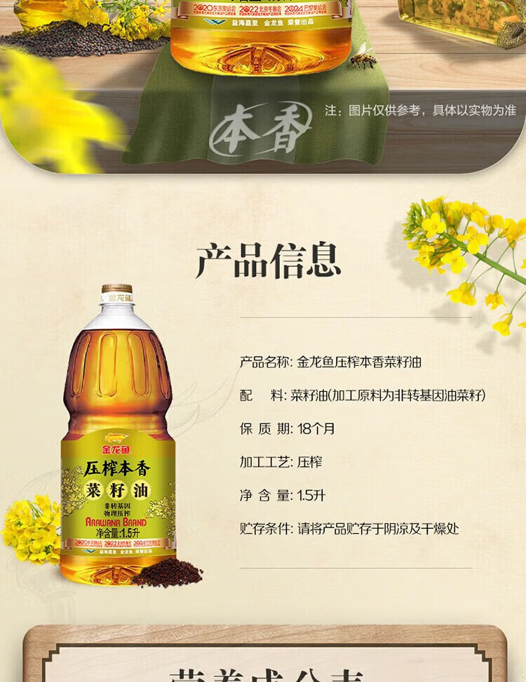 【发出后不支持拦截退货】金龙鱼 压榨本香菜籽油 1.5L