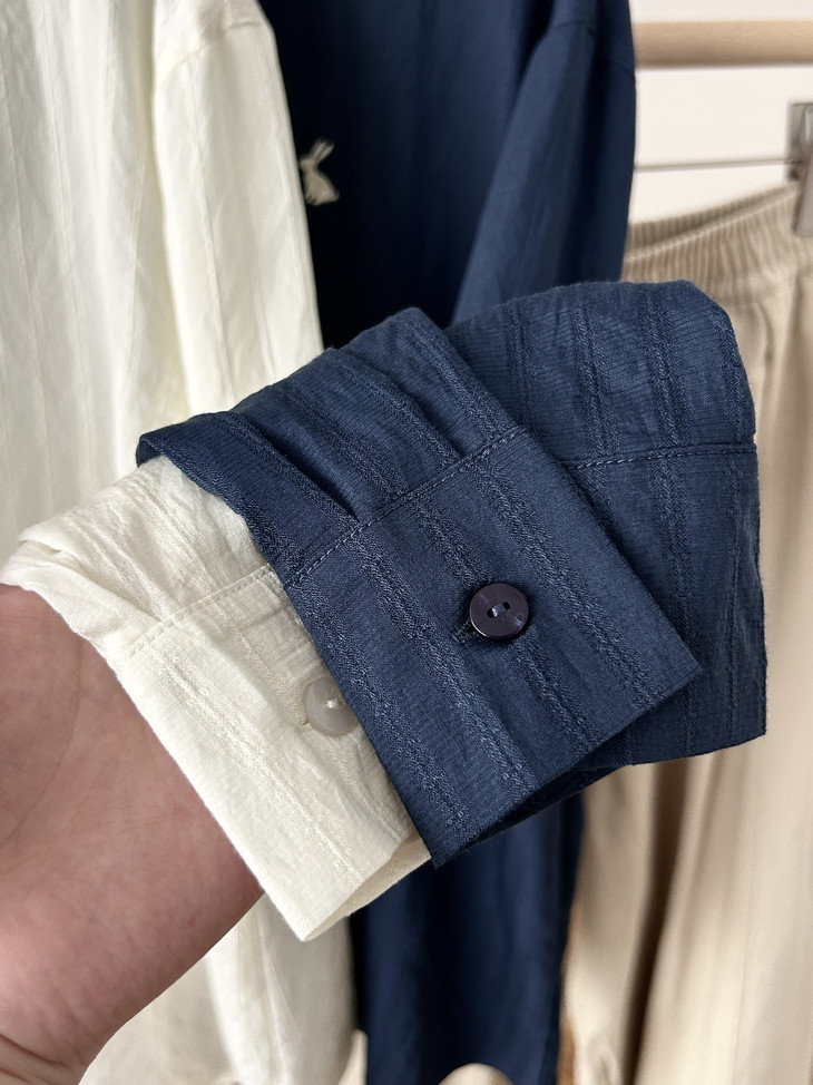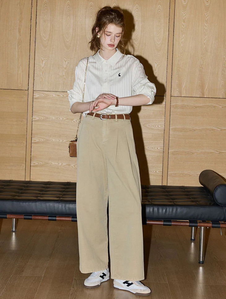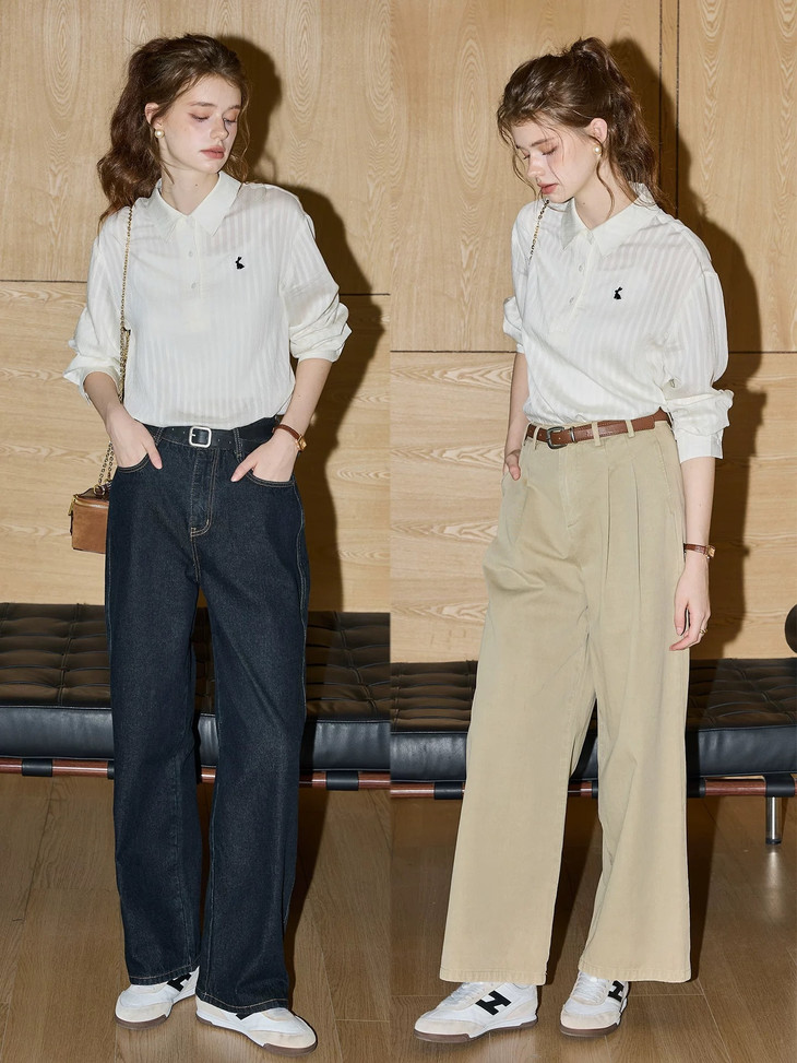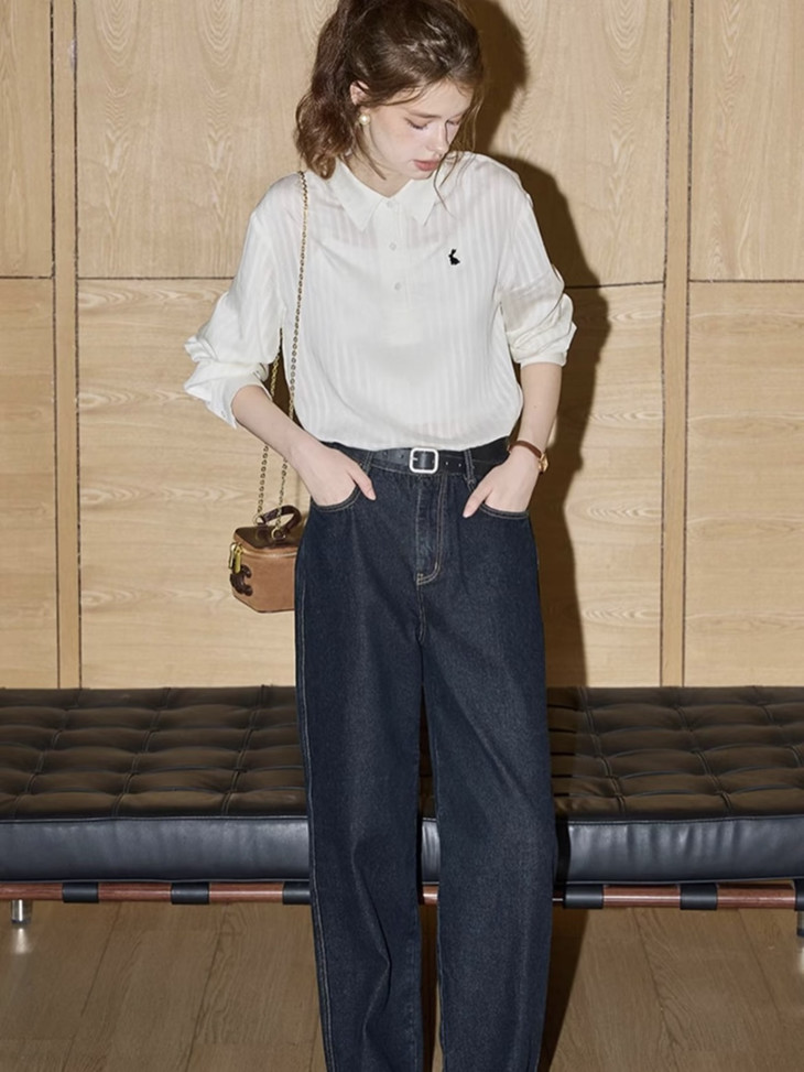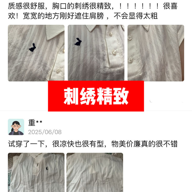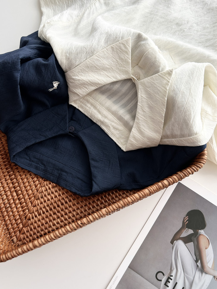 -团长碎碎念- 挖到宝了!这件早秋衬衫穿上身直接瘦一圈! 小兔刺绣长袖POLO衬衫真的绝了! 水洗工艺处理过的面料软糯得像棉花糖 贴身穿清凉透气,舒服到不想脱! 最戳我的是那个半开襟POLO领 巧妙遮住锁骨肉肉,搭配精致小兔刺绣 气质瞬间拉满,上班约会都能轻松hold住!. 除了原有的百搭清爽米白色! 特别增加了显瘦的藏青色,两个颜色都很绝! 我个人直接all in! 小众不撞款,通勤约会都百搭!答应我都去穿!