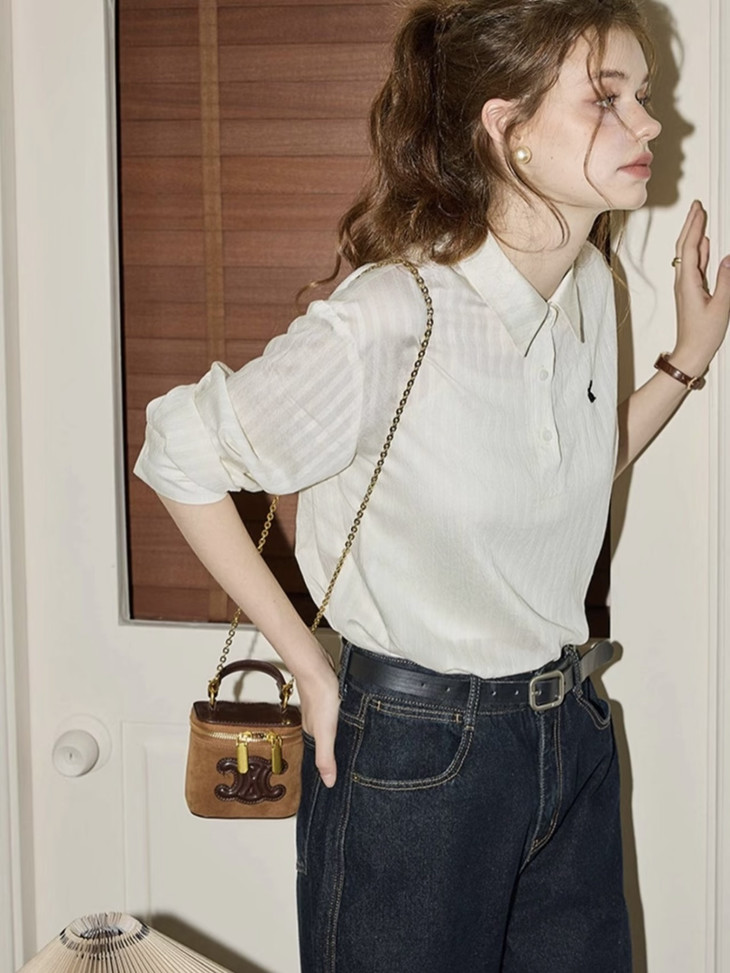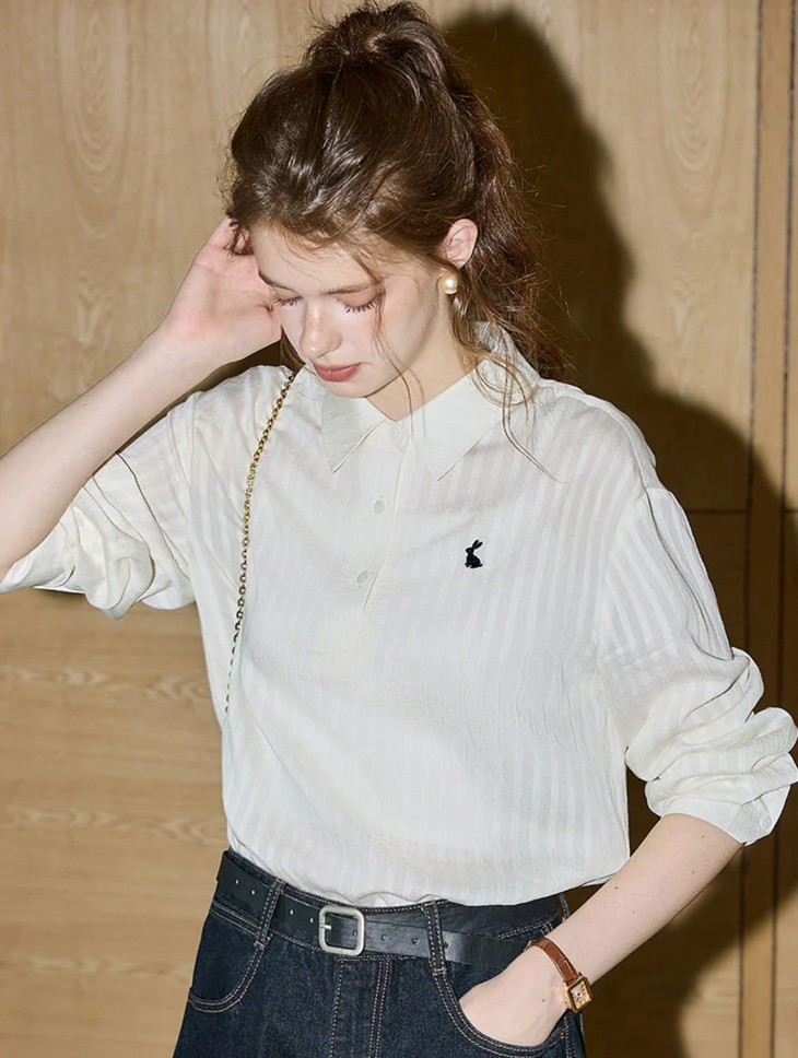 💕【早秋新品】仟梓赫 极简Polo领小兔刺绣衬衫🌈爆卖4600+🌟一上身就沦陷了❗️ 🌸怎么会有这么舒服又显瘦的神仙单品❗️上班穿得体,逛街穿时髦❗️空调房里不冷,大太阳下不闷,是早秋的万能战