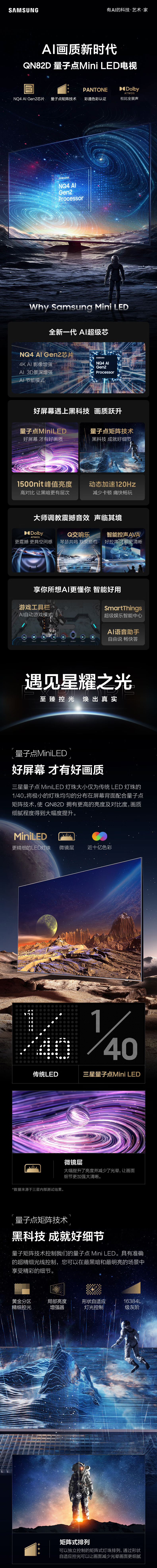 三星QN82D系列 Neo QLED 4K 量子点mini 超高清 AI芯片 智能平板电视 75英寸 QA75QN82DAJXXZ