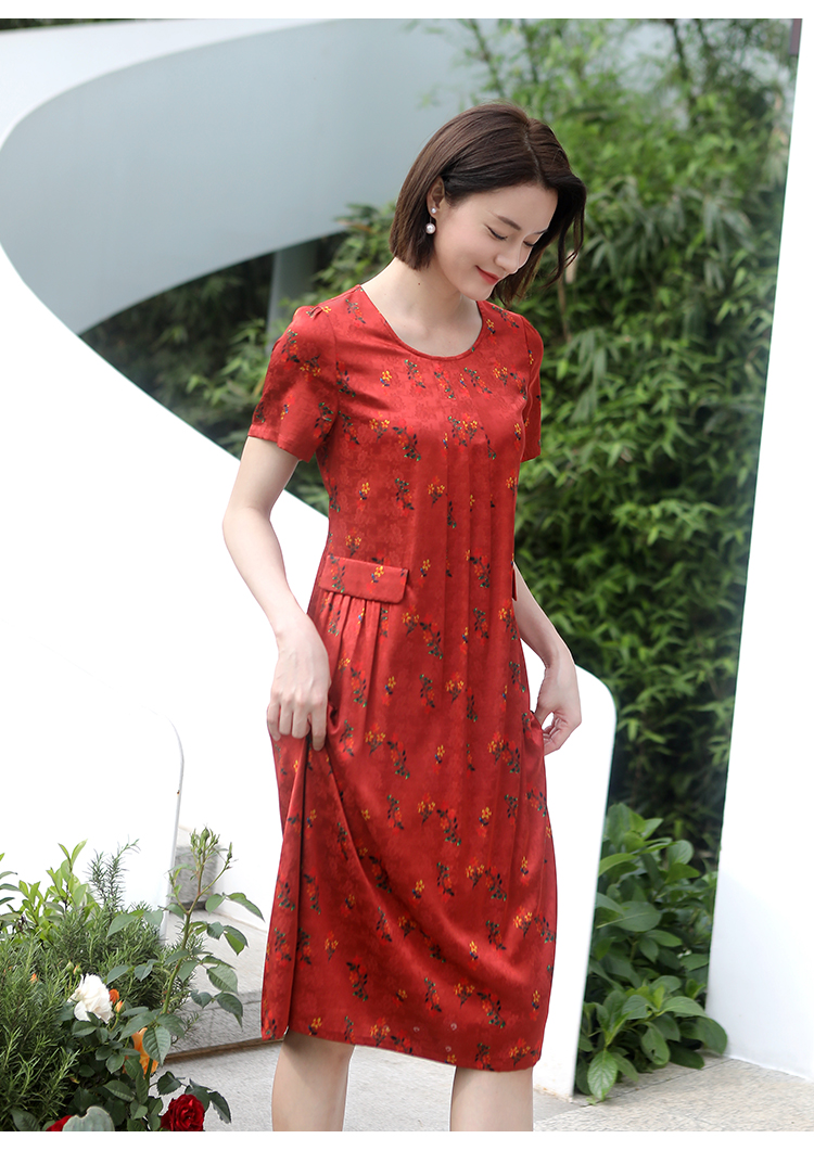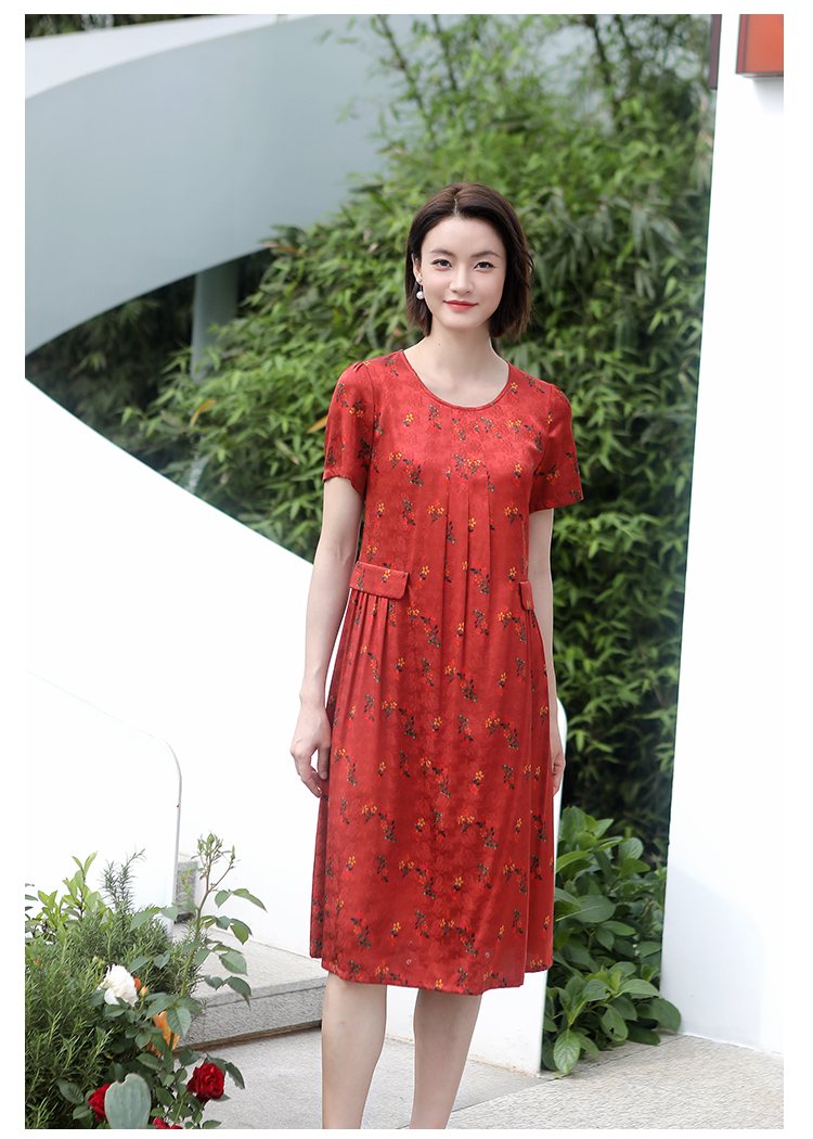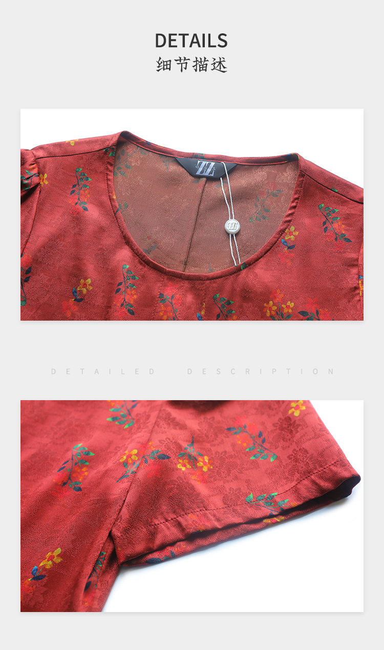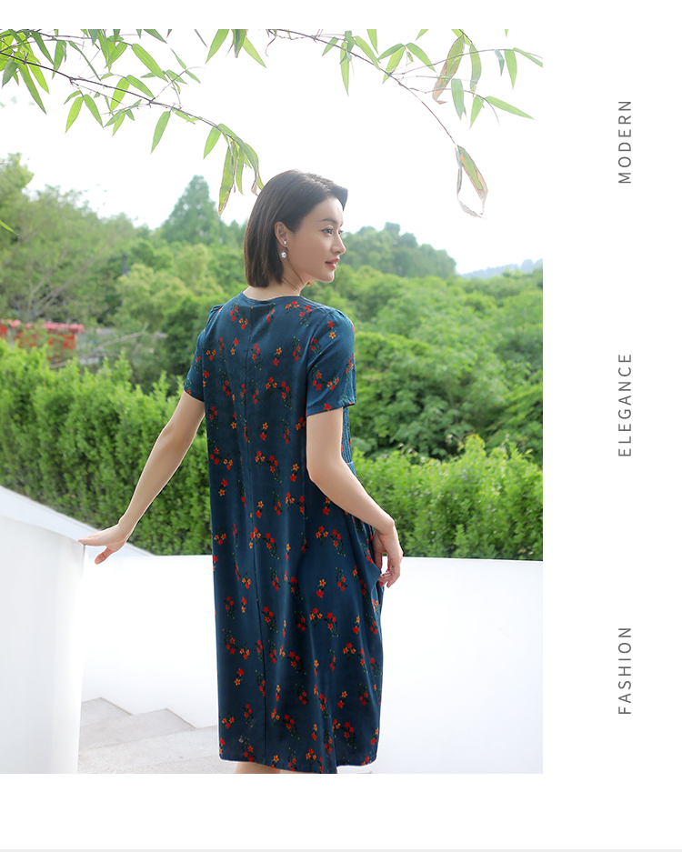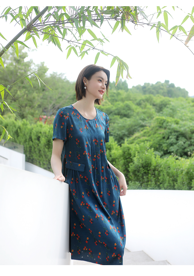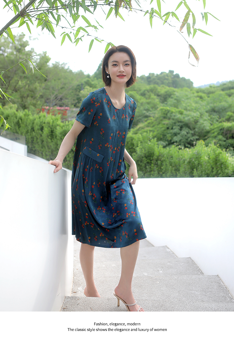 佐尔美夏季新款 气质新中式国风碎花桑蚕丝中长连衣裙女E32LS70