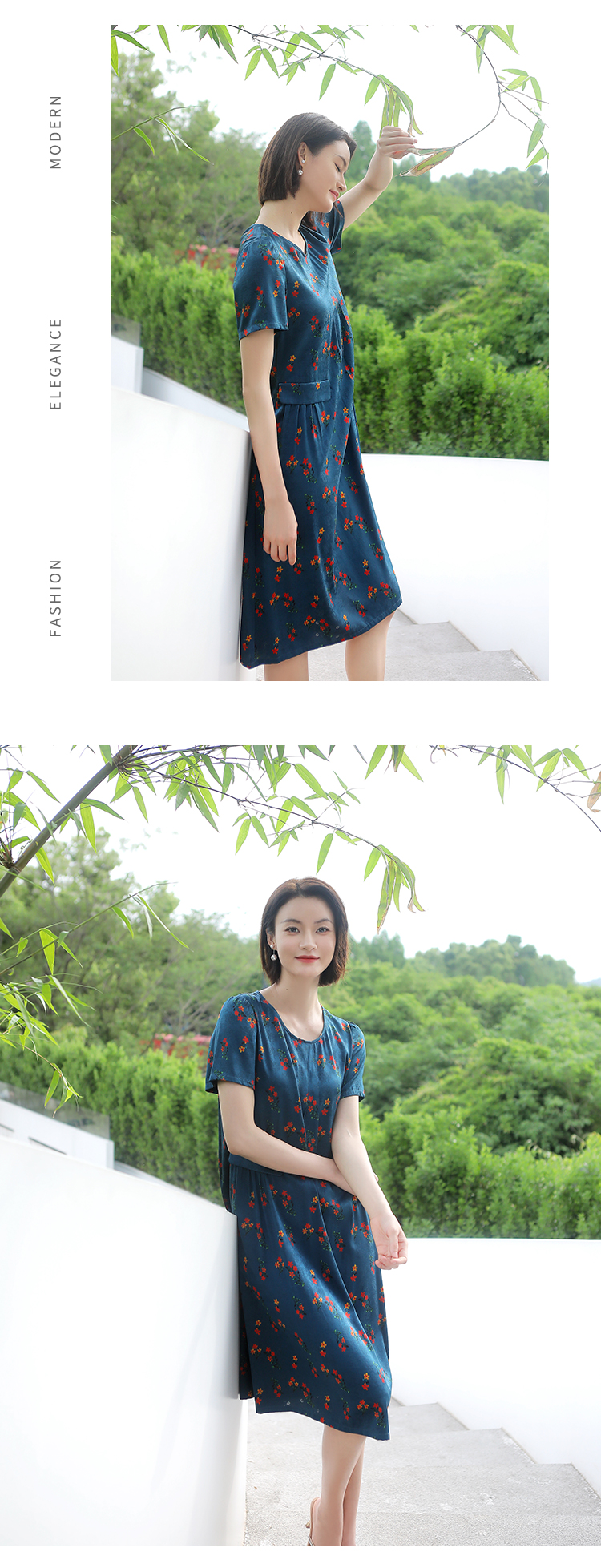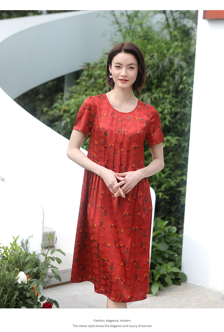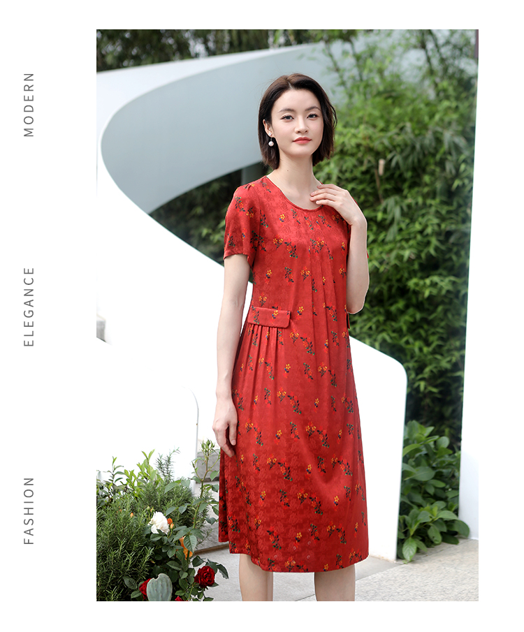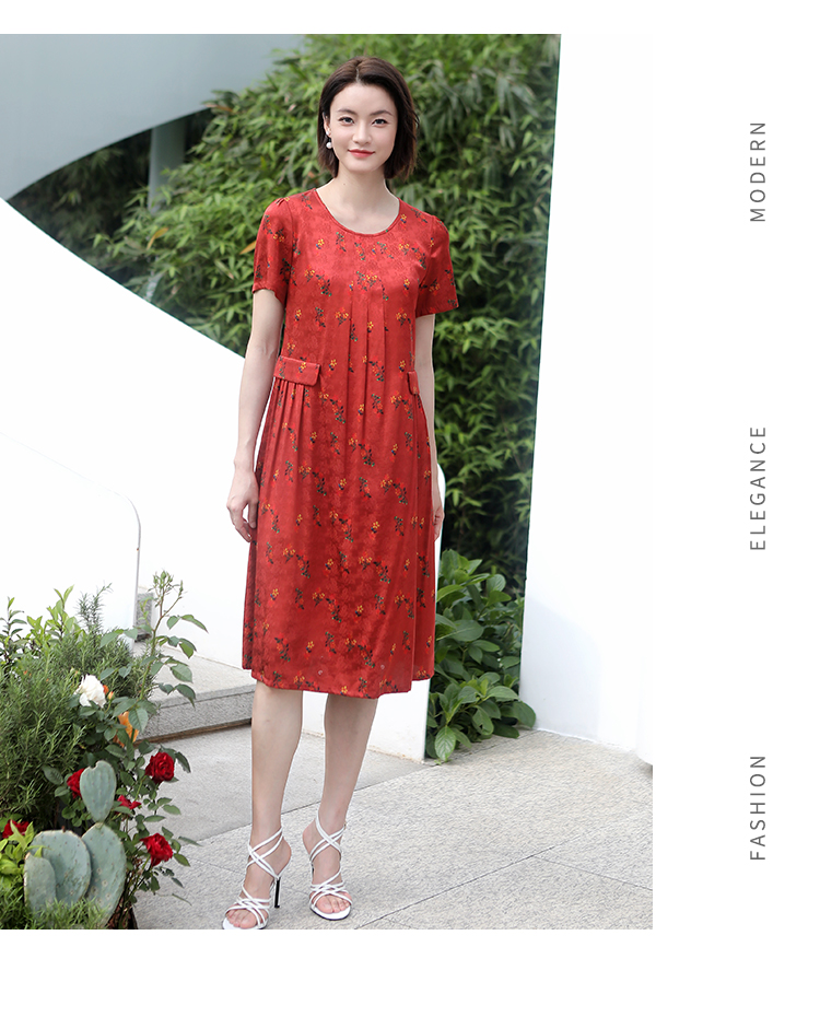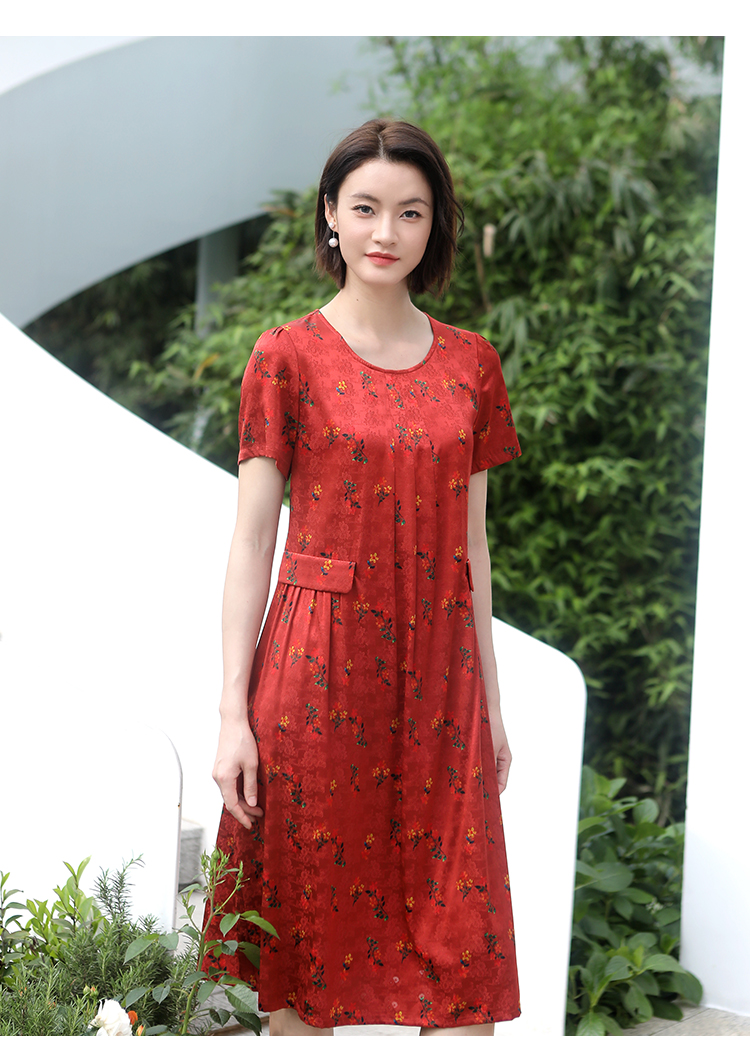 佐尔美夏季新款 气质新中式国风碎花桑蚕丝中长连衣裙女E32LS70