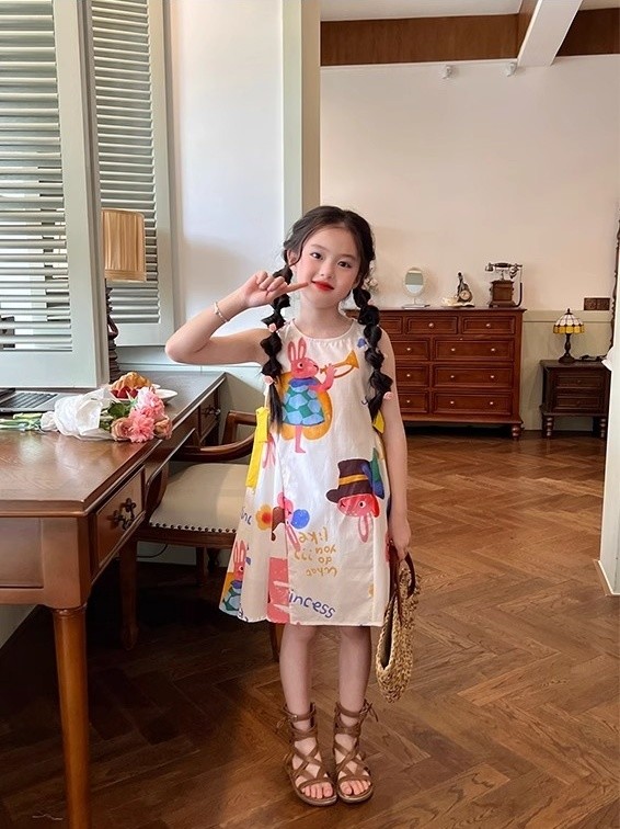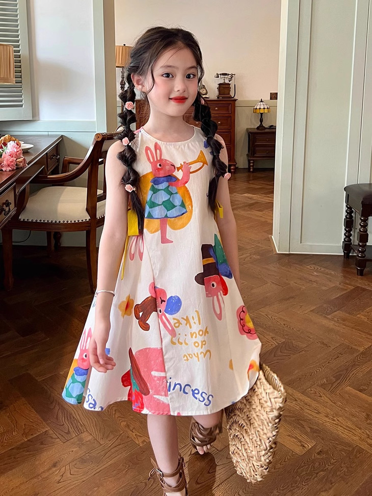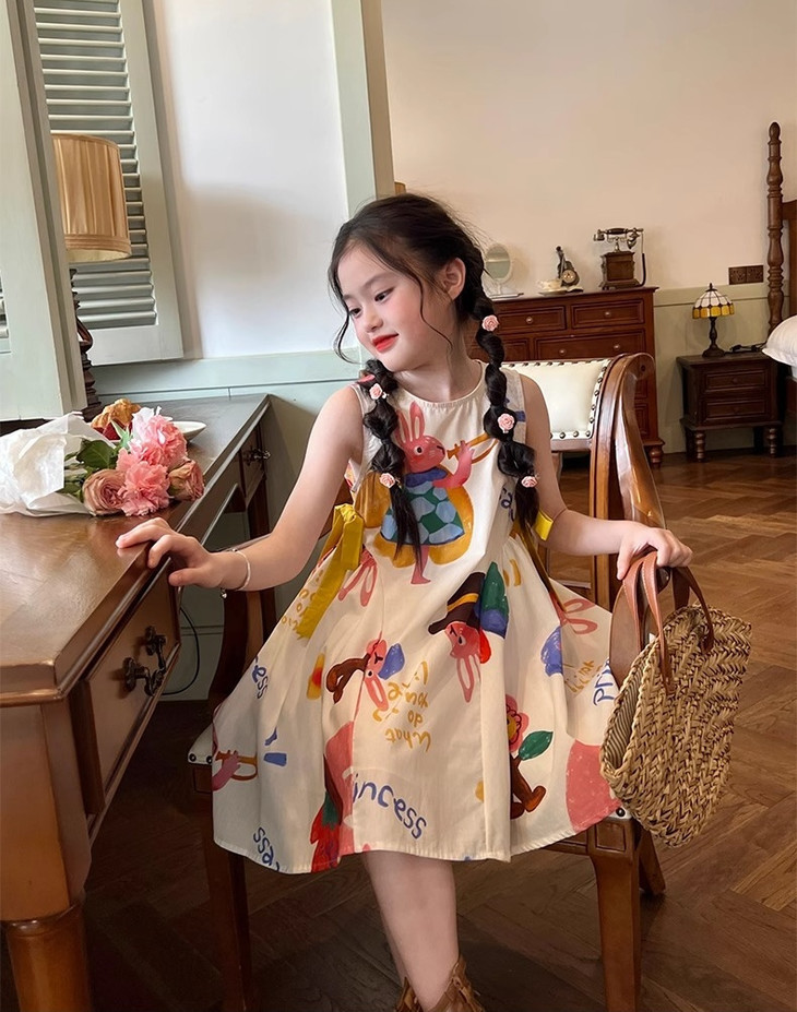 🌿夏日甜心必备穿搭❗️甜过初恋💕110-160码!【吉米故事▪️趣味涂鸦背心裙】被女儿穿去幼儿园追着要链接的小兔连衣裙🔥 超美的油画风
