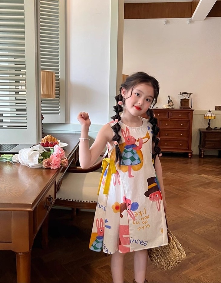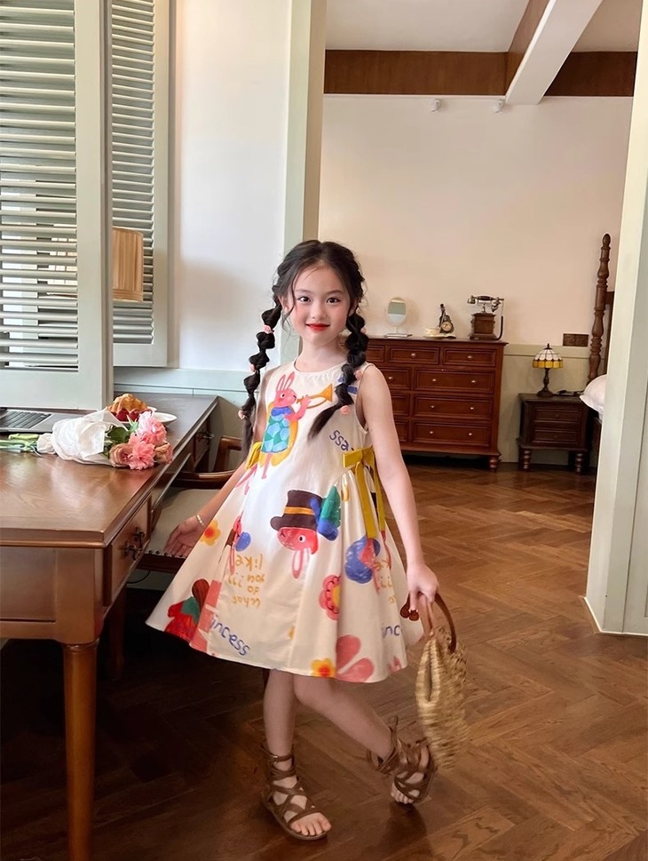特别有夏天的氛围感🍃D一眼就是很独特的配色 无袖背心裙加上收腰蝴蝶结绑带设计,会增添不少亮点呢。 无袖设计露出宝贝纤细手臂,更显清爽活泼; 收腰蝴蝶结绑带,能勾勒出可爱腰线,凸显甜美俏皮感, 还可根据穿着舒适度调整松紧,兼具美观与实用, 让宝贝穿上秒变童话里的灵动小公主~