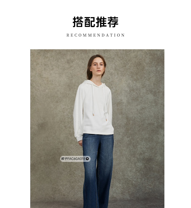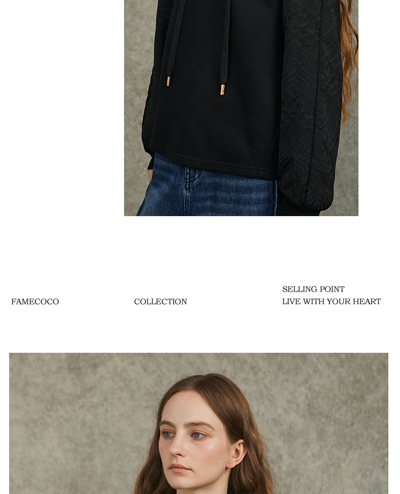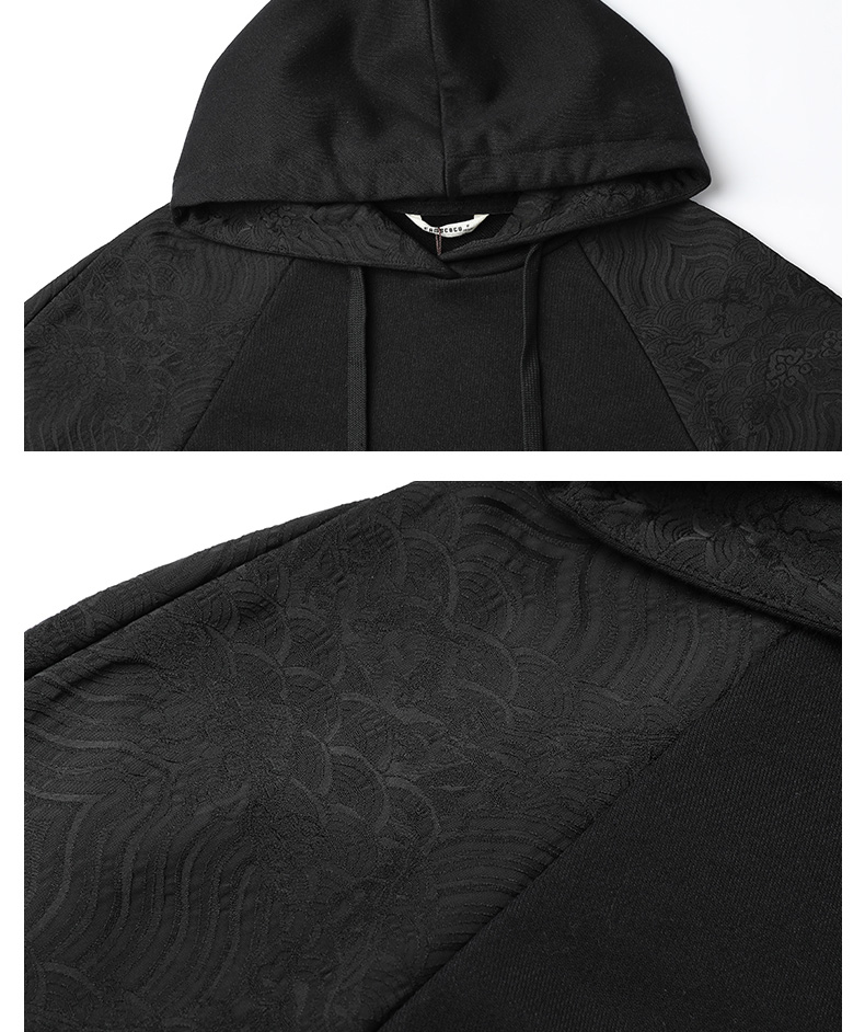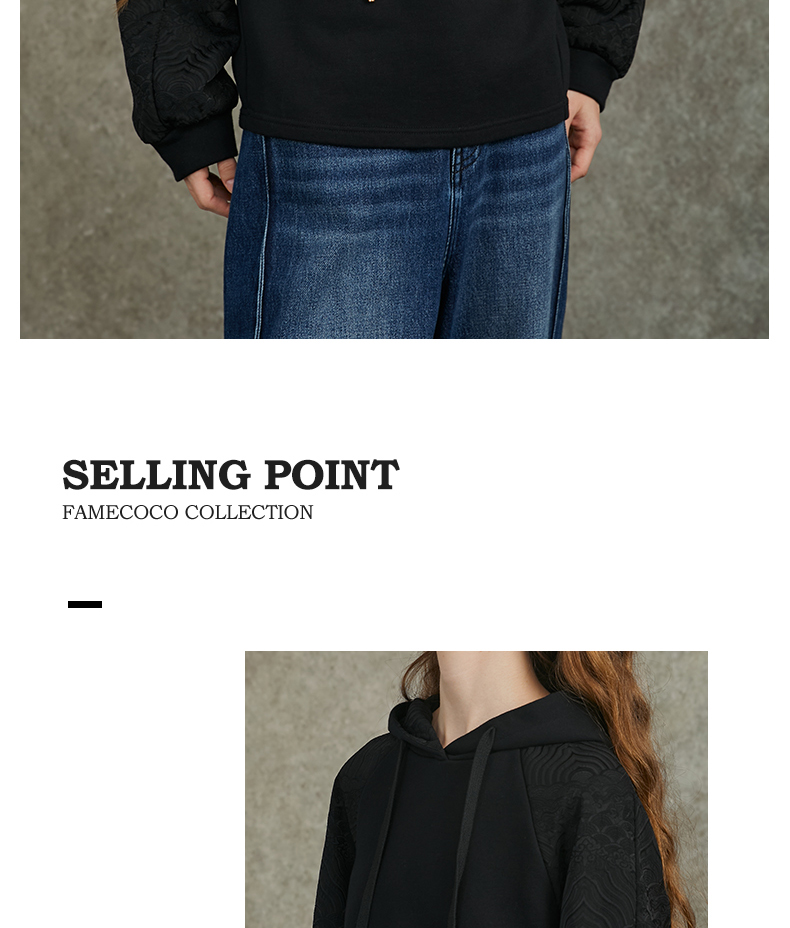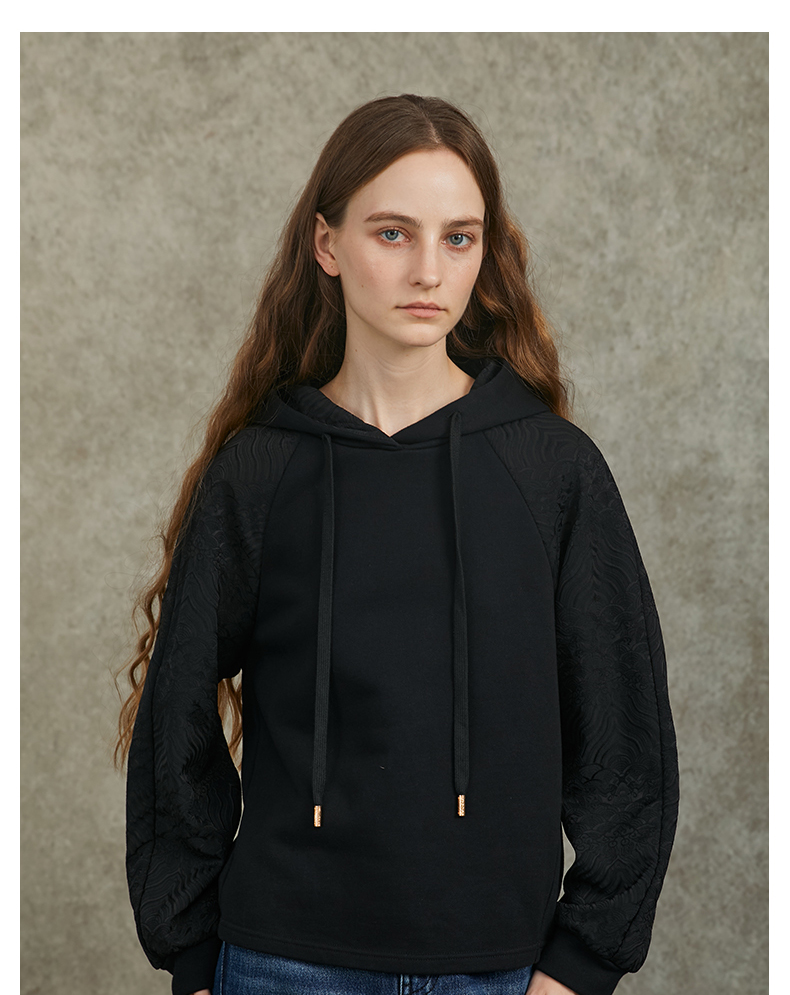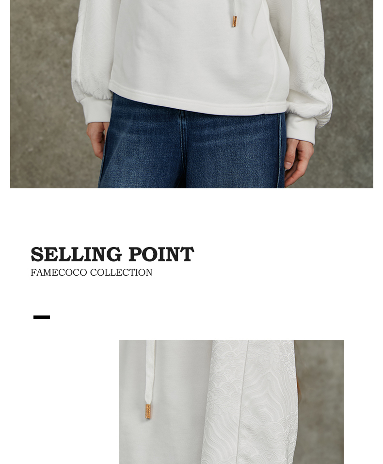 Famecoco范可儿休闲连帽卫衣时尚新中式提花拼接上衣FAC6BL006