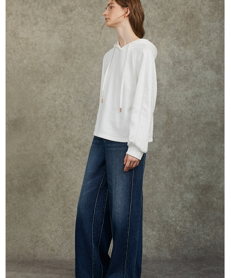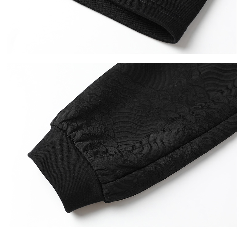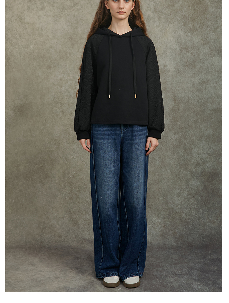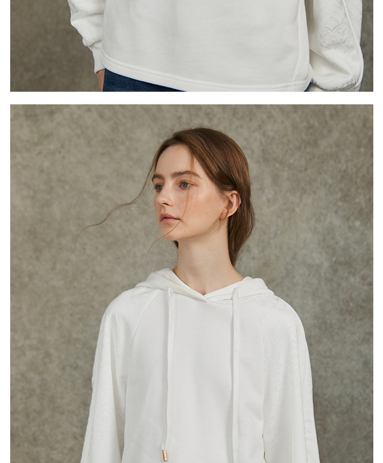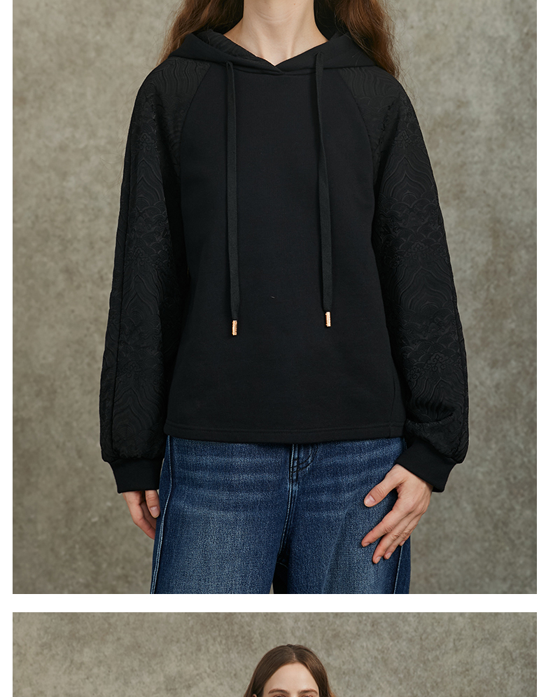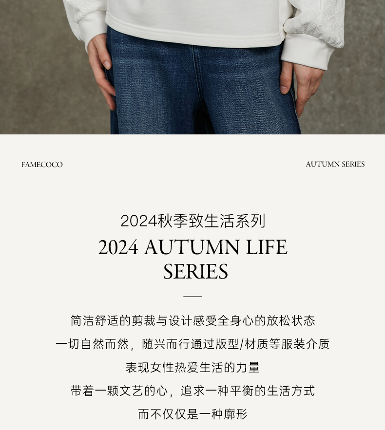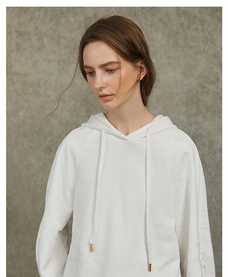 Famecoco范可儿休闲连帽卫衣时尚新中式提花拼接上衣FAC6BL006