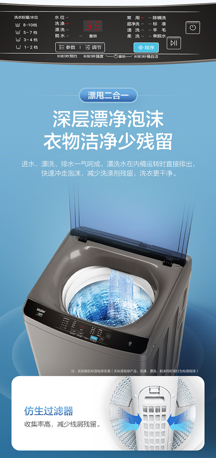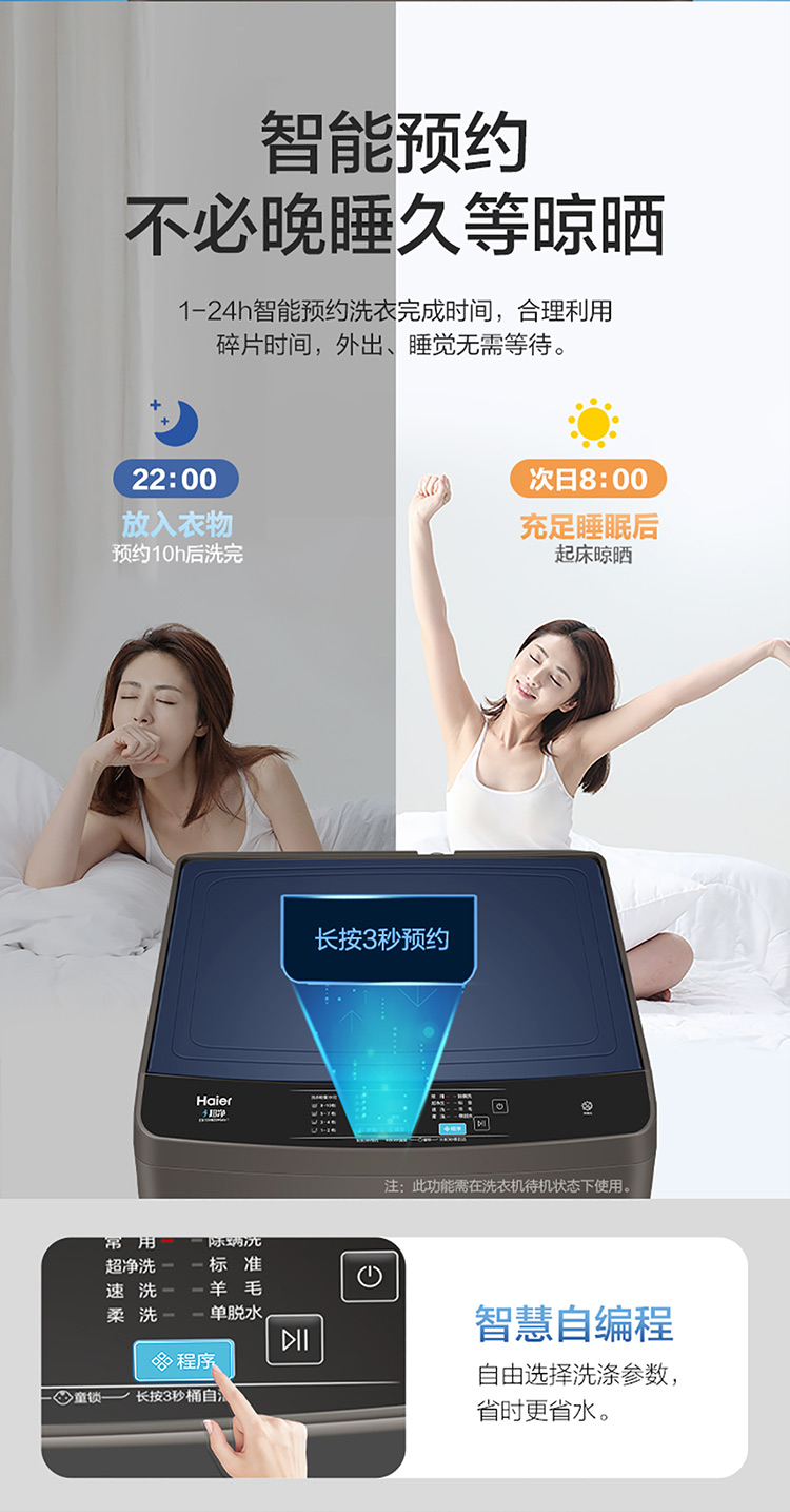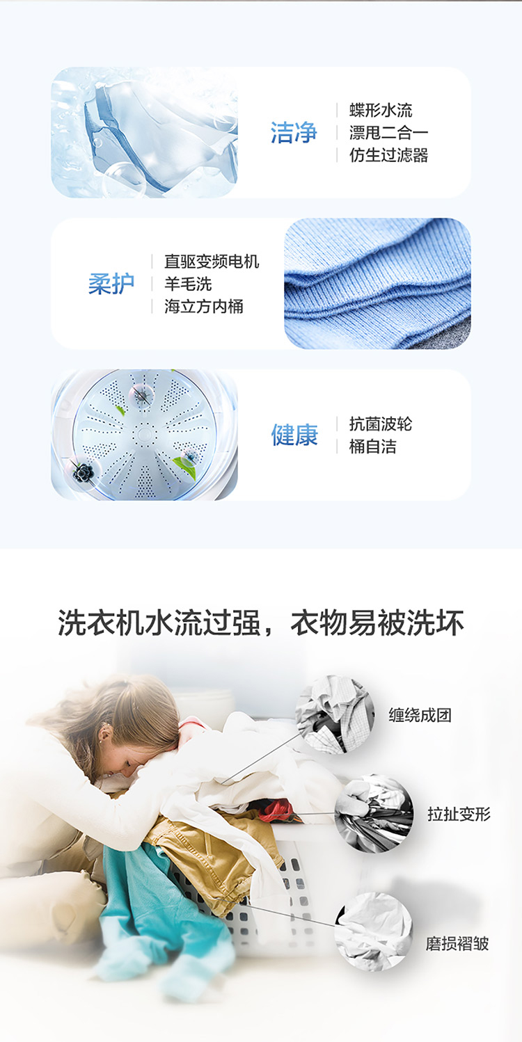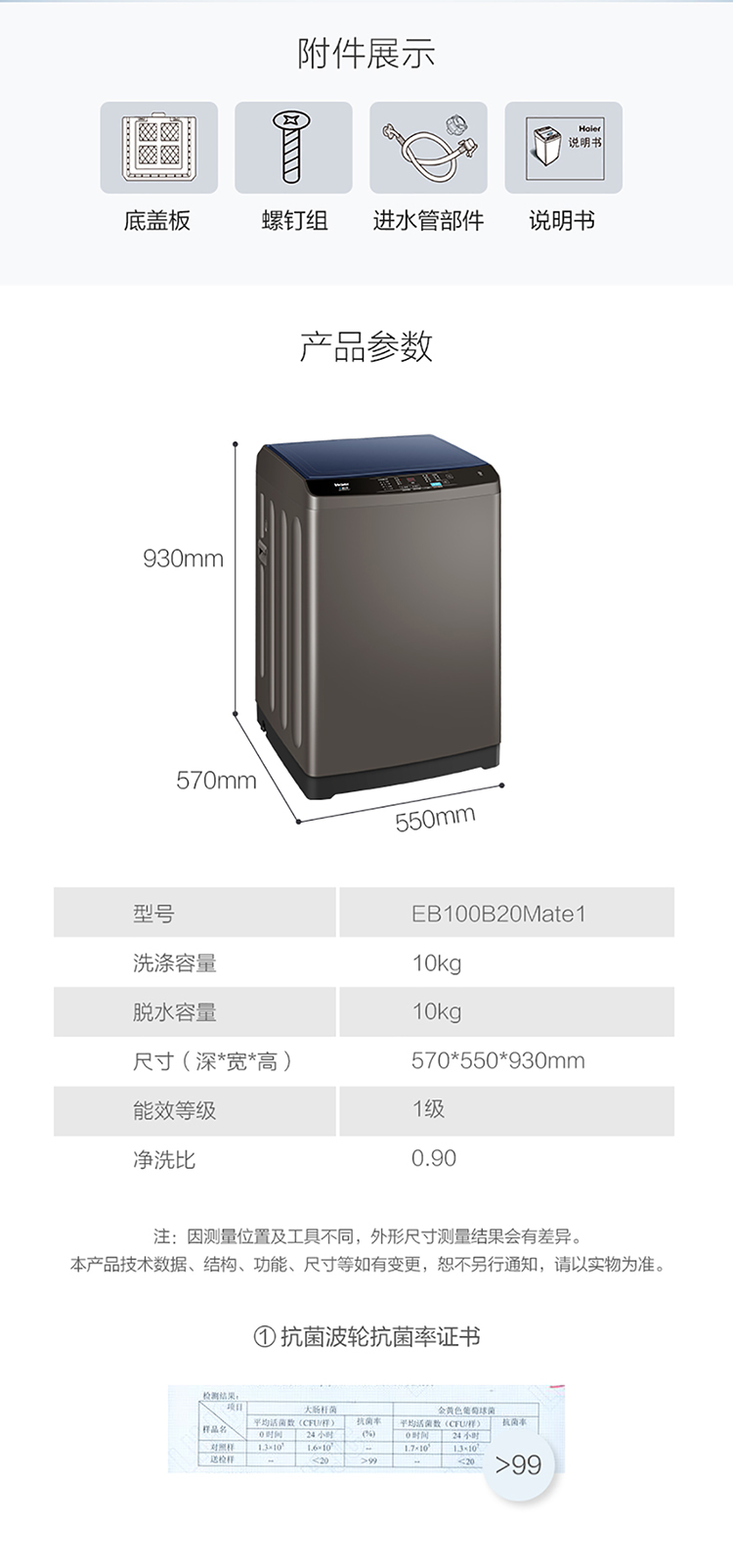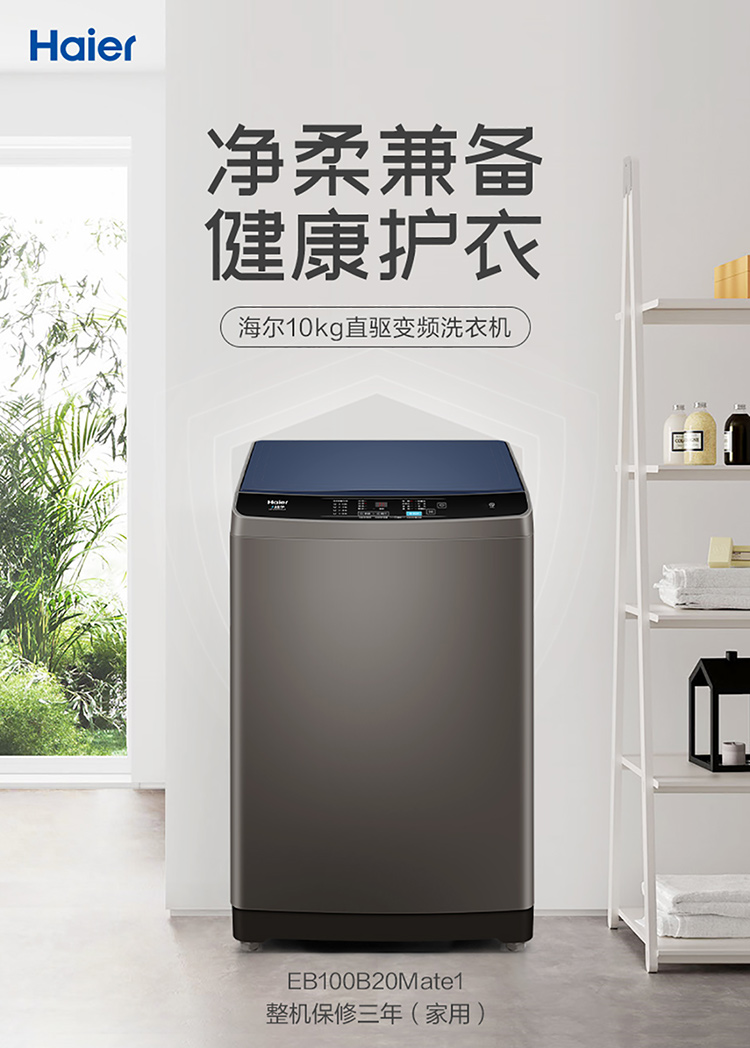 海尔(Haier) 10KG 直驱变频 波轮洗衣机 全自动 蝶型水流 仿生过滤器 租房神器EB100B20Mate1