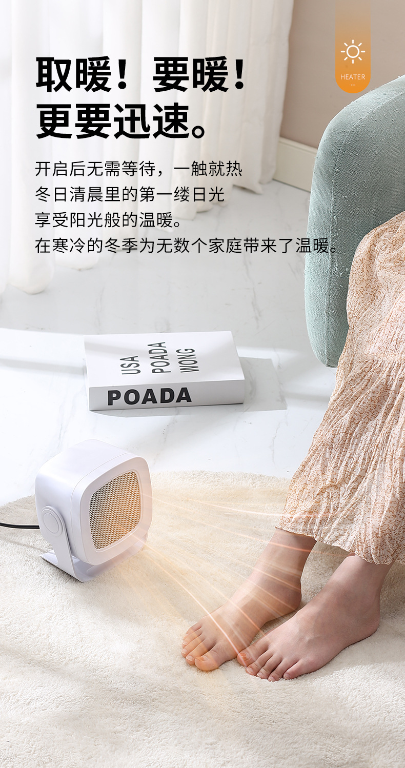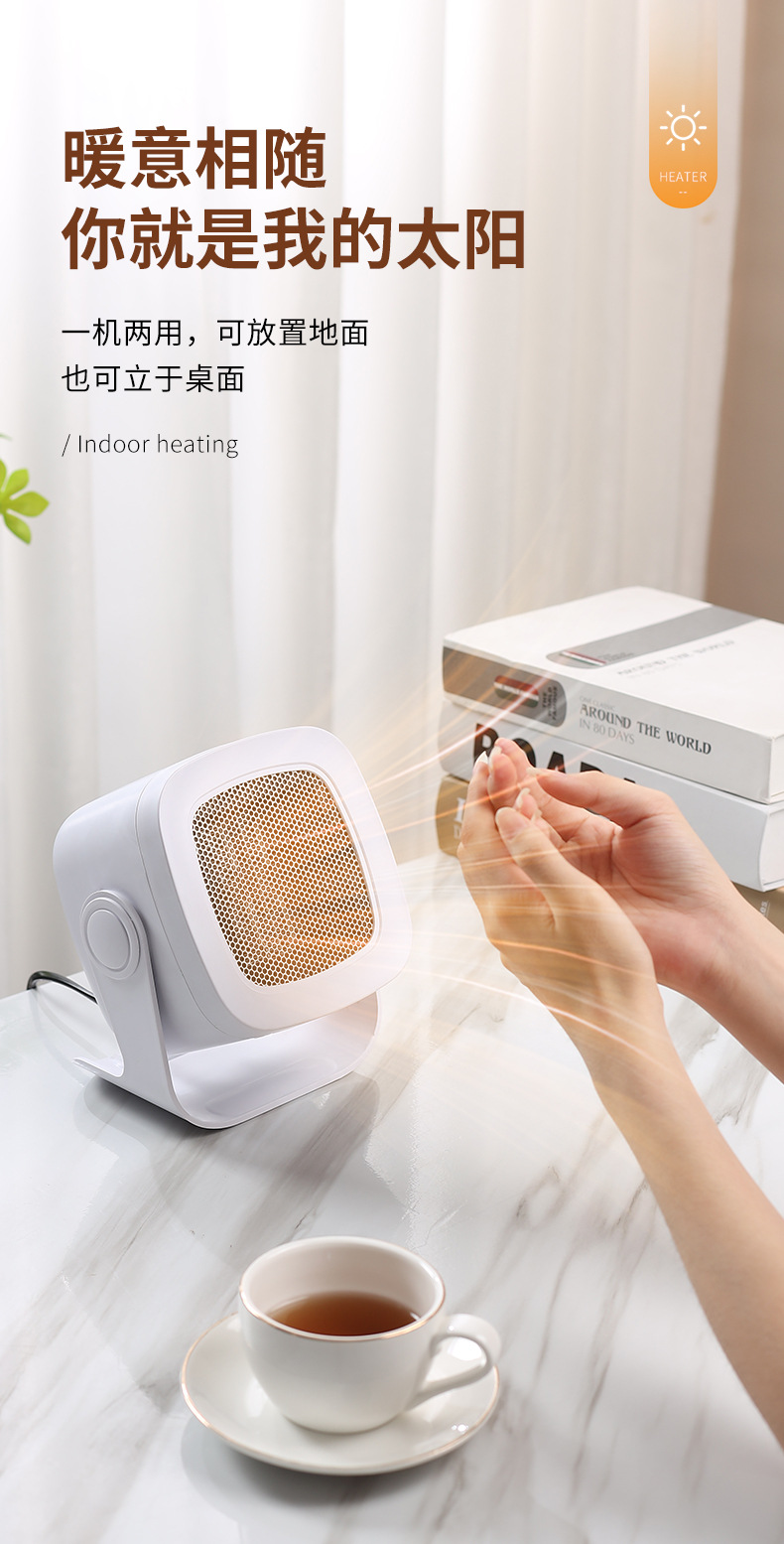 【2台立减20】桌面便携式暖风机2档调温PTC发热体家用浴室取暖器台式速热小型电暖器