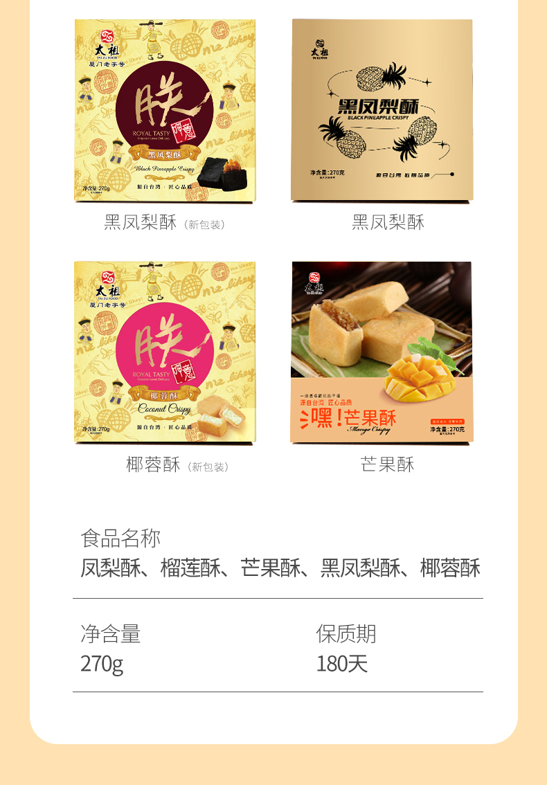 太祖凤梨酥芒果酥榴莲酥黑凤梨酥台湾风味厦门特产工厂直销批发