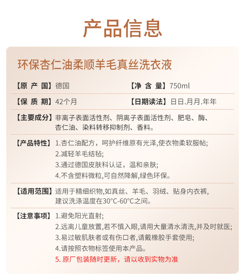750ml*1瓶/2瓶Frosch杏仁油羊毛真丝洗衣液【伊藤优选302209】