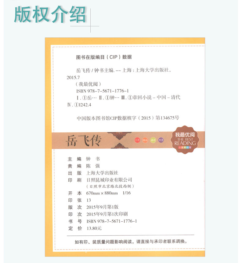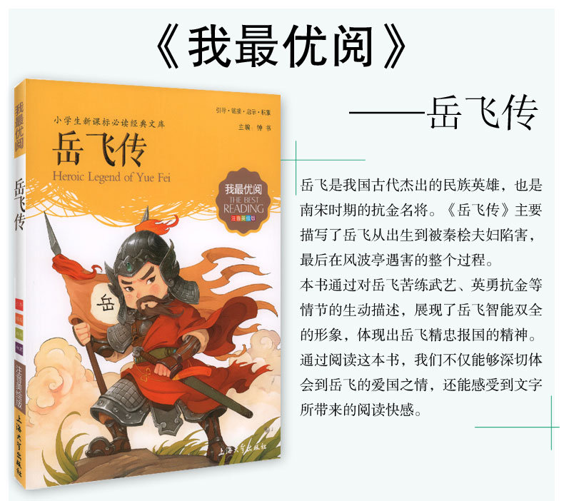 1-3年级适用 注音美绘版-岳飞传 钟书正版少儿读物我优阅系列拼音彩图版岳飞传 儿童文学课外读物小学生作文阅读写作能力
