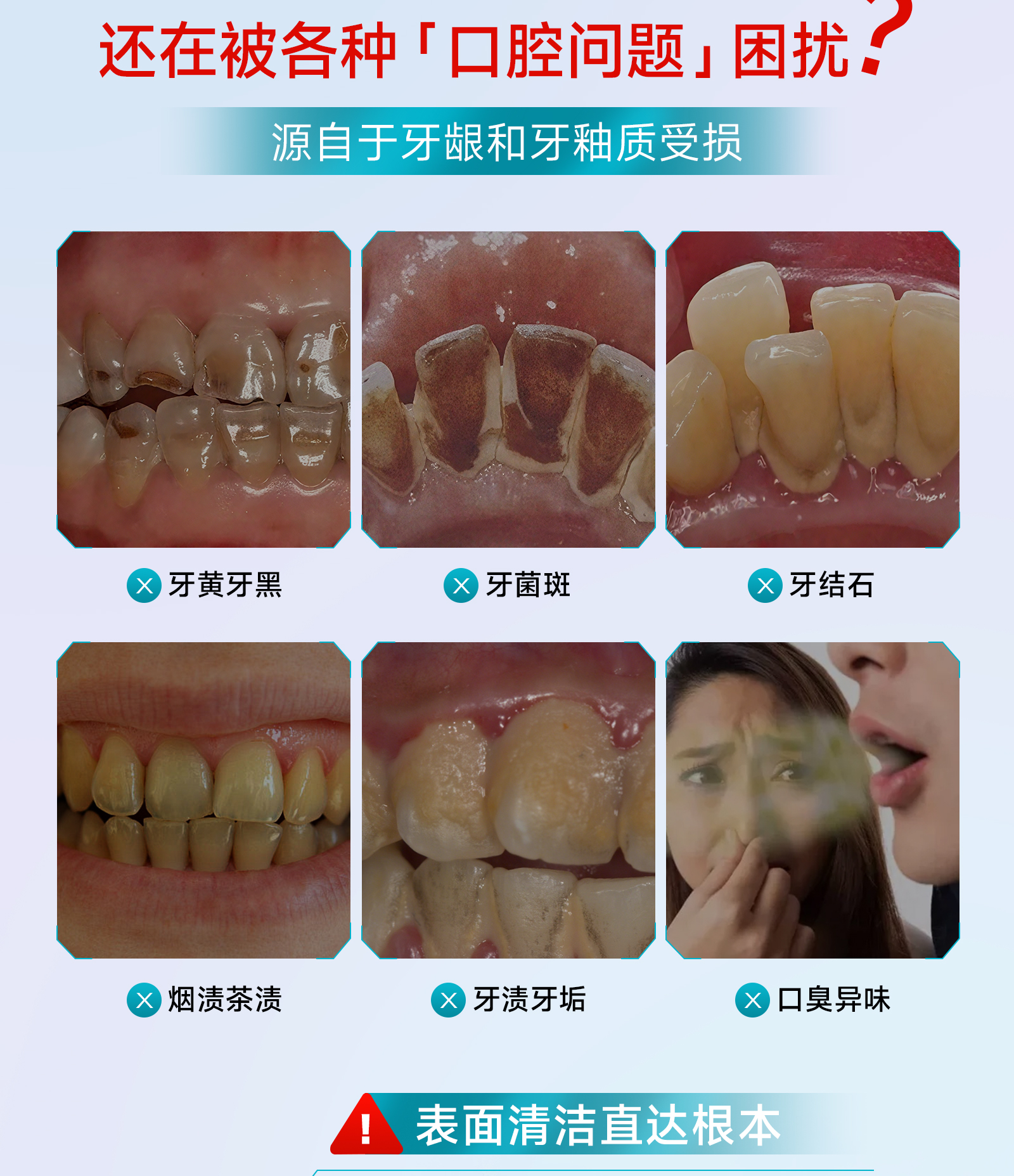 【使用人群】:日常口腔清洁,空气清晰,牙黄牙黑,牙结石都可使用,对成分过敏人群请勿使用。