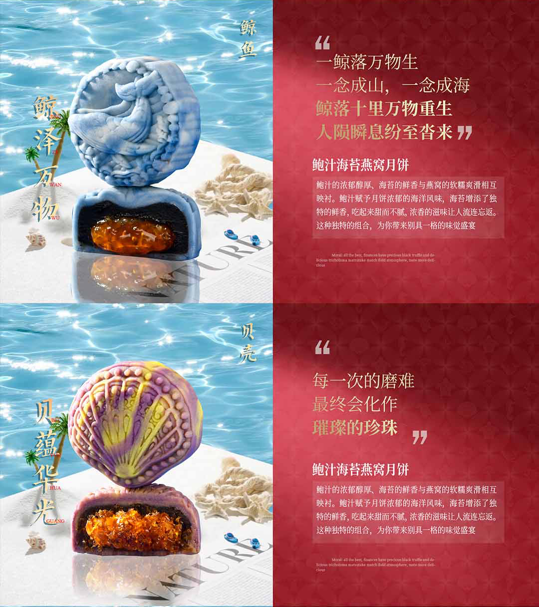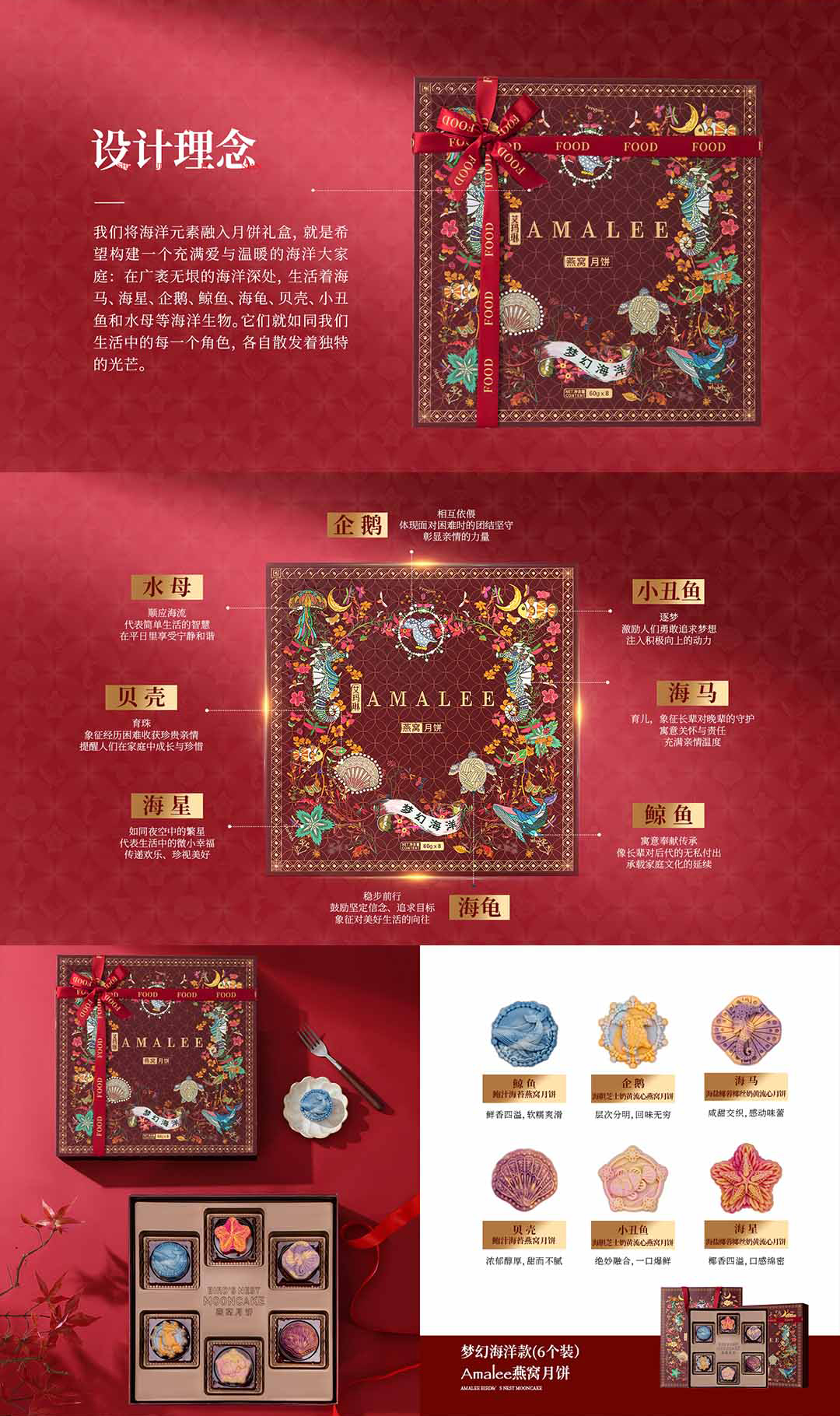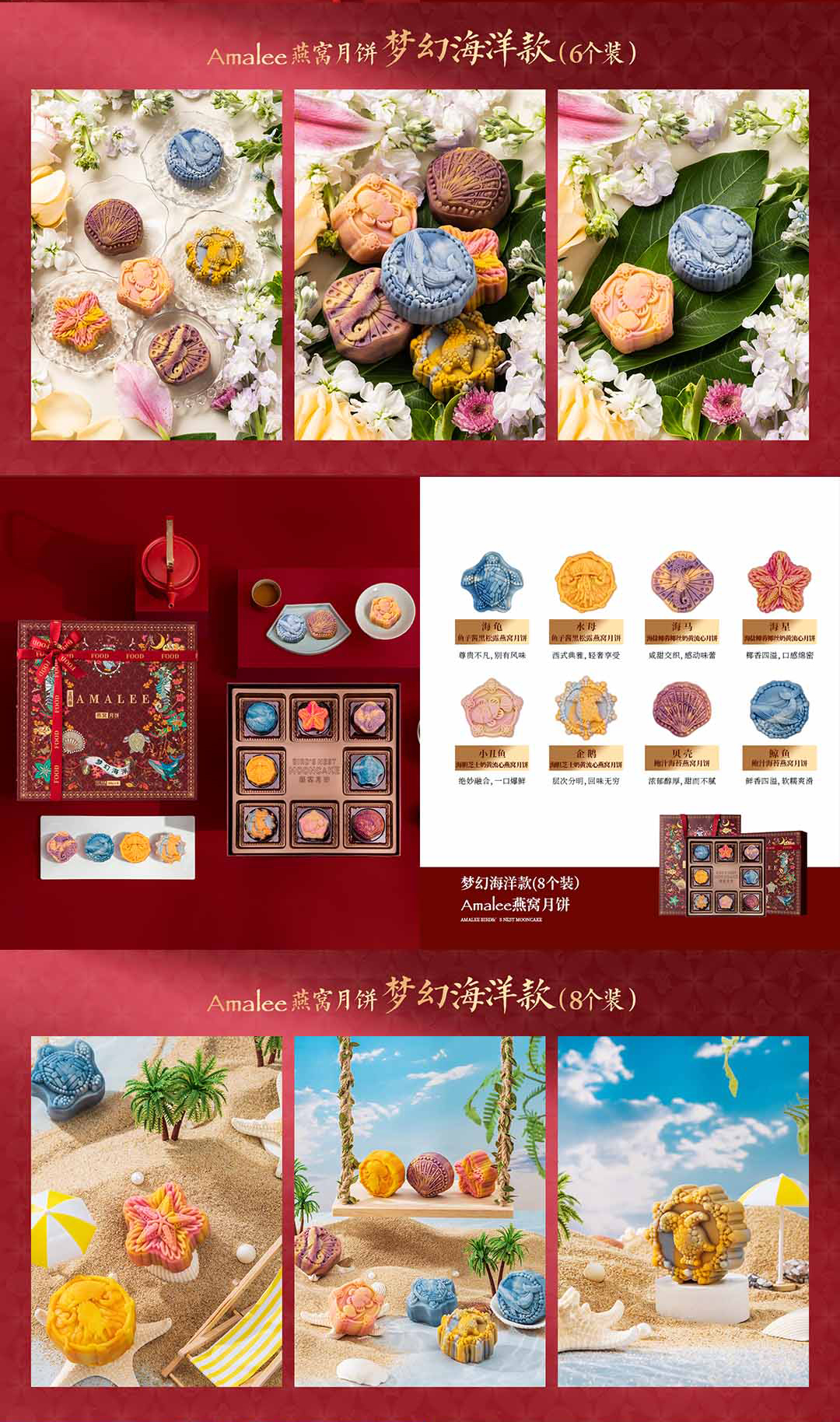 【汇总SKU 顺丰包邮】Amalee梦幻海洋燕窝月饼礼盒8粒装中秋送礼网红月饼流心月饼