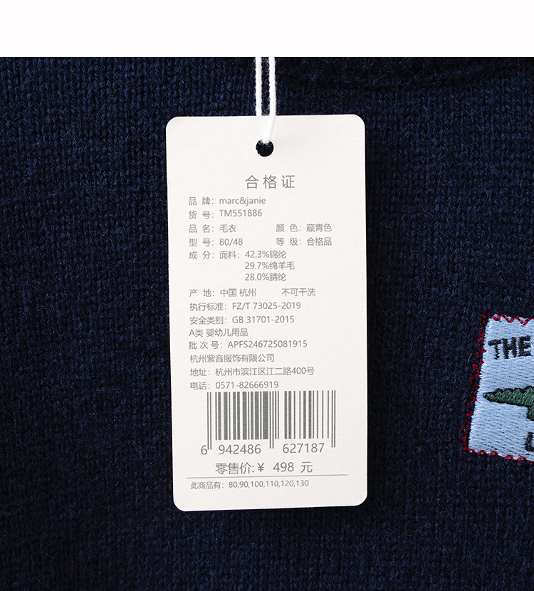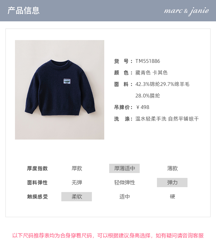 马克珍妮男童轻盈温暖绵羊毛针织衫2025年秋冬新款551886