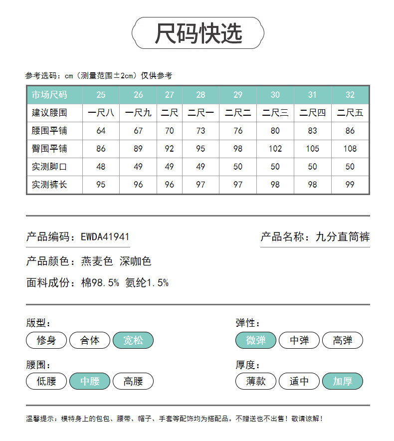 【拉绒-宽直筒牛仔】逸阳秋冬薄绒彩棉休闲宽松显瘦九分裤子1941