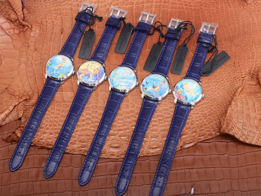 雅典有一款让人过目不忘的腕表,是一款限量腕表,可作为收藏佳品.运用十枚春宫图为基础,用现代女孩与美人鱼、鲨鱼三者的故事展开主题.