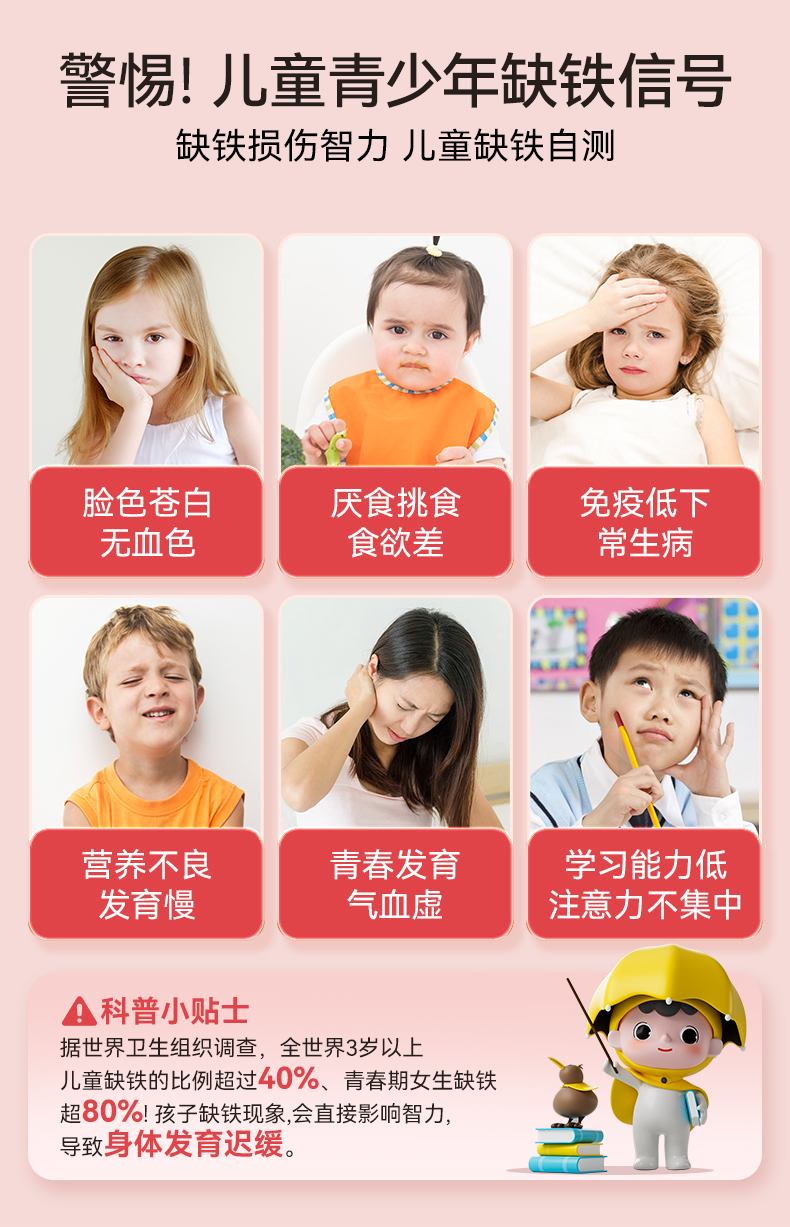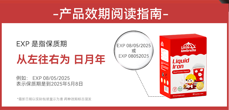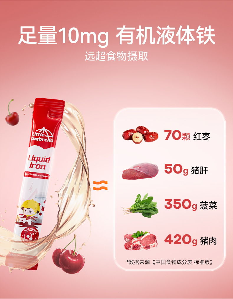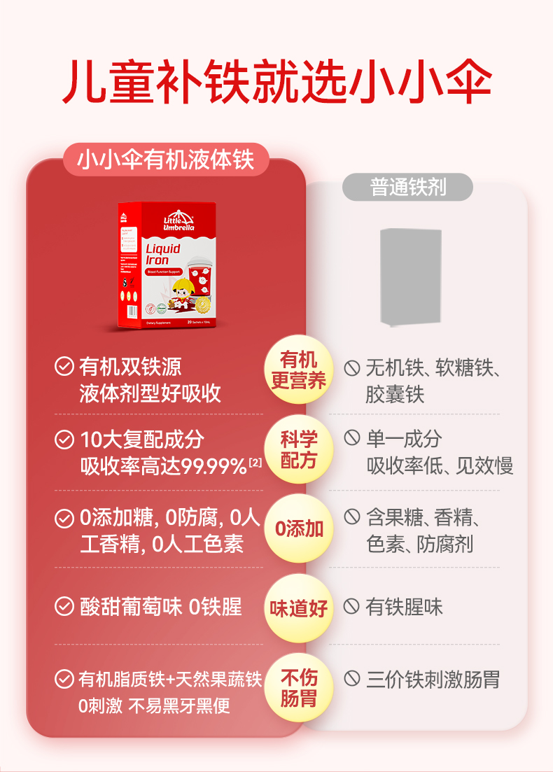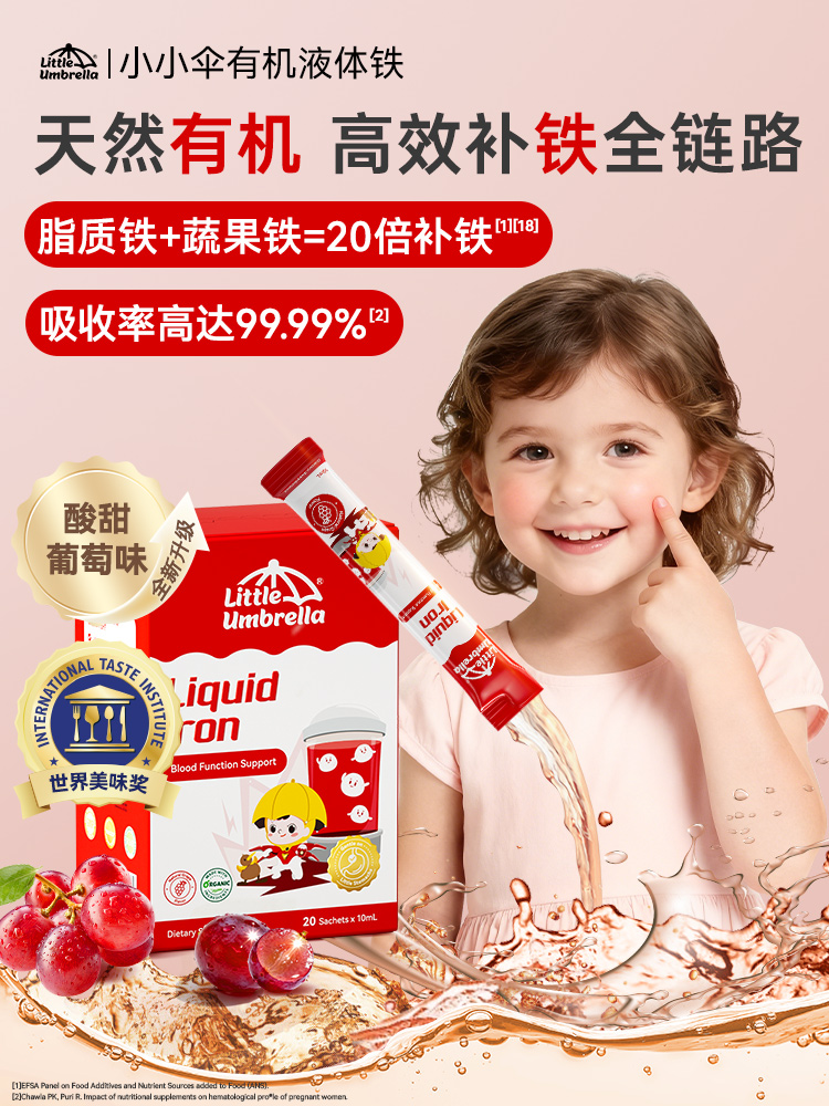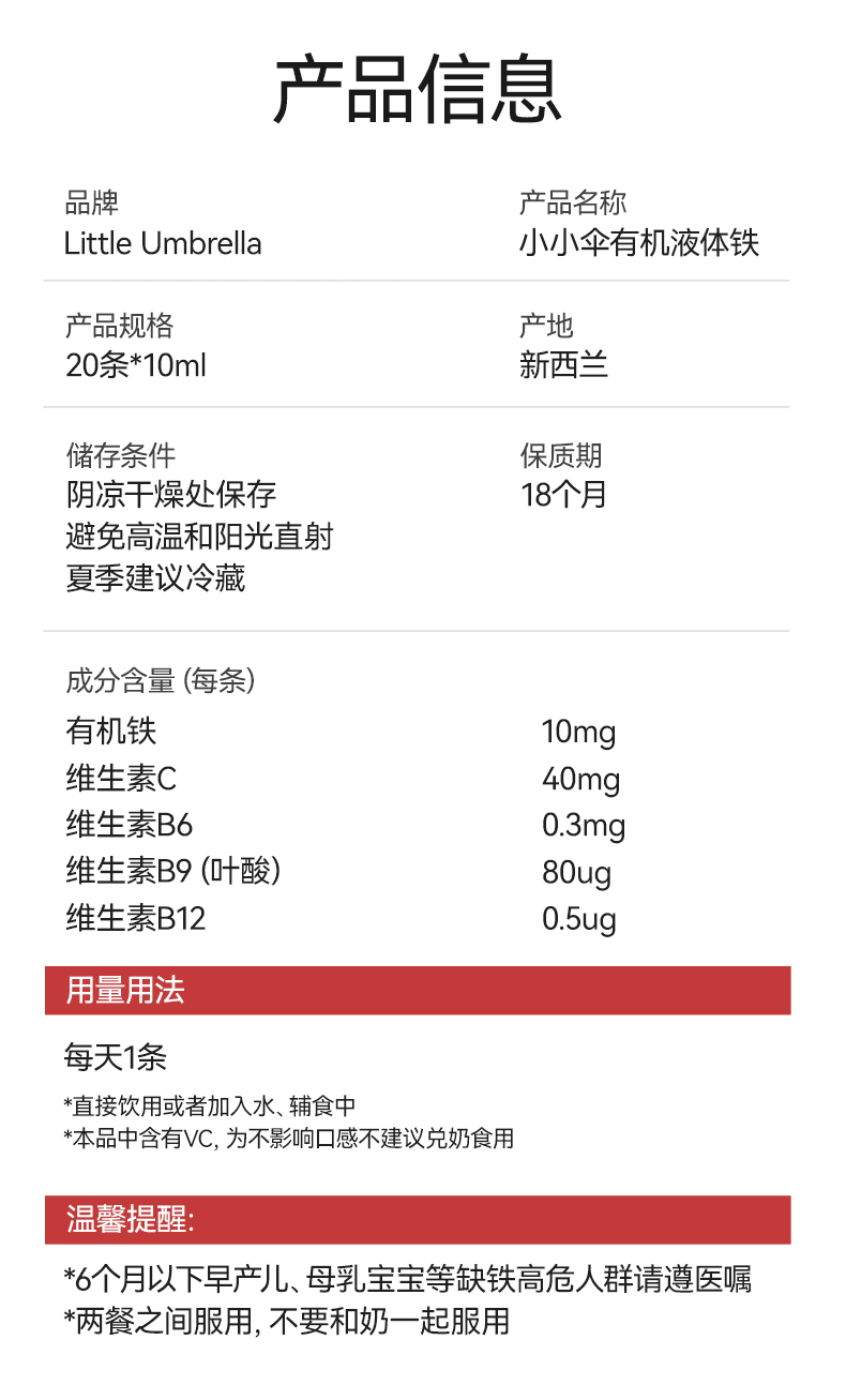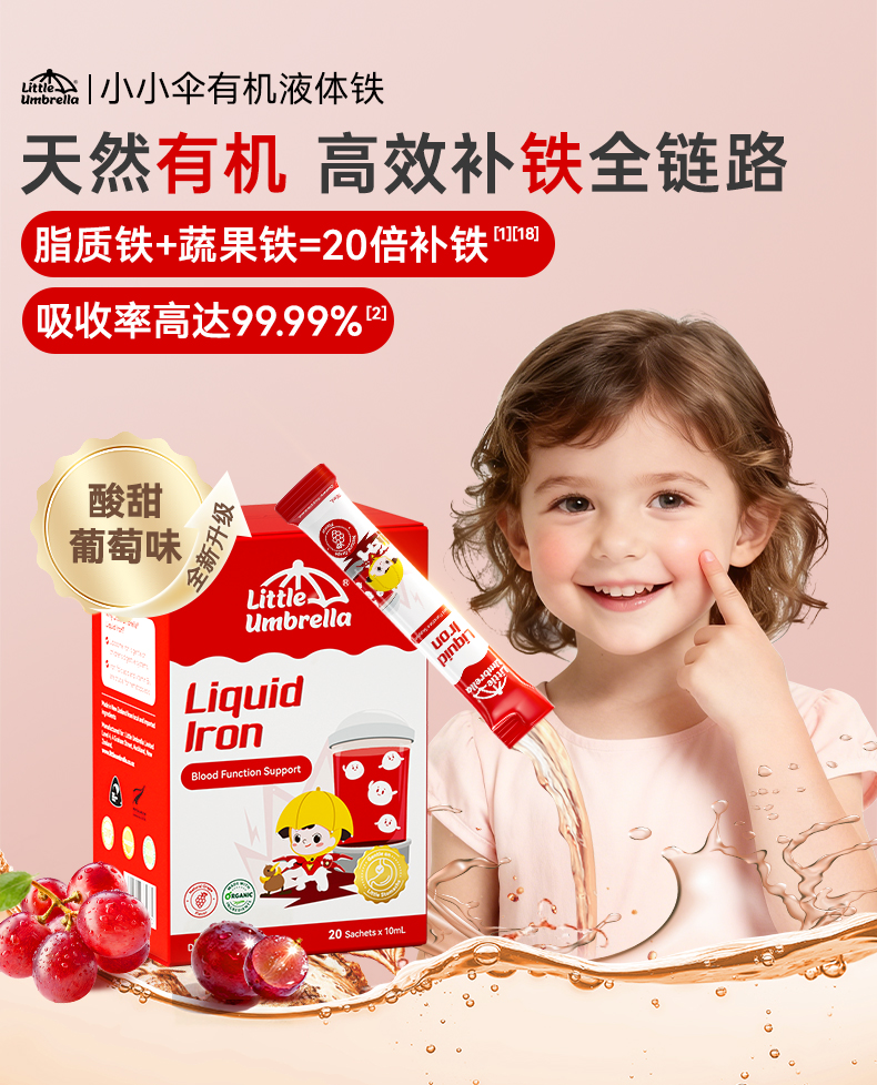 效期至27年6月 小小伞有机pro液体铁20条/盒