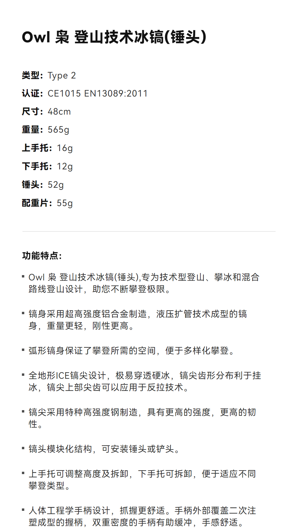 KAILAS凯乐石 Owl 枭 登山技术冰镐(锤头) EI201B
