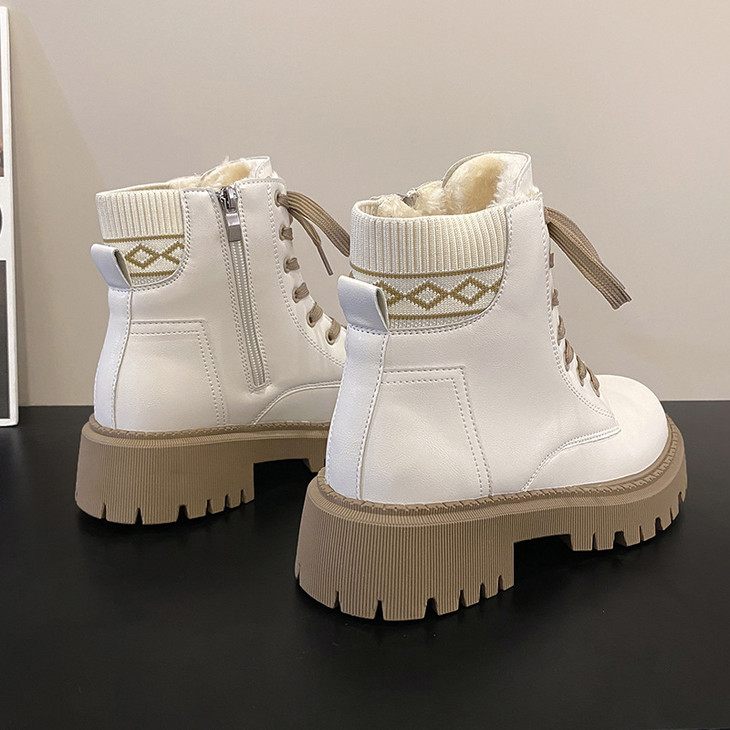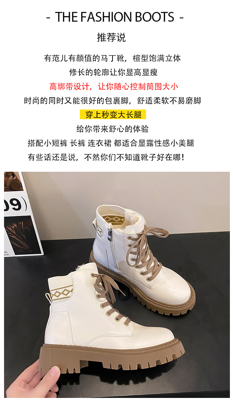 英伦风马丁靴女秋冬新款厚底系带圆头大码简约时尚加绒保暖短靴