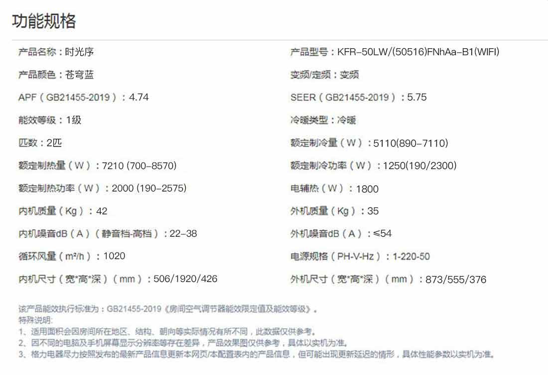 格力·时光序新国标变频冷暖一级节能2匹柜式空调KFR-50LW/(50516)FNhAa-B1(WIFI)(苍宆蓝)