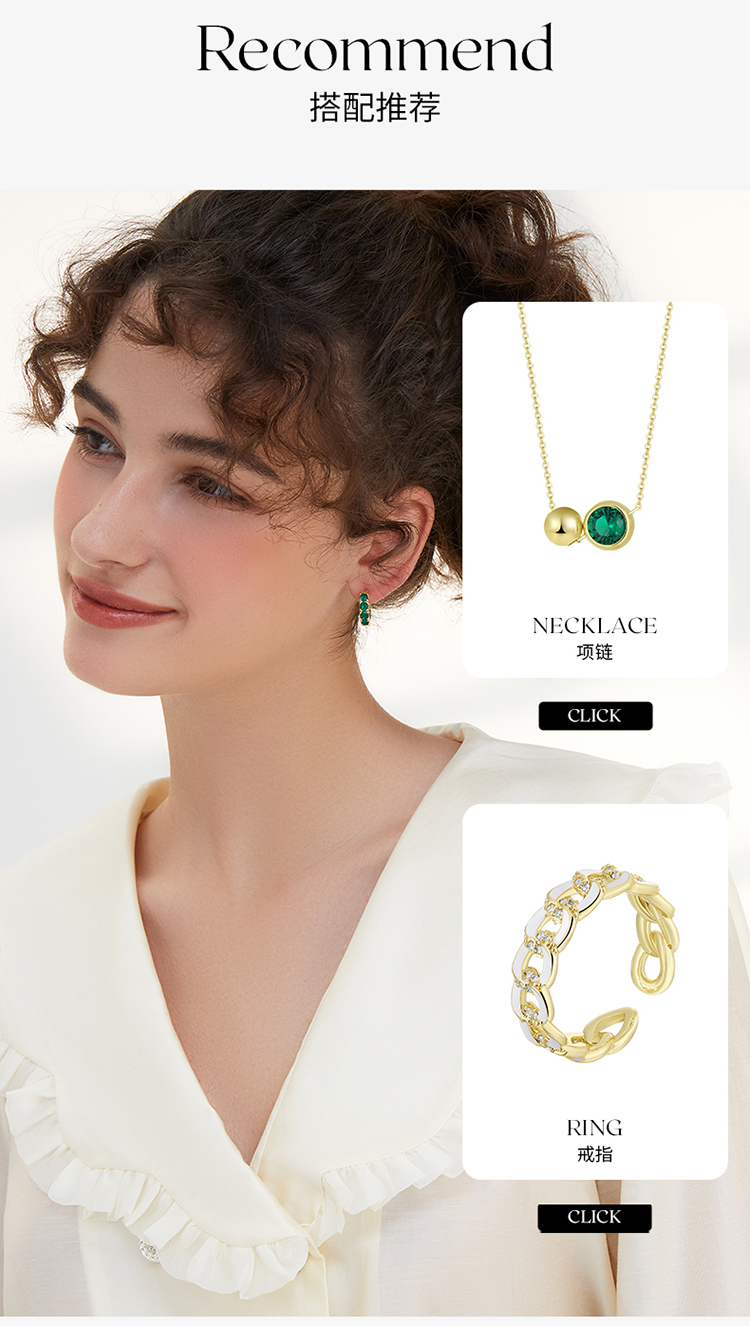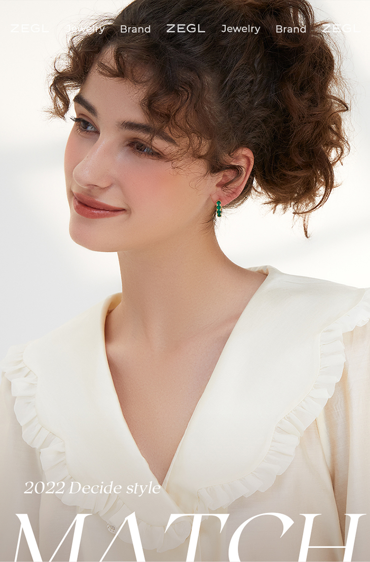 ZEGL祖母绿C型耳环女小众设计感高级耳钉2022年新款潮耳扣耳饰品