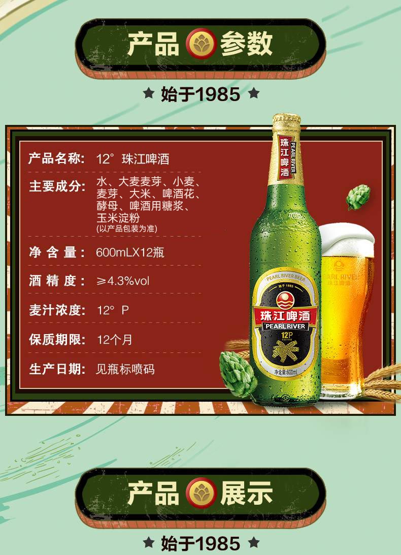 【整箱】珠江啤酒12度 经典老珠江啤酒 600ml*12瓶