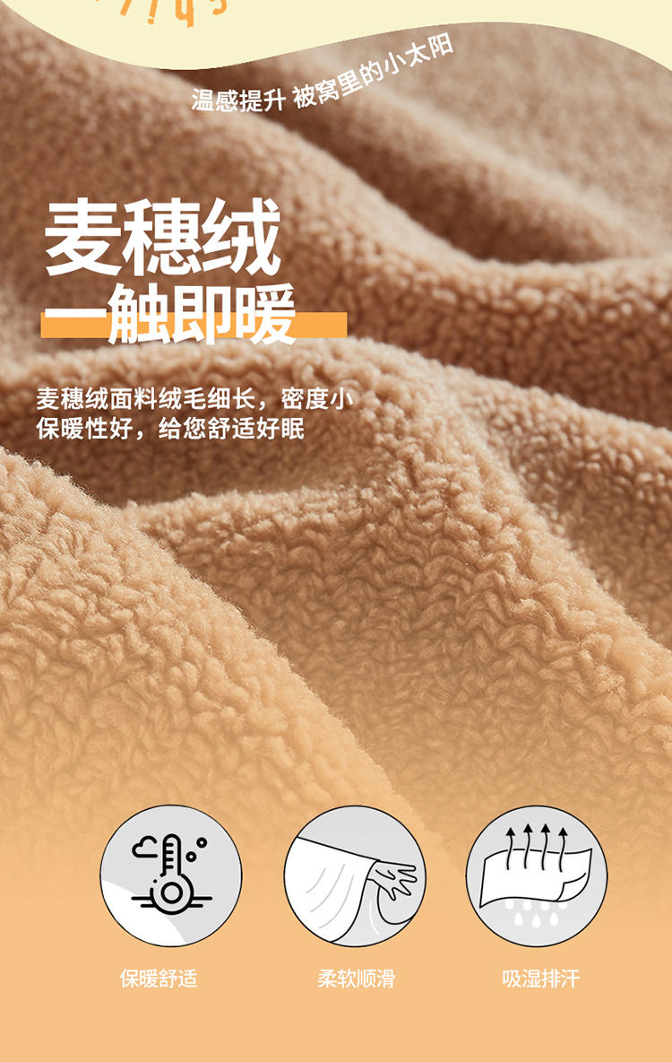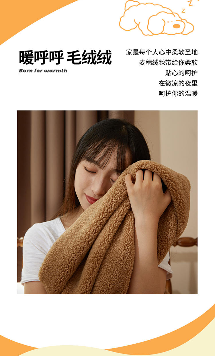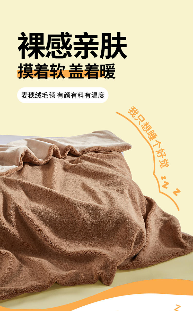 园园亲选南通家纺顶柔麦穗绒毯!柔软保暖吸湿透气被窝小太阳