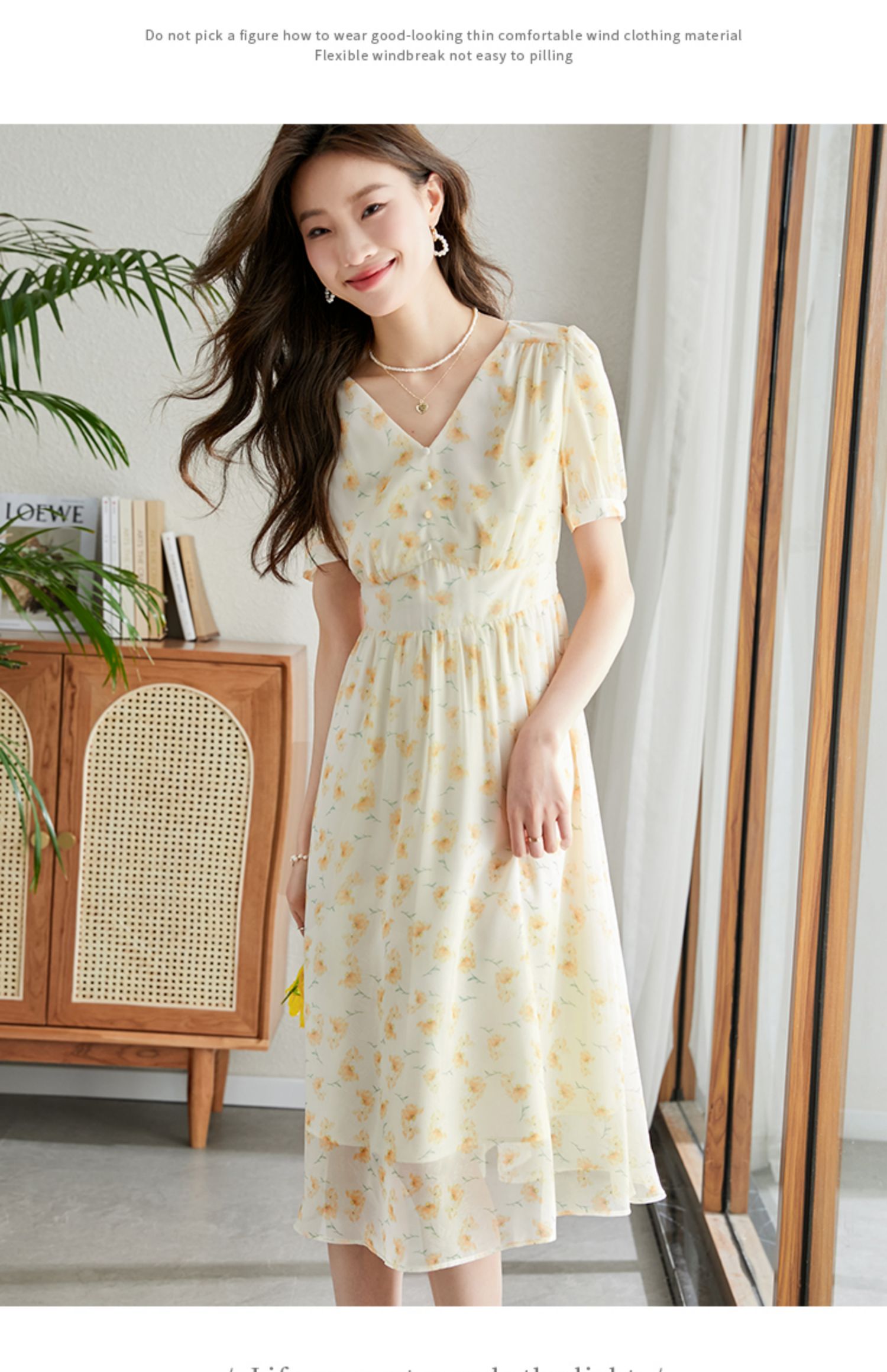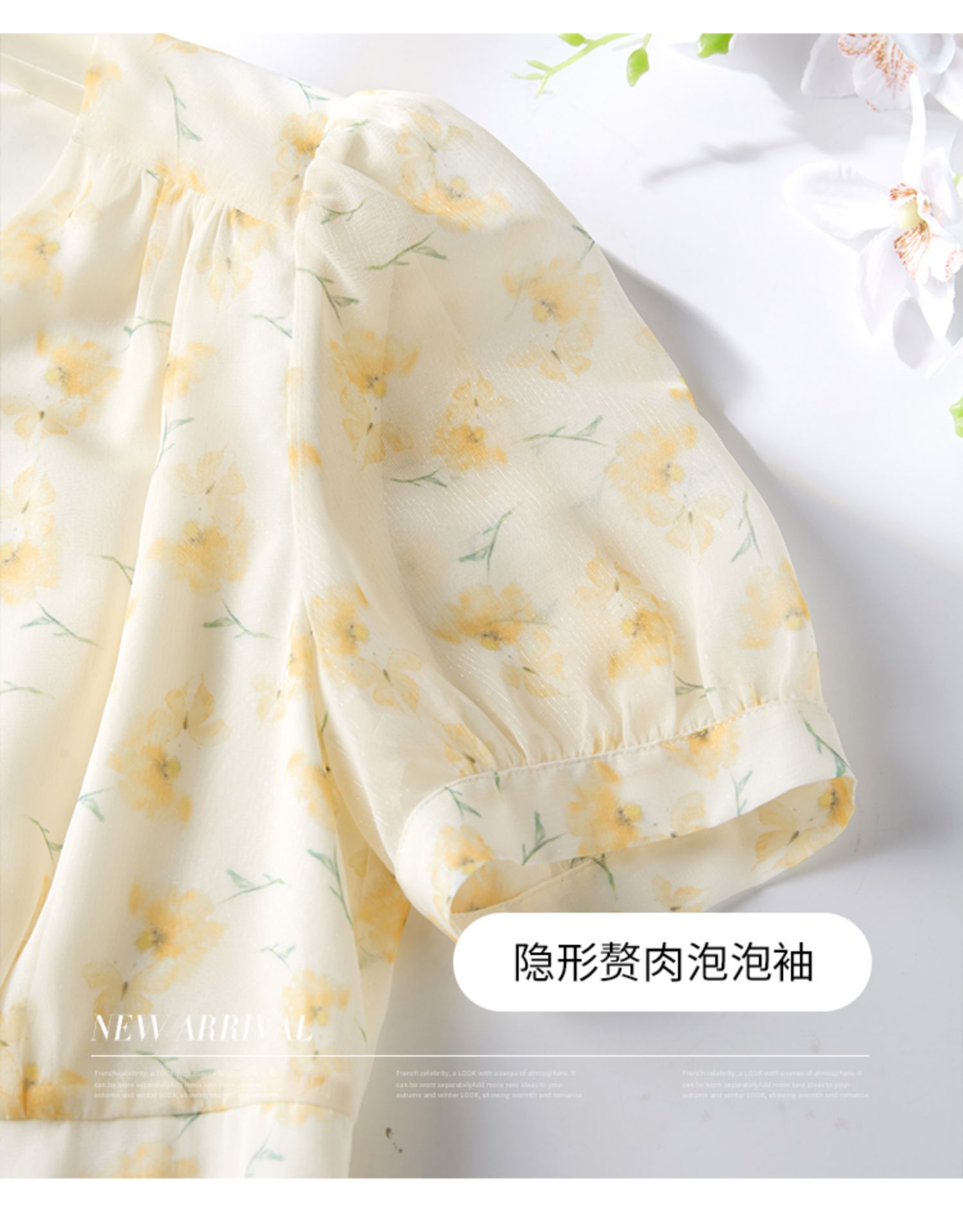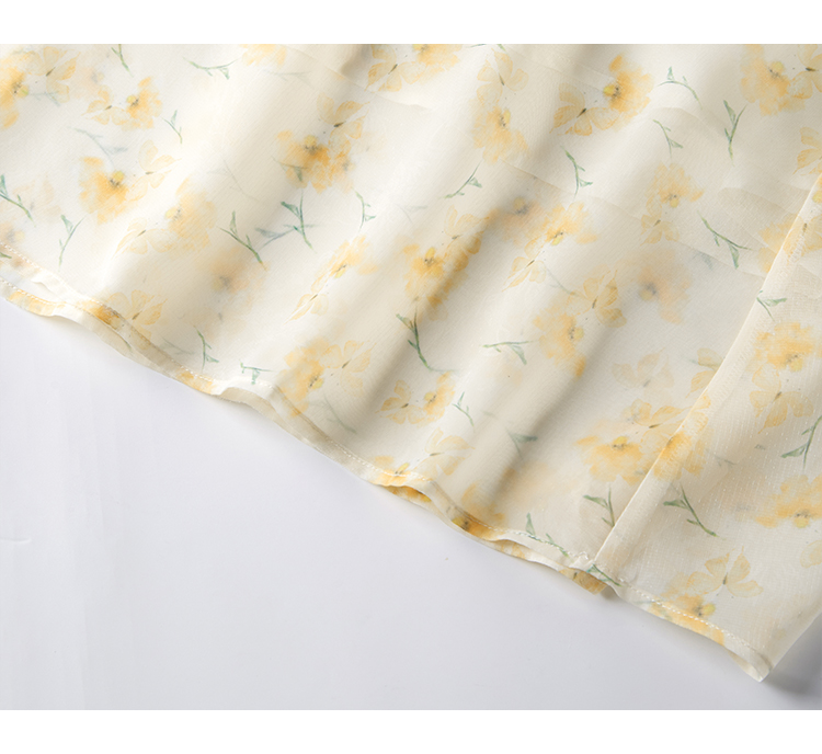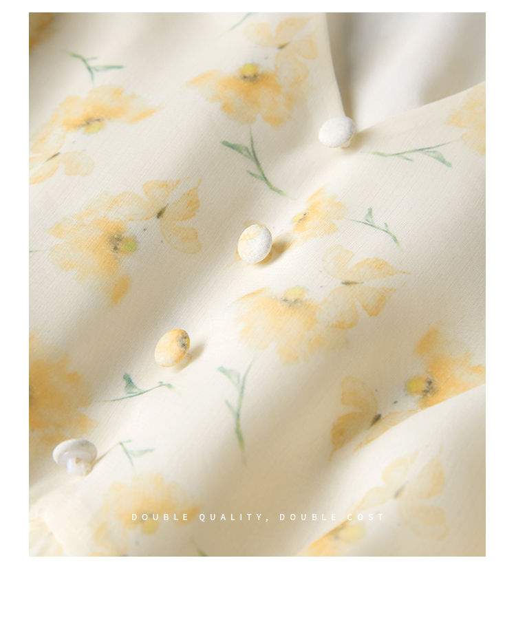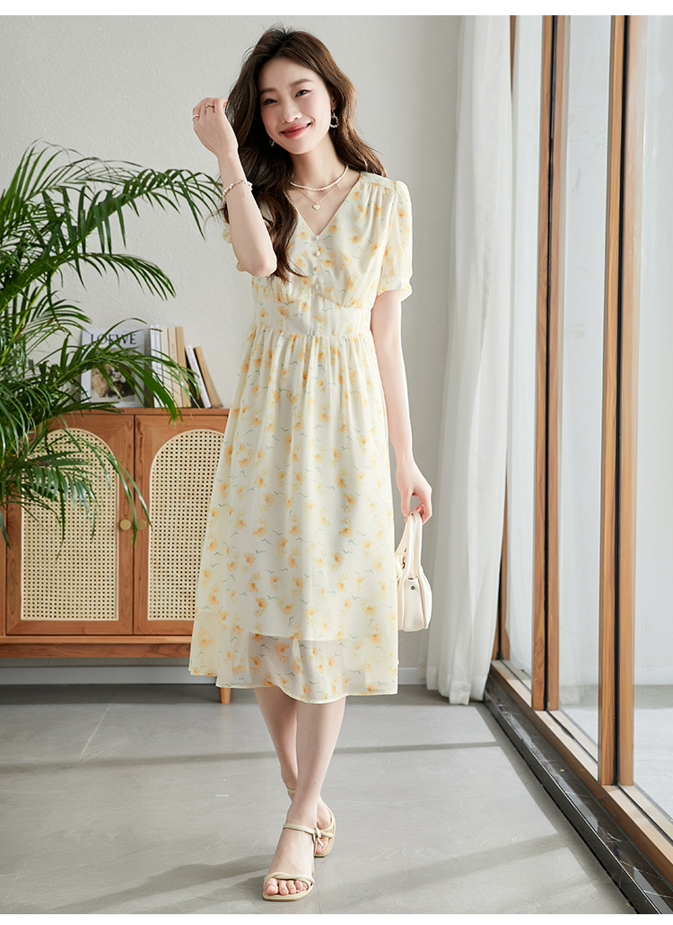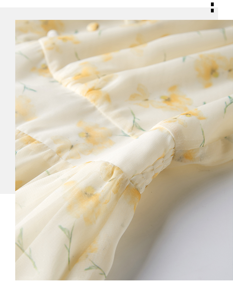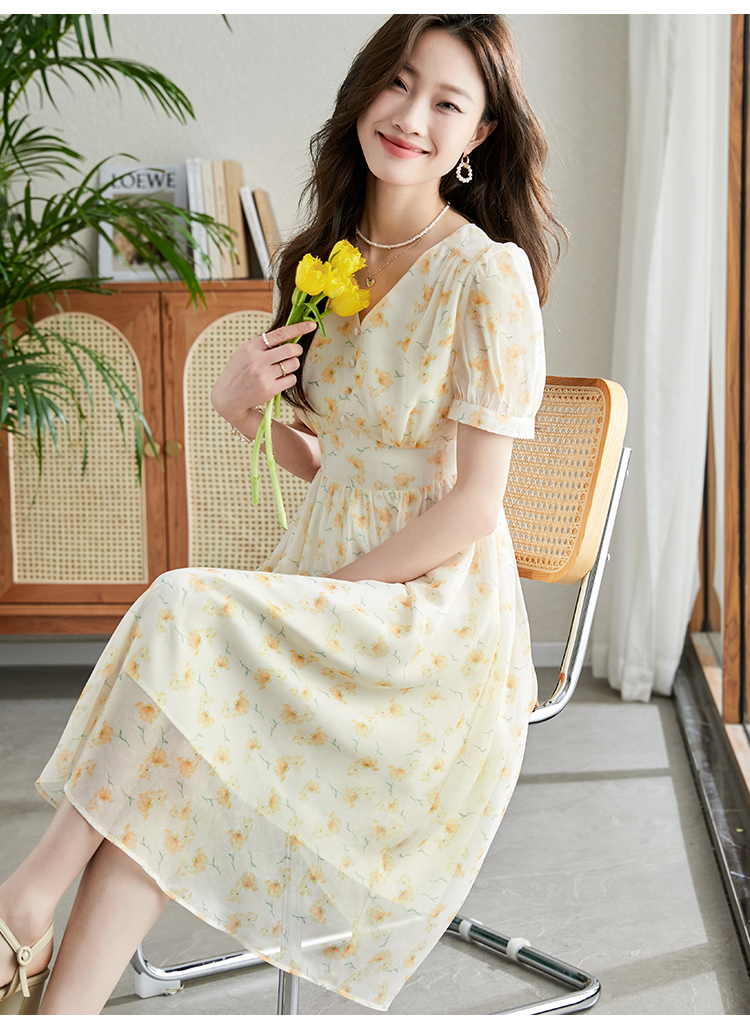 【专属特价】熙世界优雅浪漫度假风碎花连衣裙女夏收腰气质V领泡泡袖雪纺裙子
