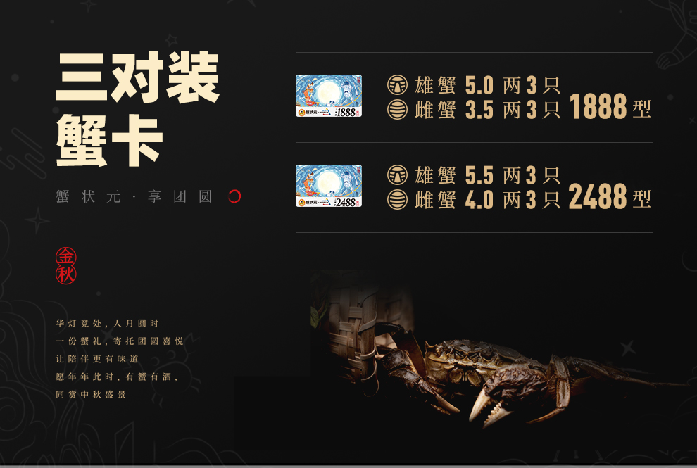 【无蟹不欢】蟹状元1888型蟹状元大闸蟹提货卡蟹卡 公蟹5.0;母蟹3.5三对装 礼券