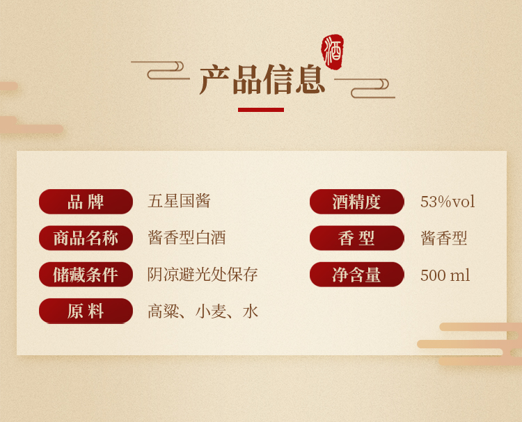五星白酒五星国酱(窖藏)酱香型500ml单瓶装