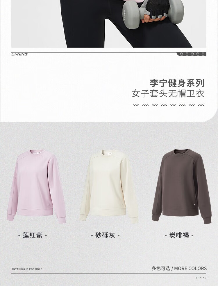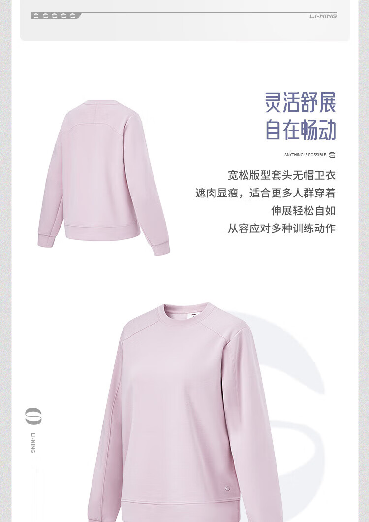 李宁(lining)健身系列女子宽松套头卫衣AWDU110