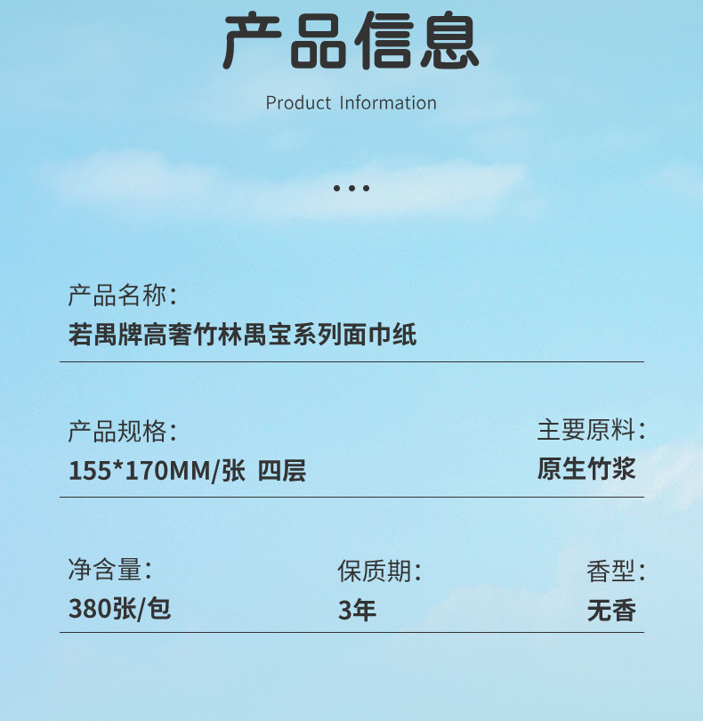 若禺软抽纸高奢禺宝系列380张/包5层加厚原生竹浆柔软亲肤1件8包12提RR2104