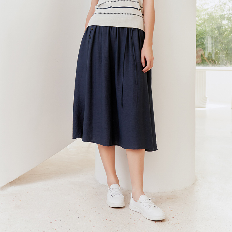 【褶皱系带半裙】23年夏季新品系带薄款半身裙宽松透气半裙