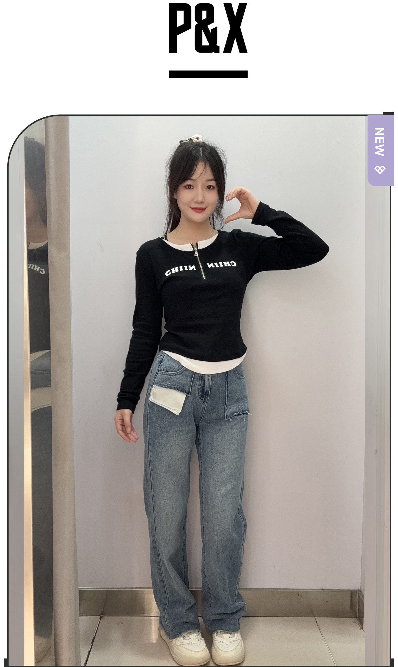P&X设计师女装高腰百搭显瘦宽松水洗H型牛仔长裤823310843 蓝色